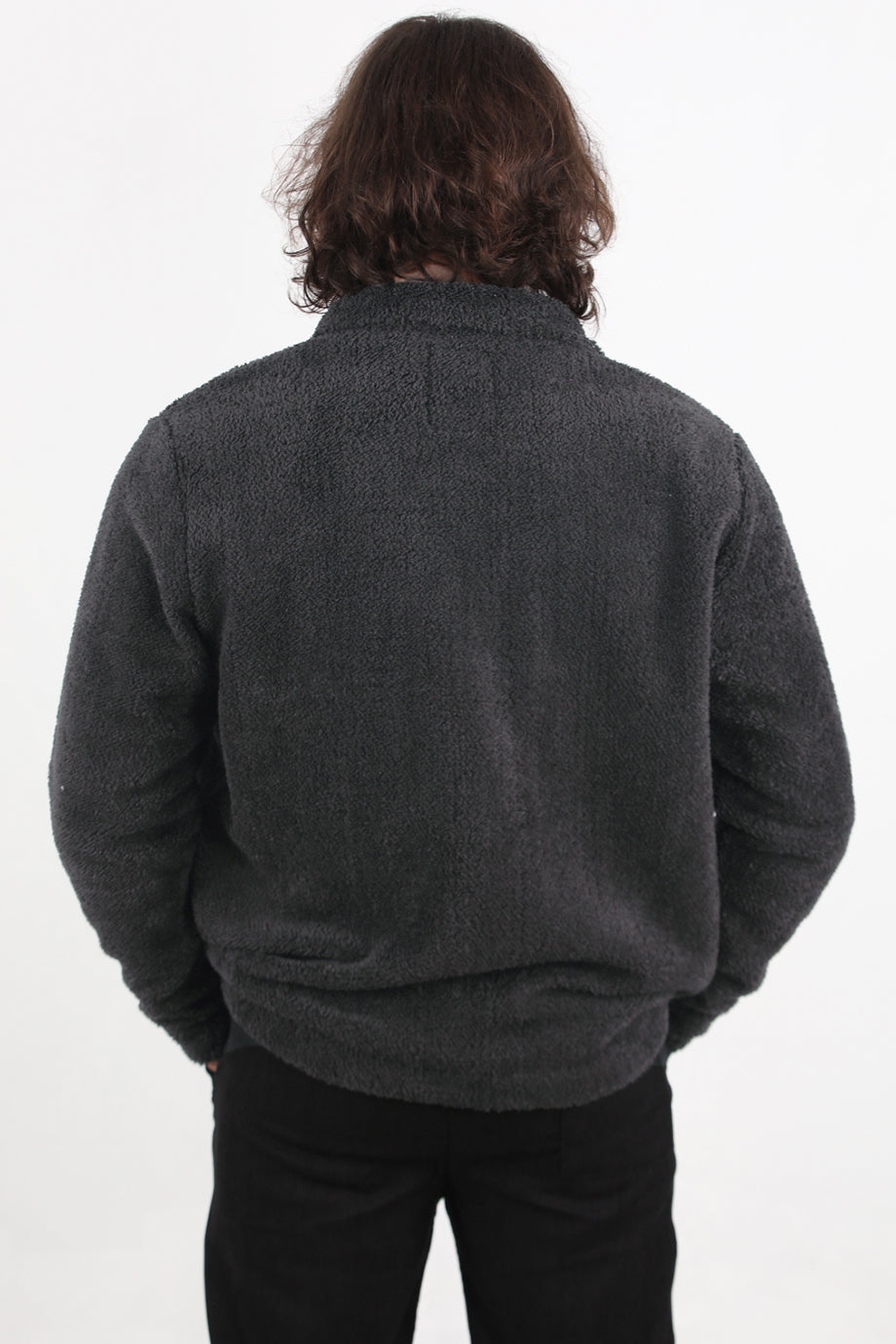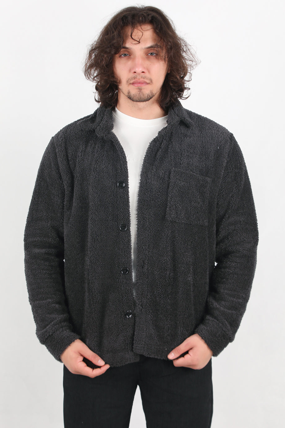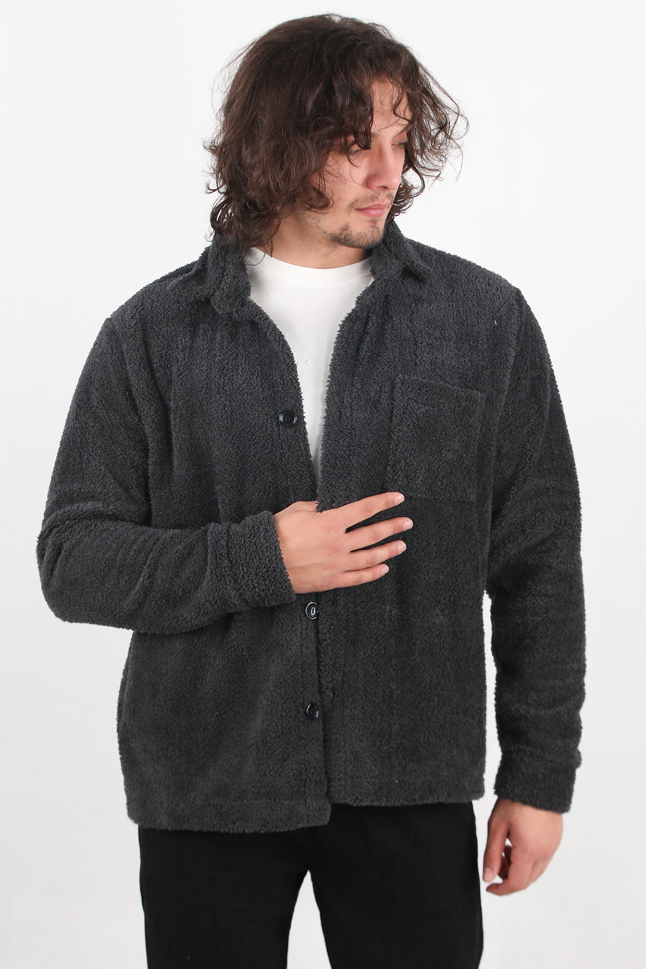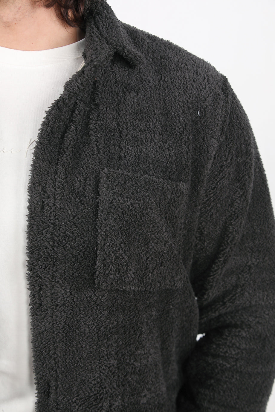 Sherpa Erkek Tek Cepli Önü Düğmeli Peluş Ceket Antrasit