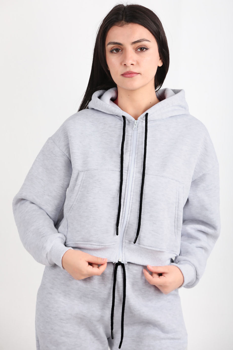 Ziploom Kadın 3iplik Fermuarlı Sweat Gri