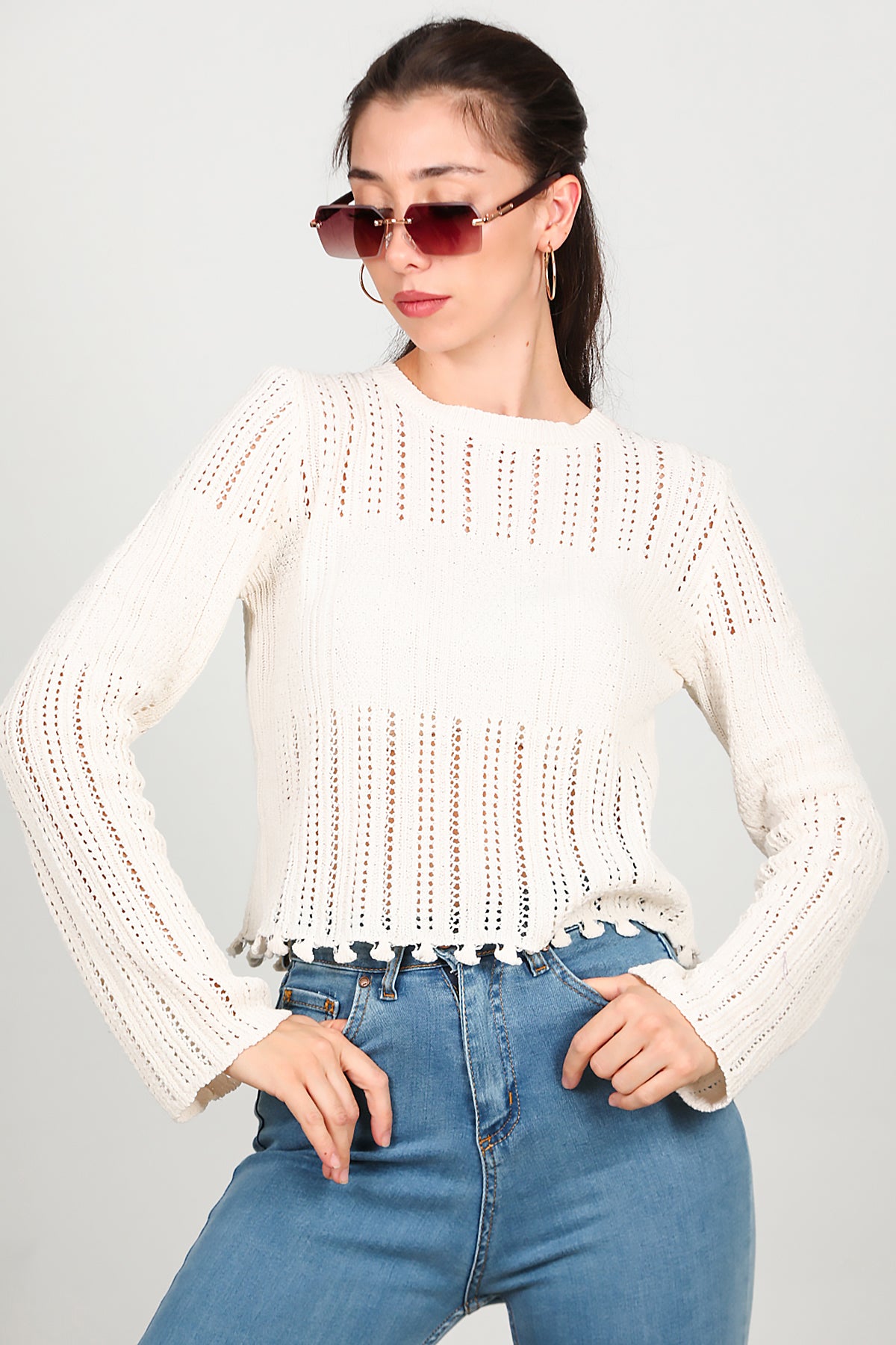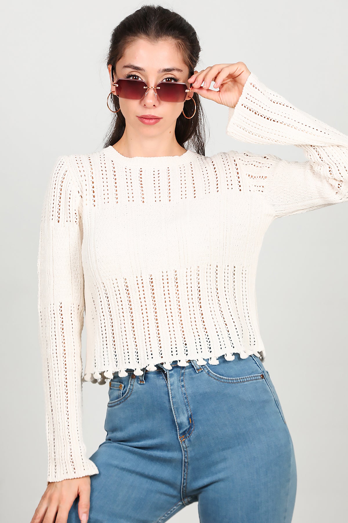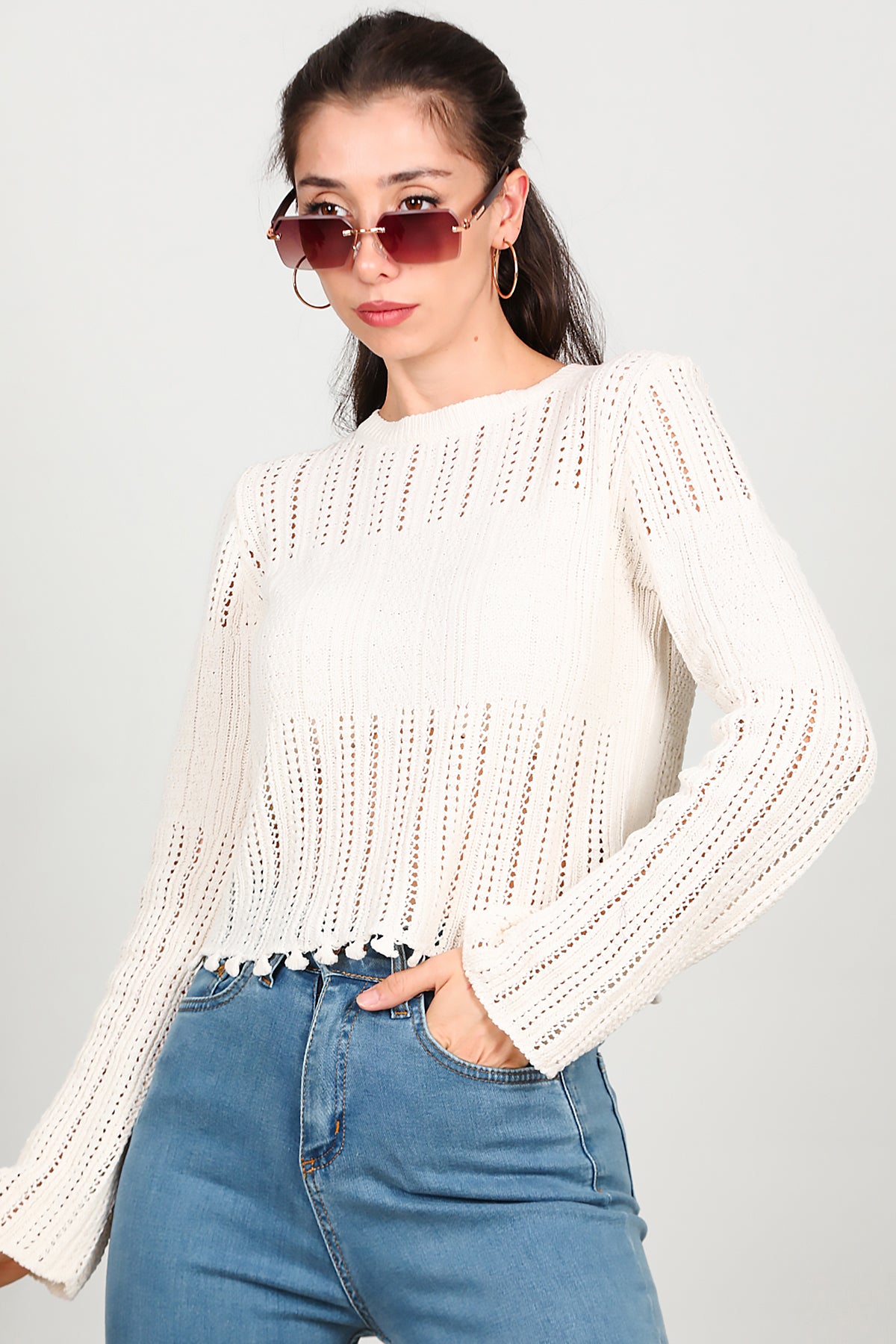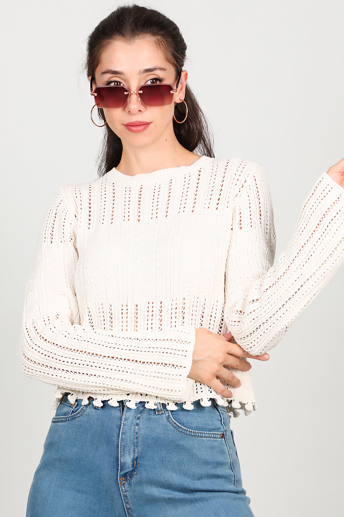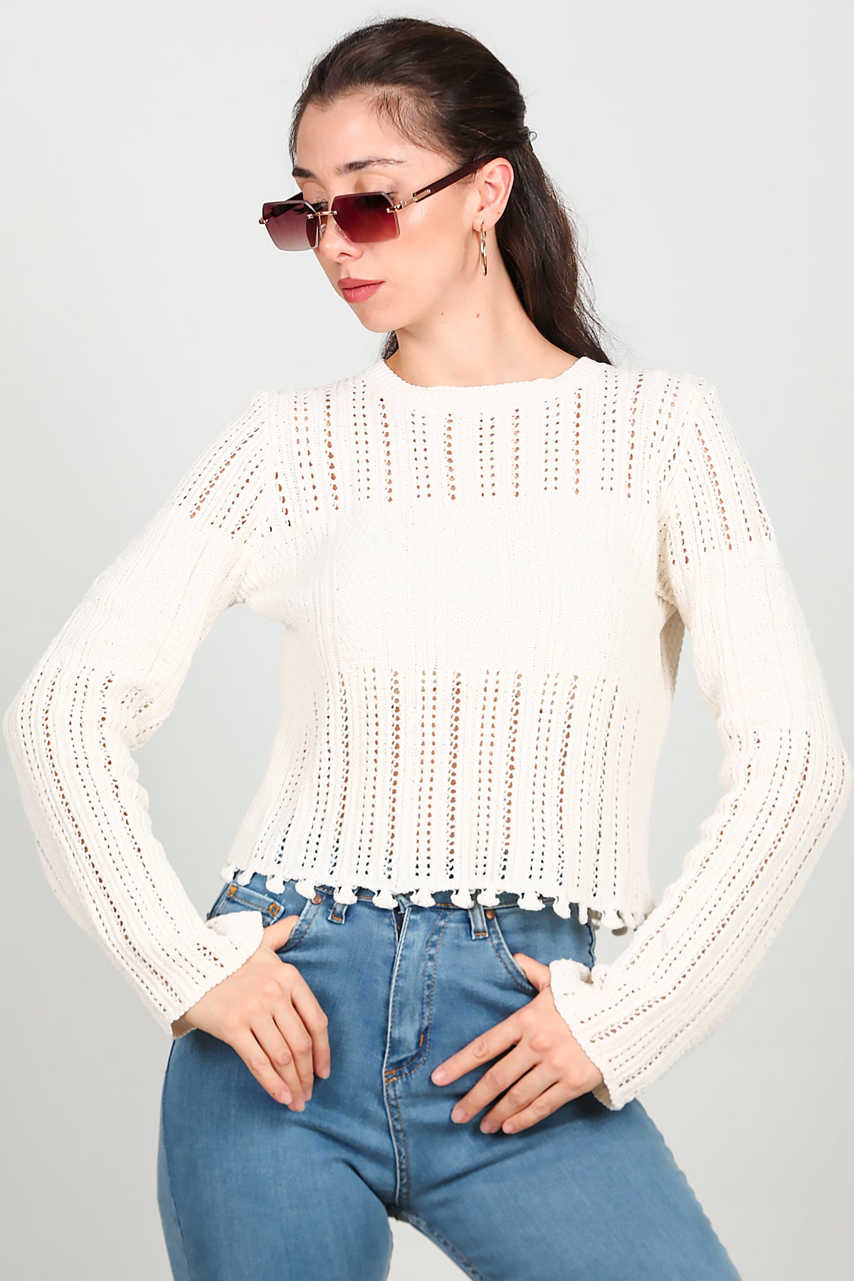Kadın Alt Püsküllü Triko Ekru