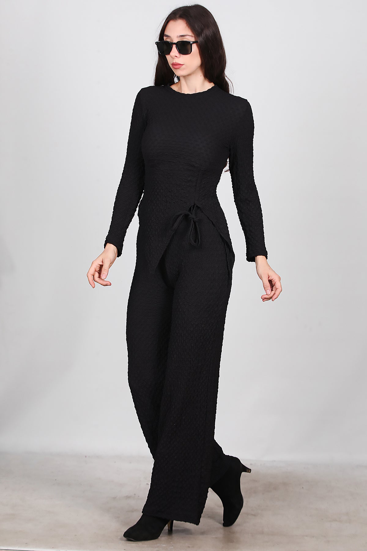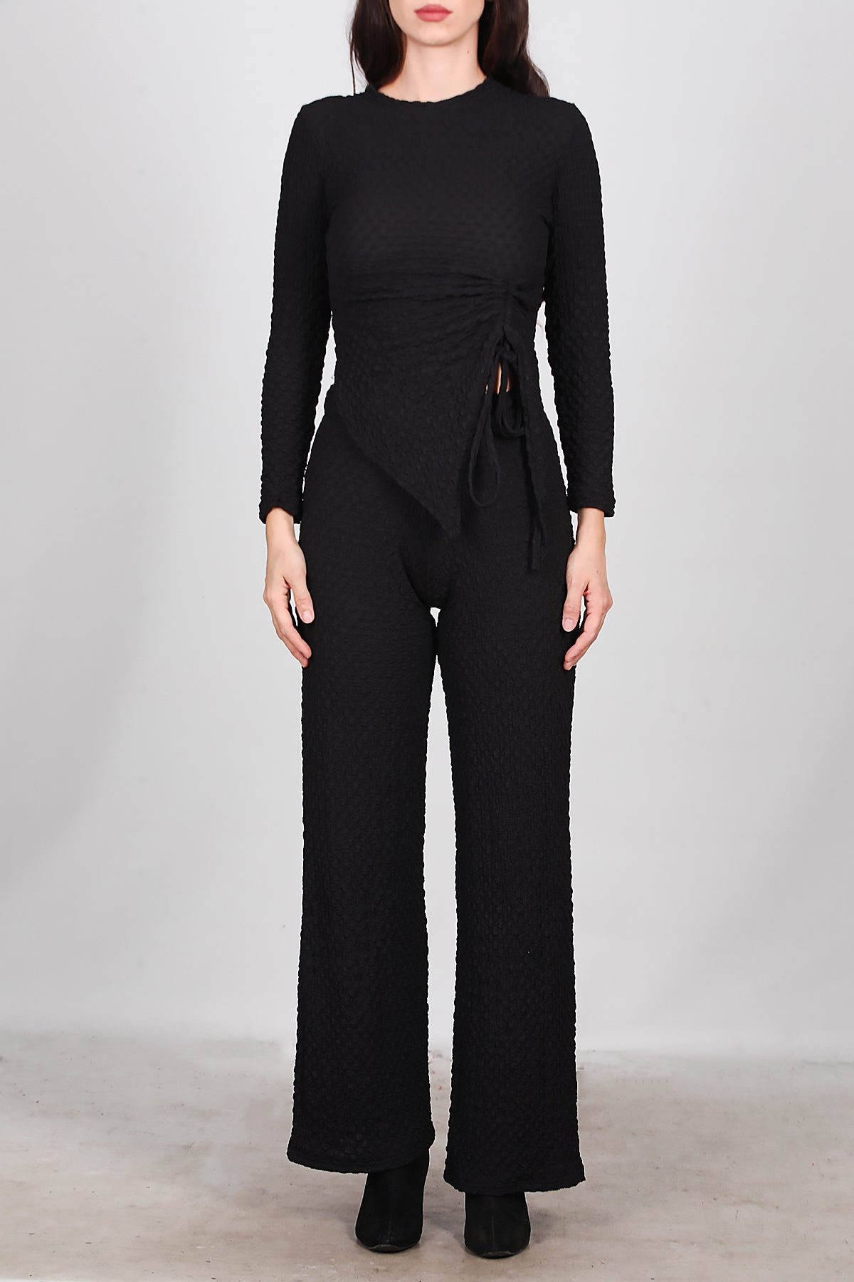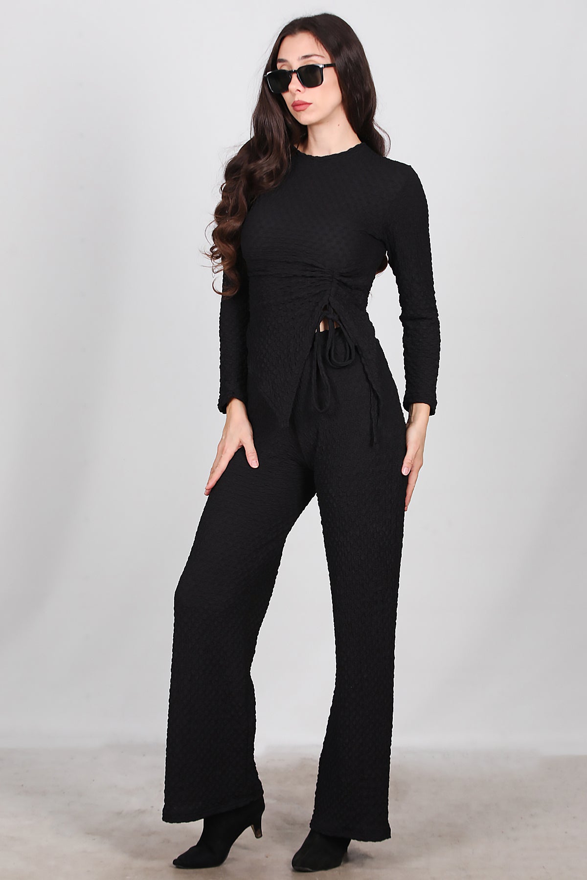 Kadın Asimetrik Büzgülü İkili Takım Siyah