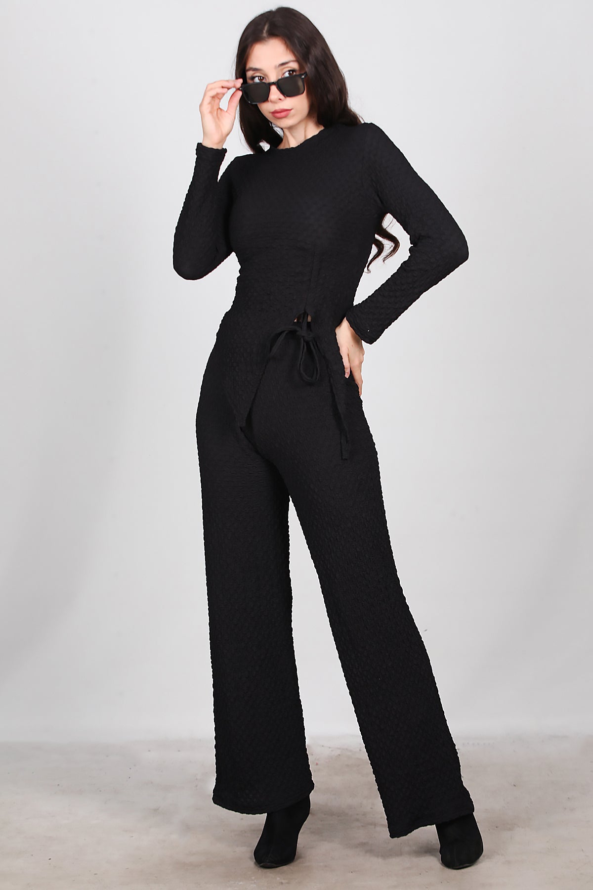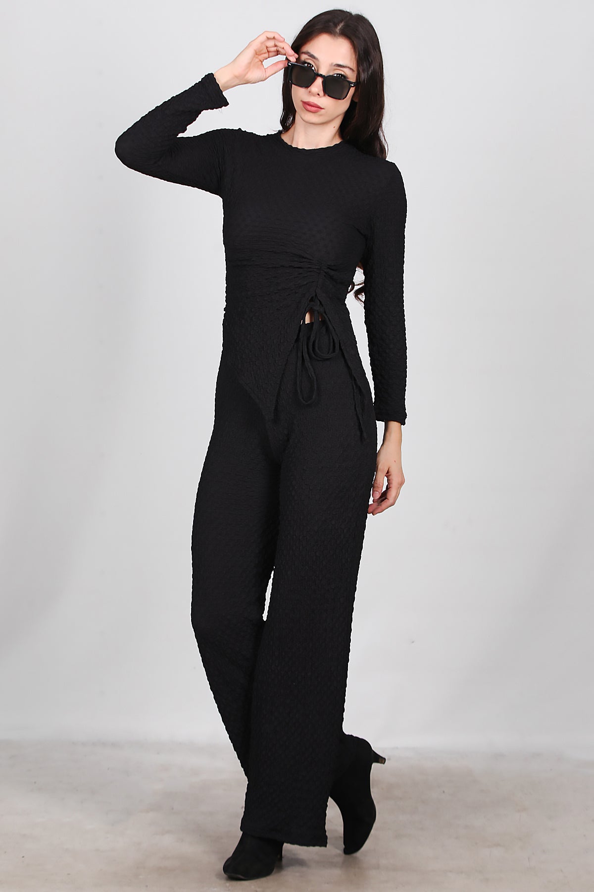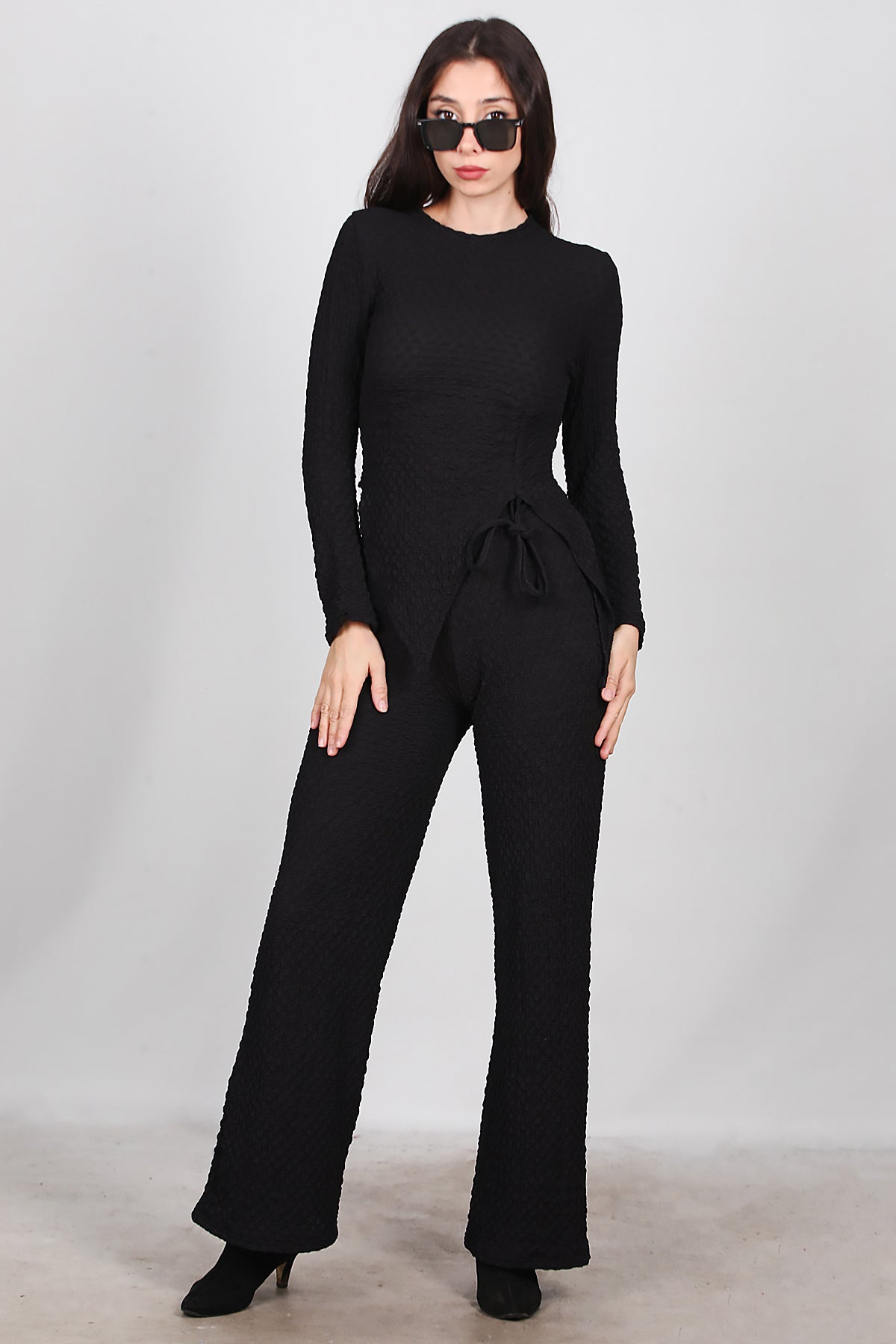 Kadın Asimetrik Büzgülü İkili Takım Siyah
