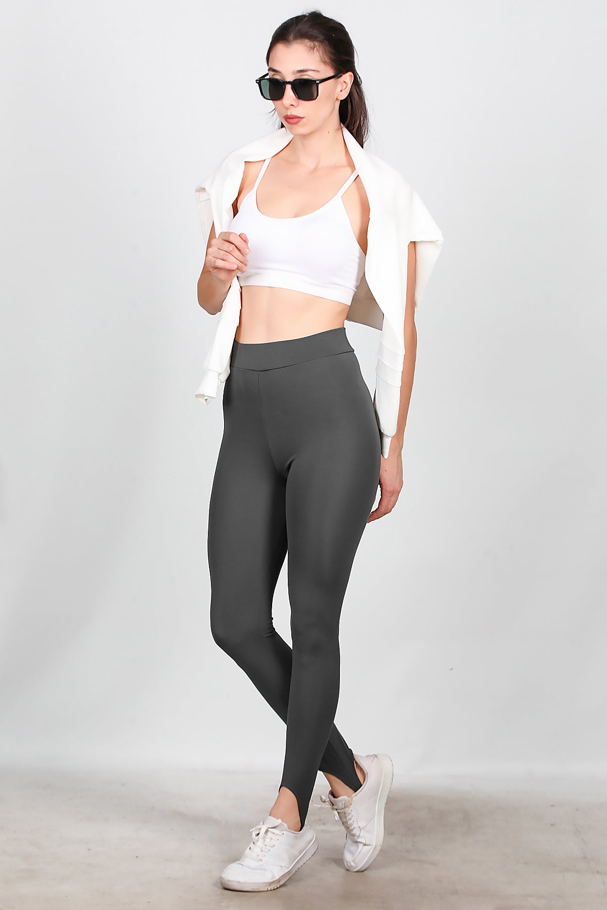 Kadın Ayaktan Geçirmeli Tayt Füme