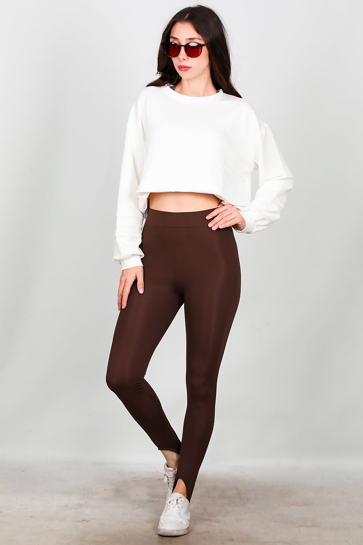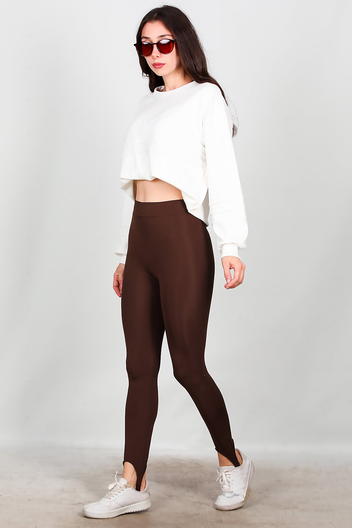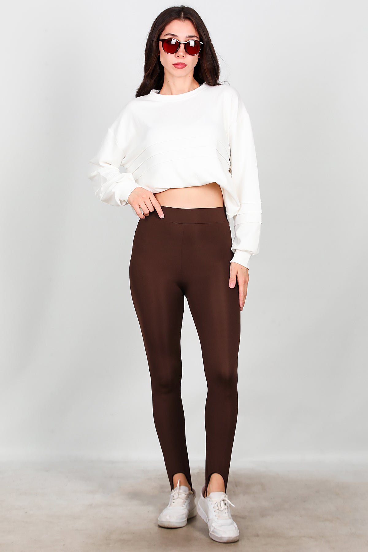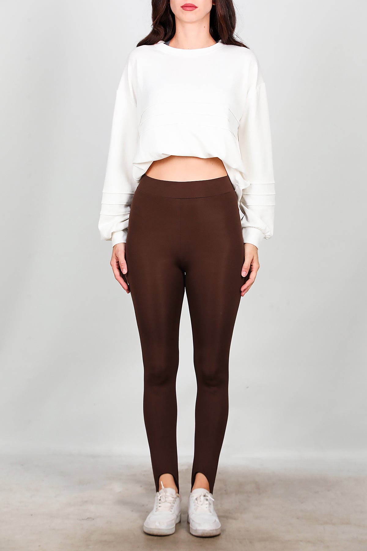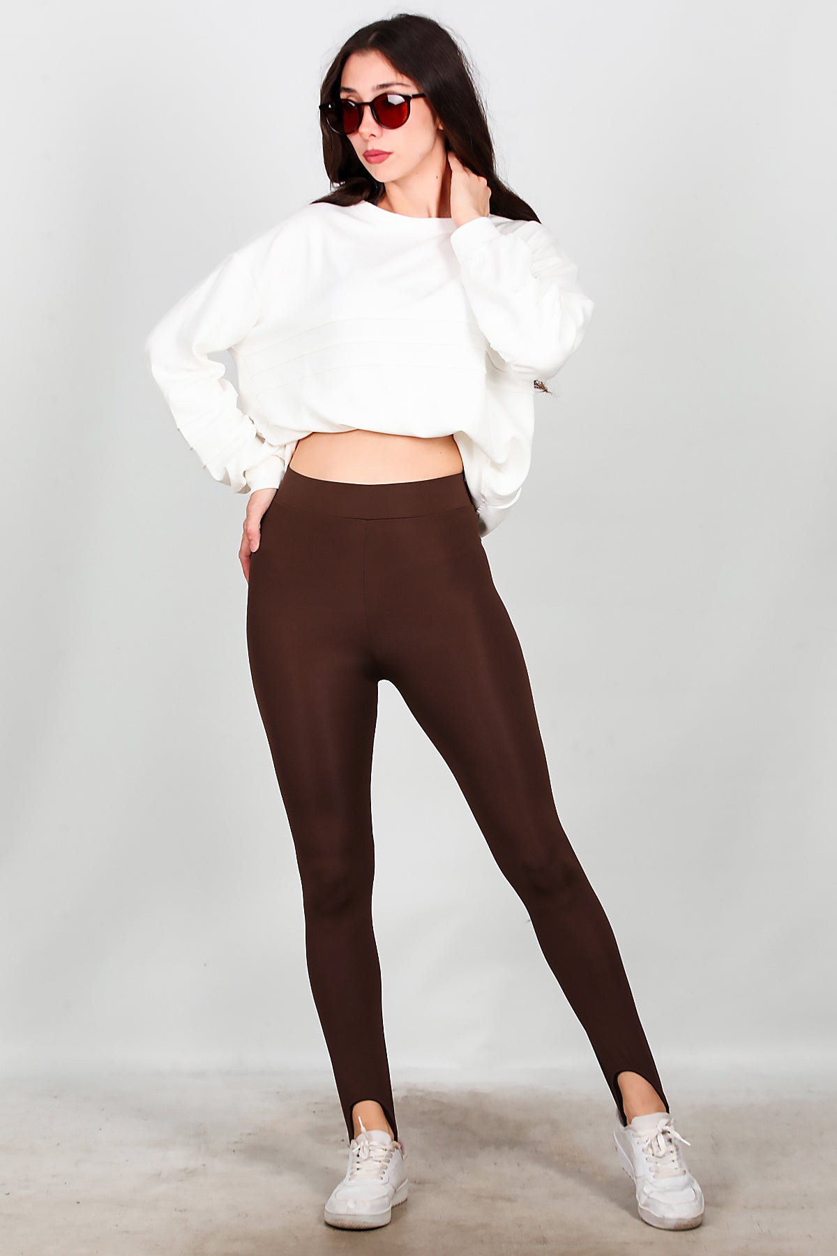 Kadın Ayaktan Geçirmeli Tayt Kahverengi