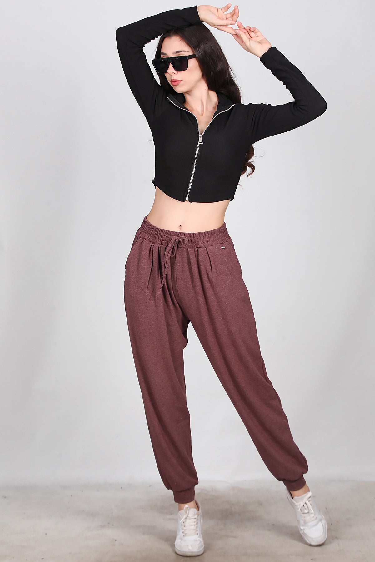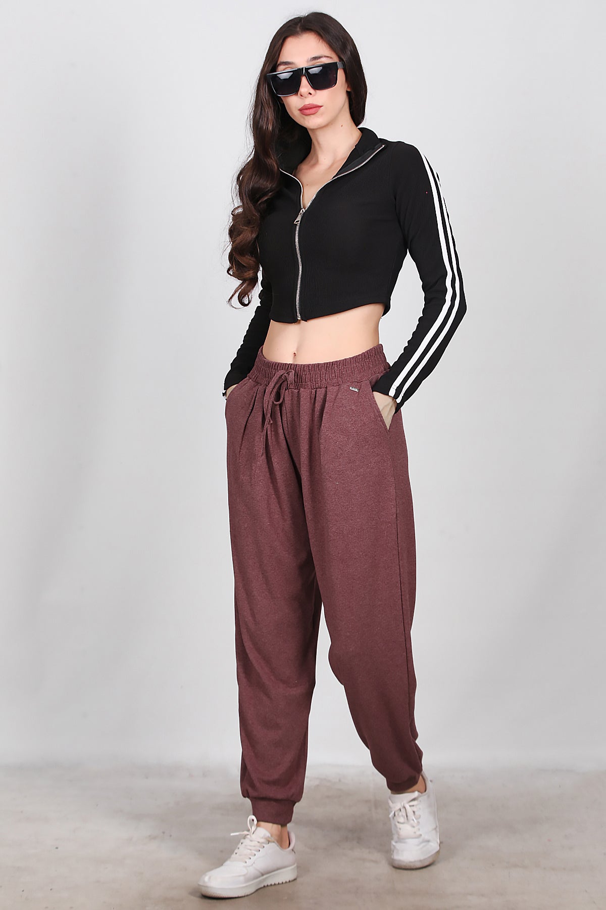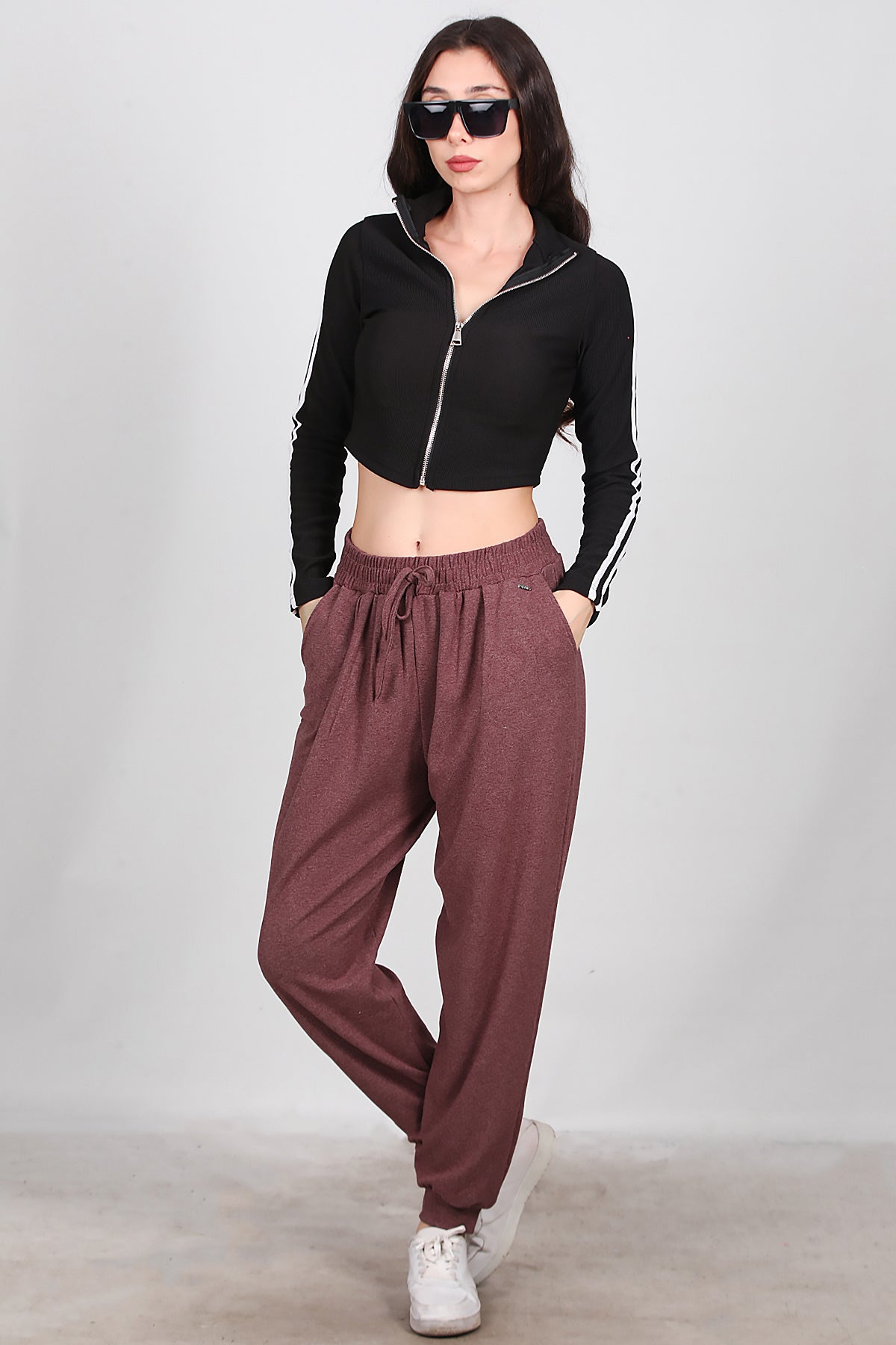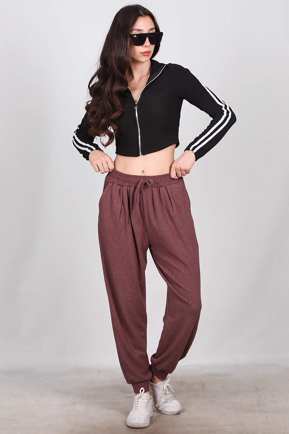 Kadın Bağcıklı Şalvar Pantolon Bordo