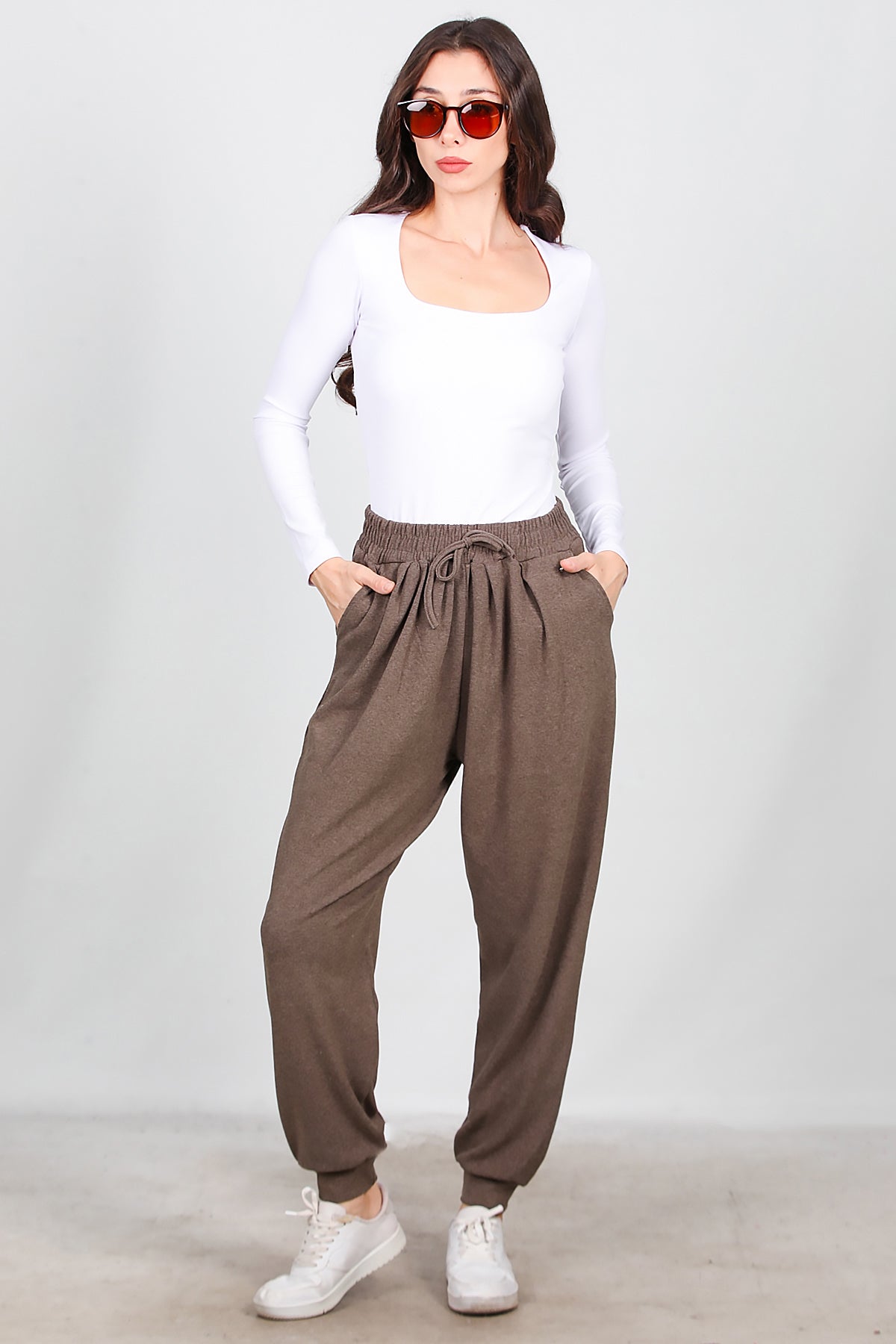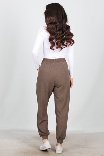 Kadın Bağcıklı Şalvar Pantolon Kahverengi