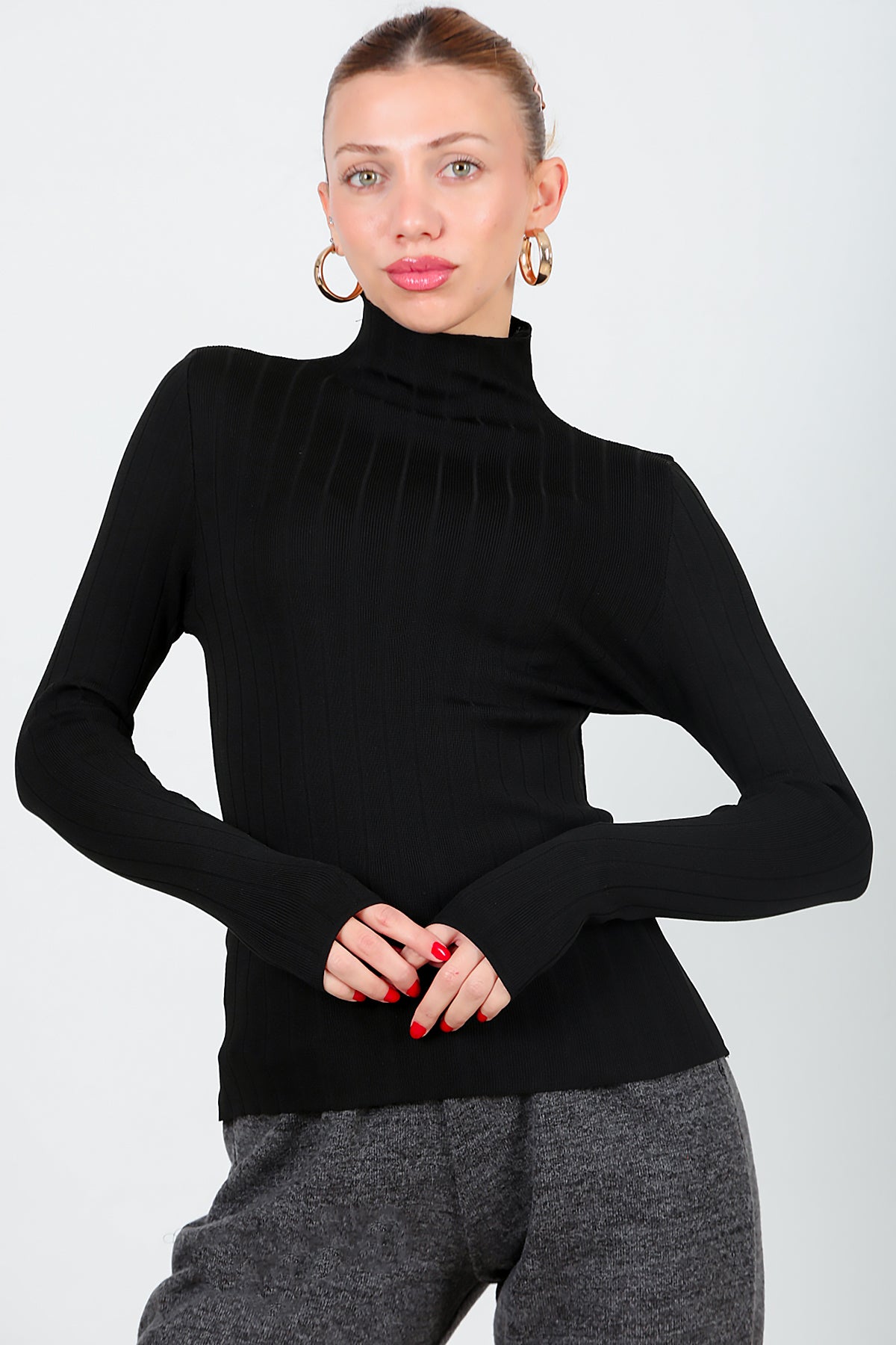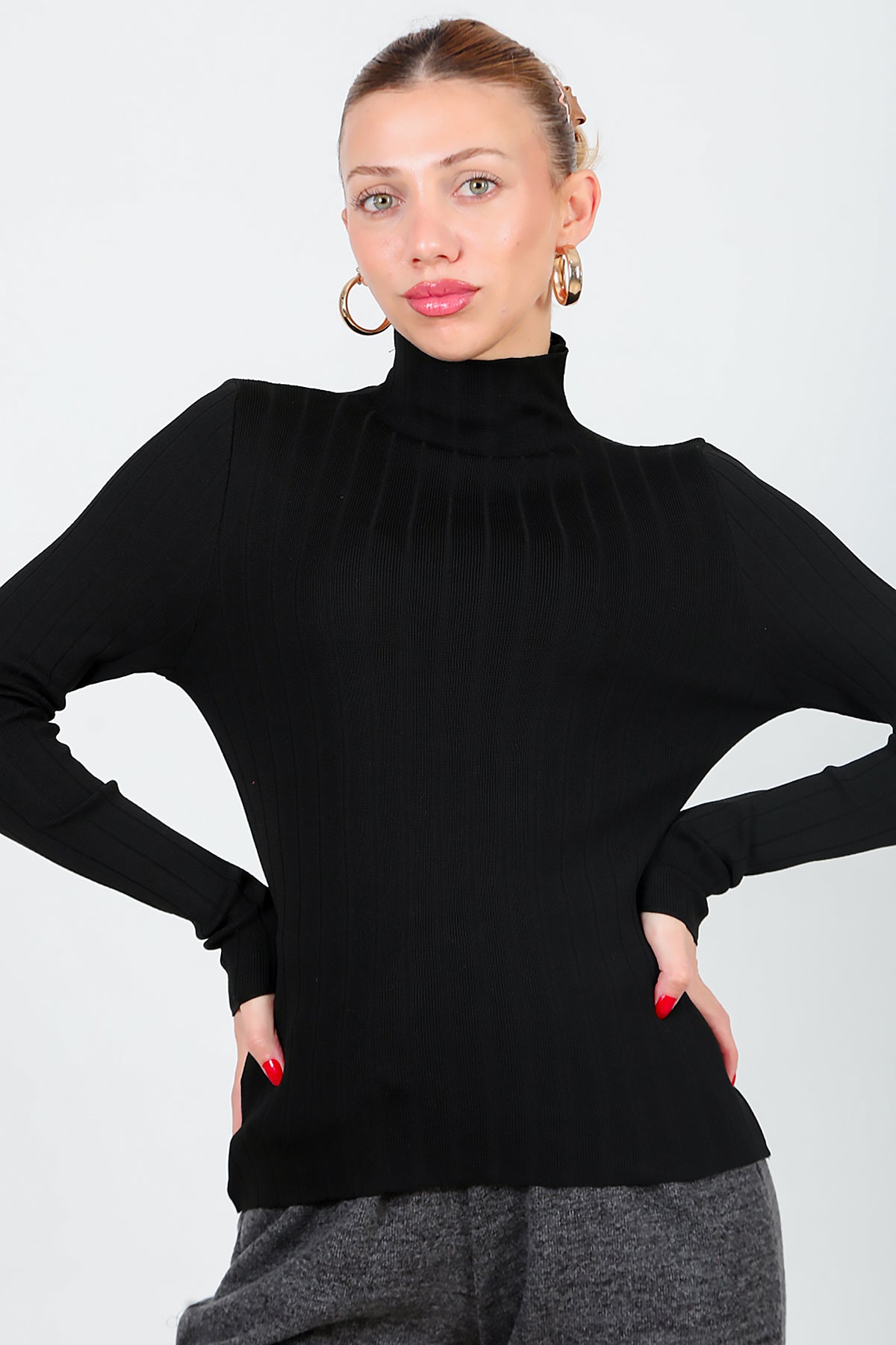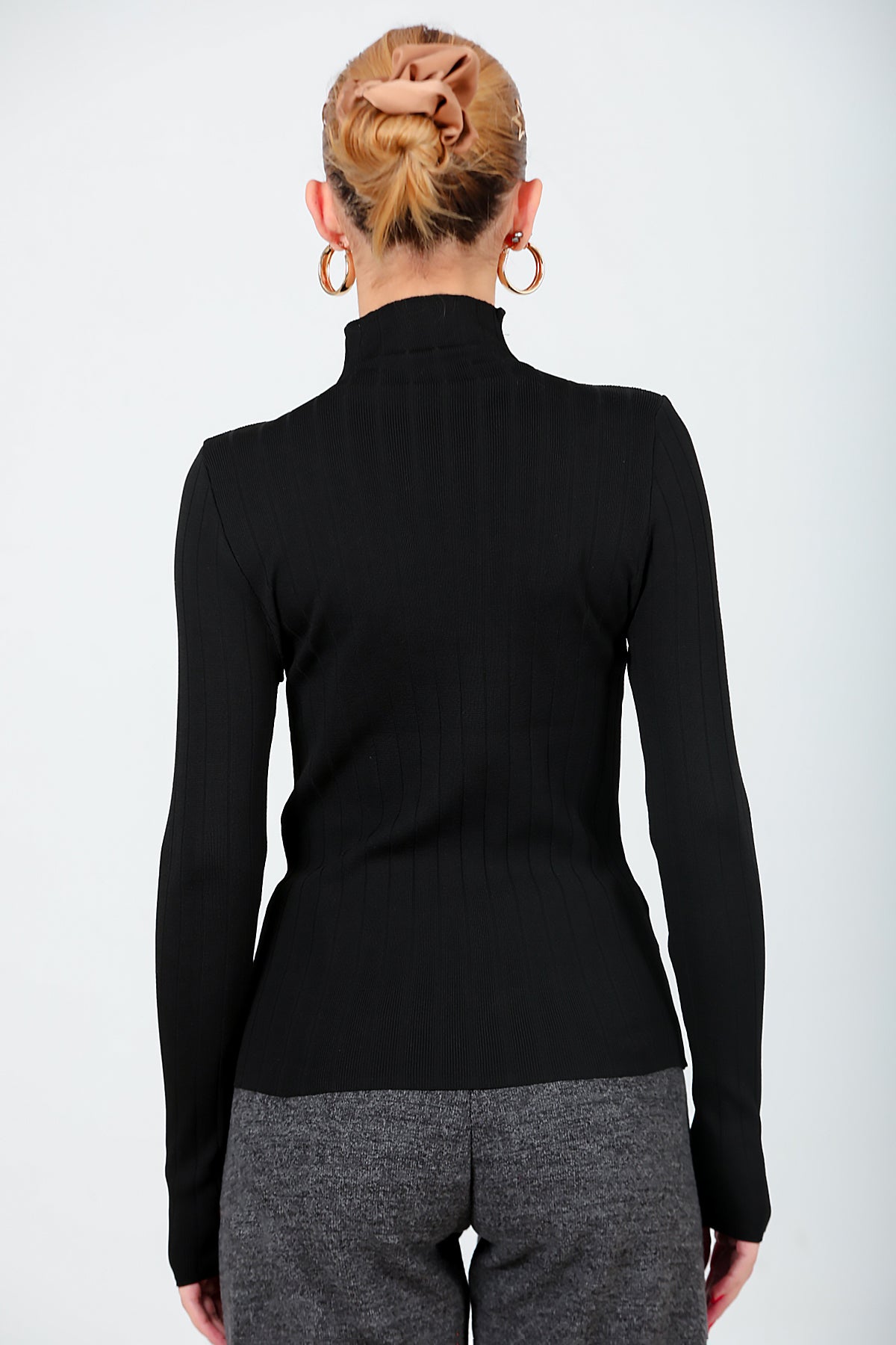 Kadın Balıkçı Yaka Fitilli Triko Siyah