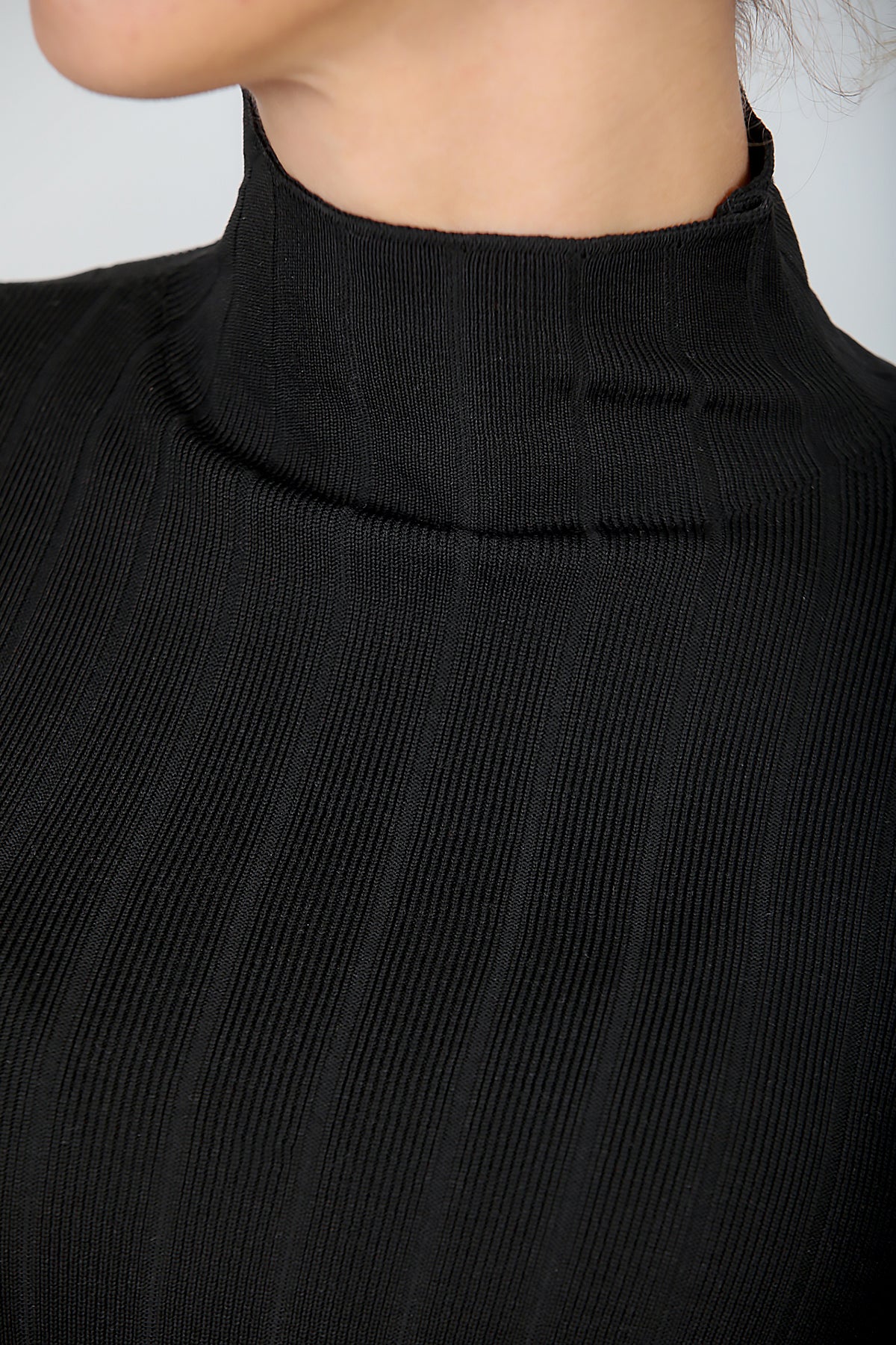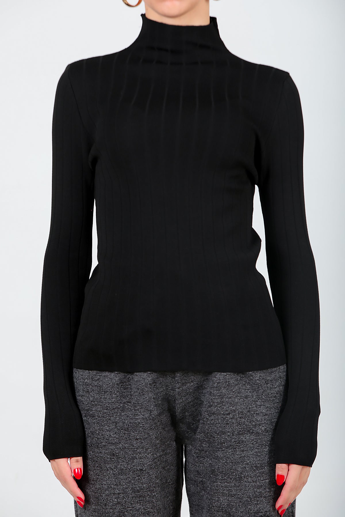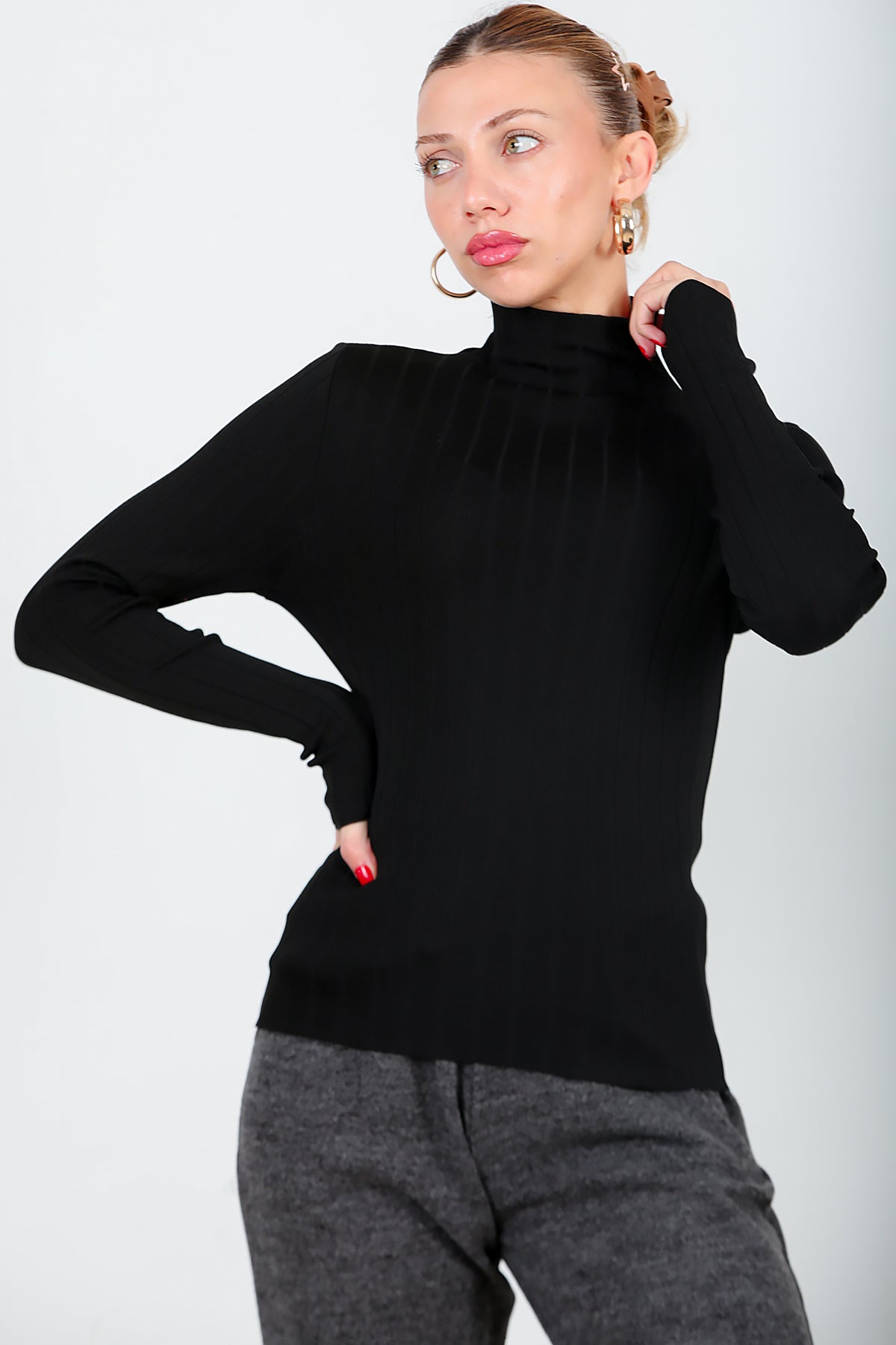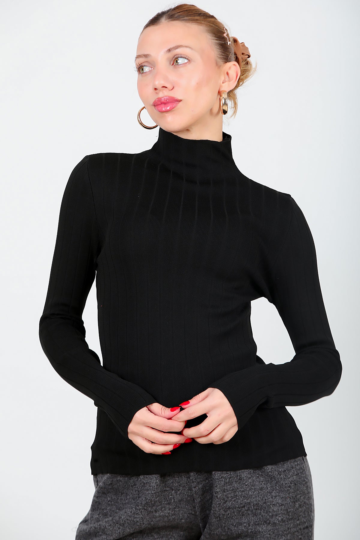 Kadın Balıkçı Yaka Fitilli Triko Siyah