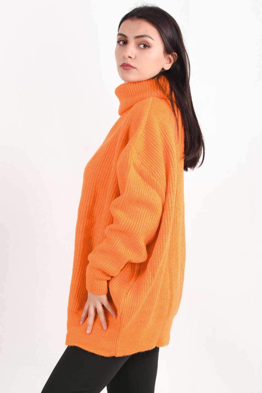 Softfleece Kadın Balıkçı Yaka Triko Kazak Turuncu