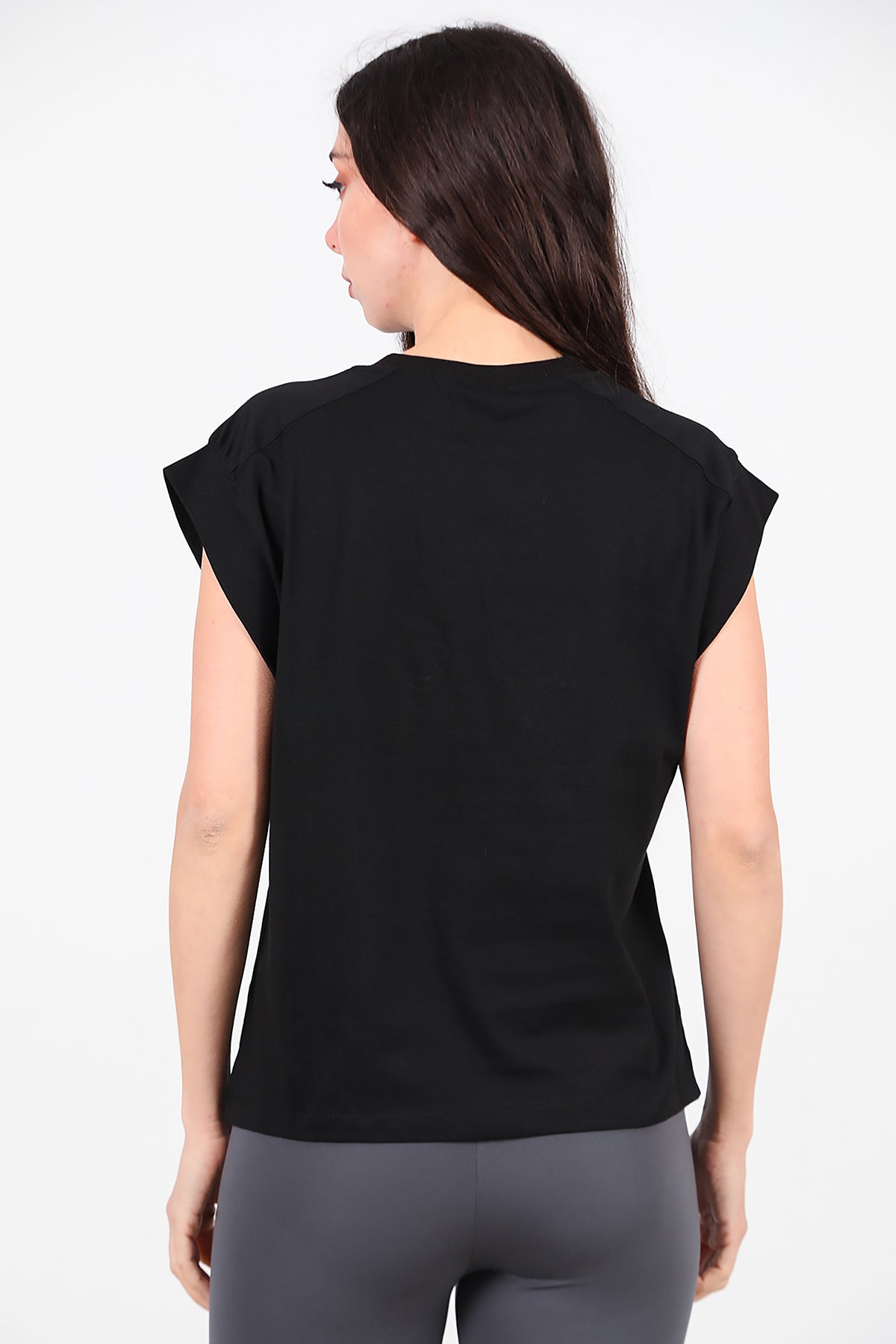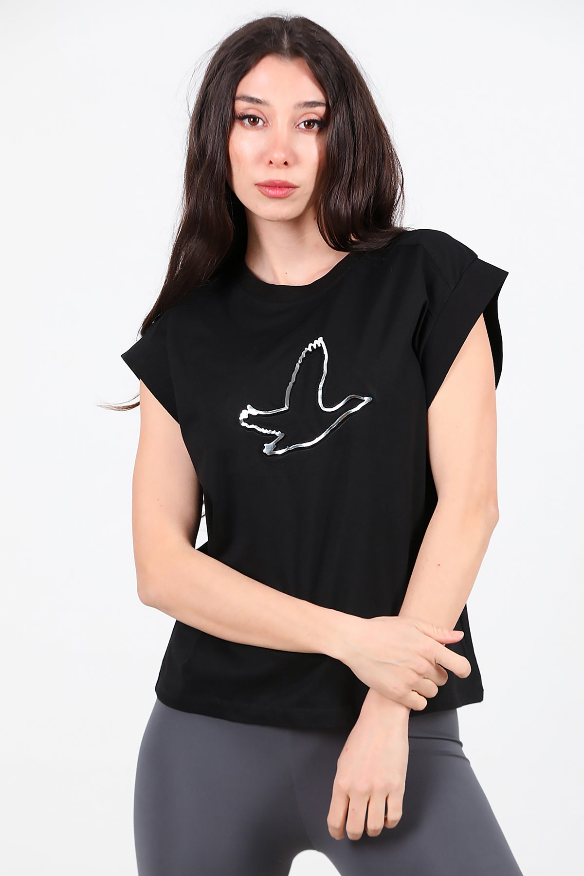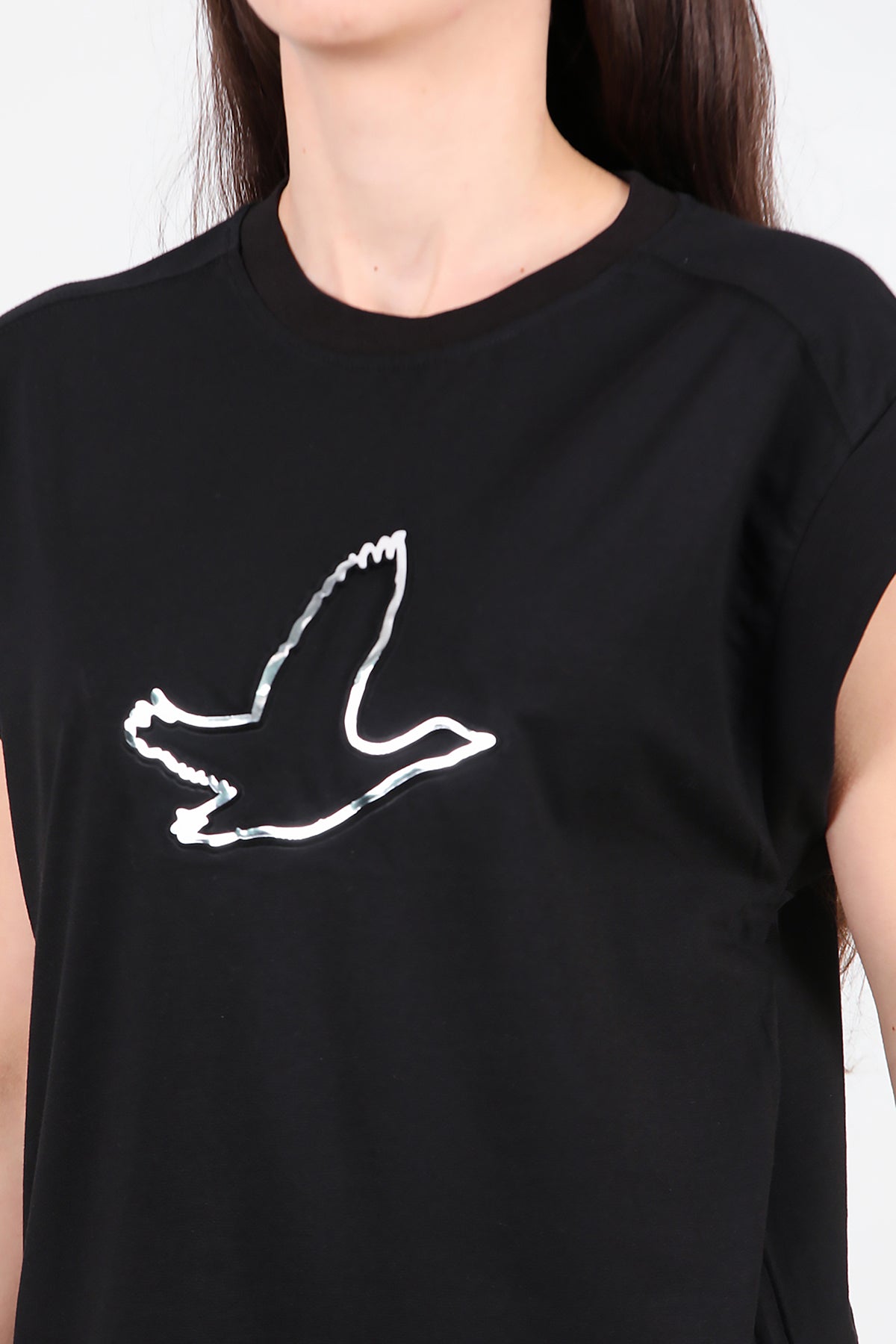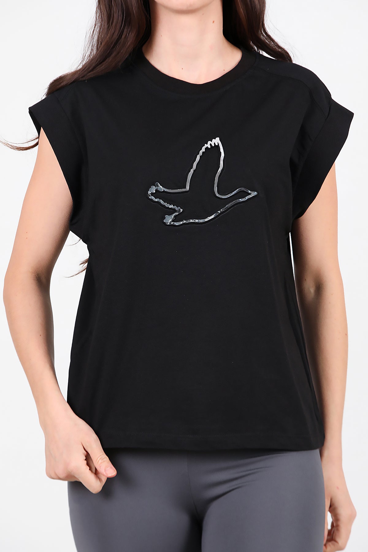 Kadın Baskılı Kolsuz Bluz Siyah