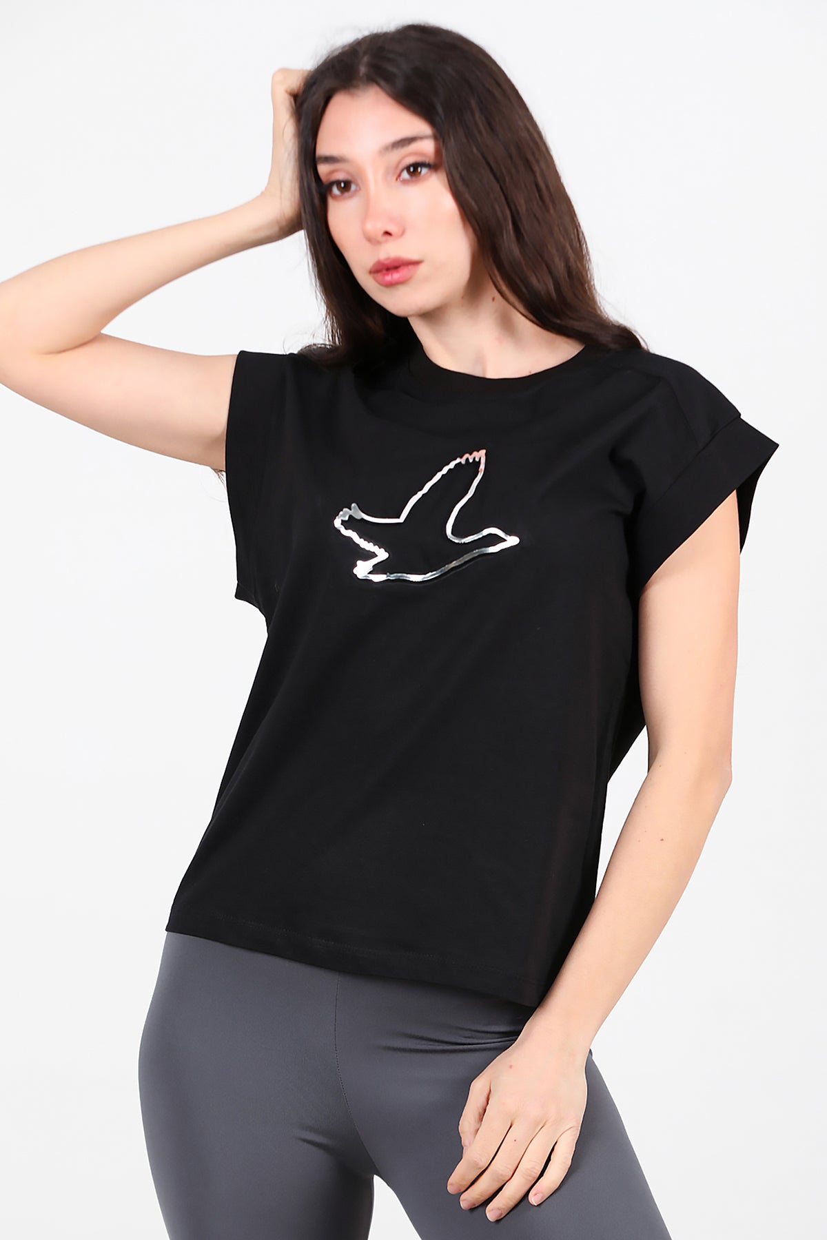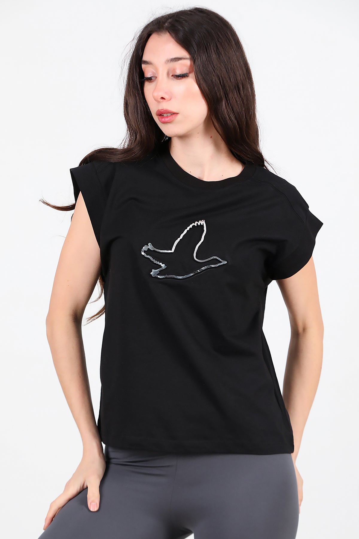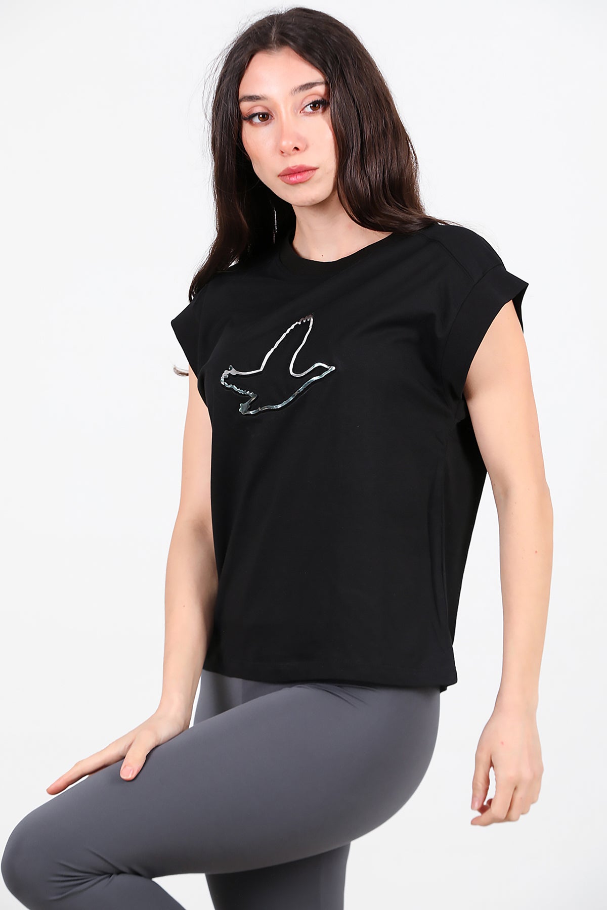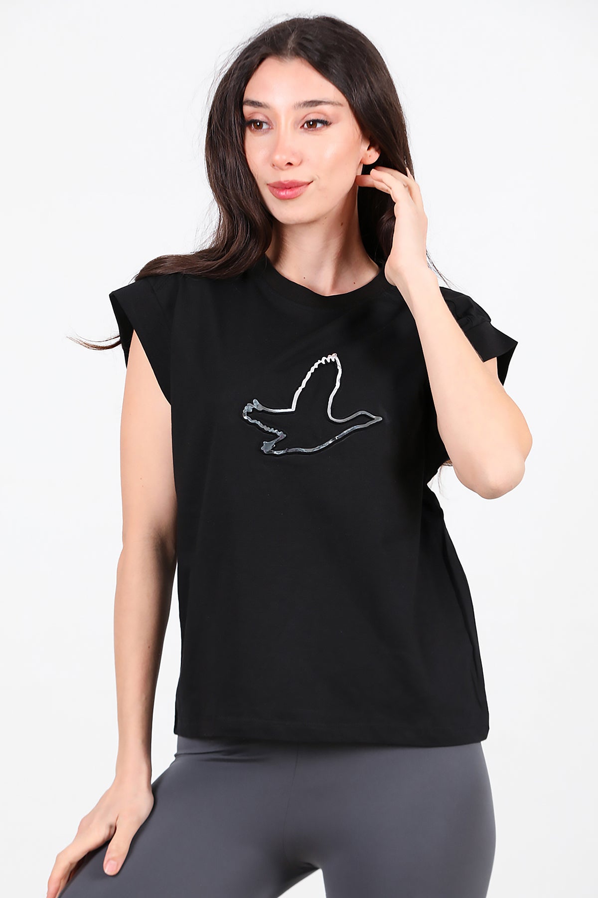 Kadın Baskılı Kolsuz Bluz Siyah
