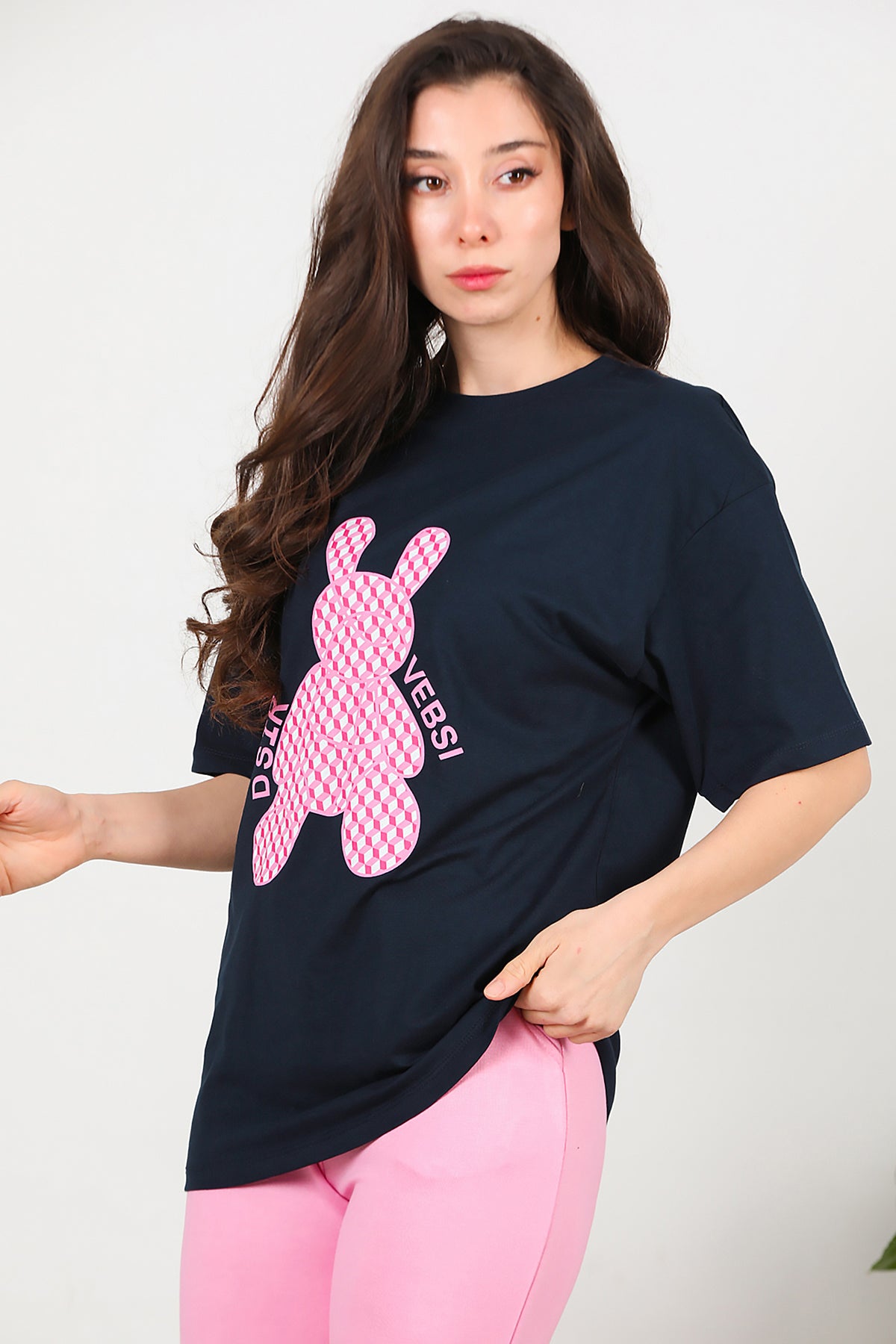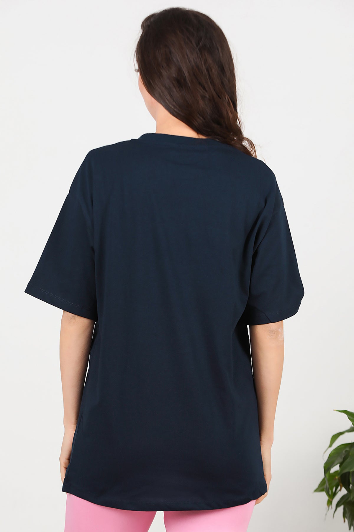 Kadın Baskılı Oversize T-Shirt Lacivert