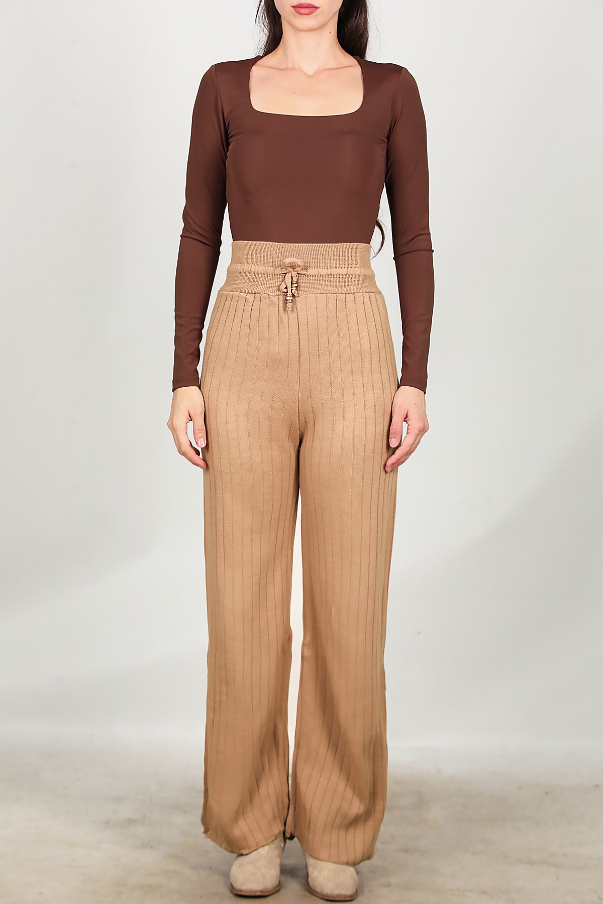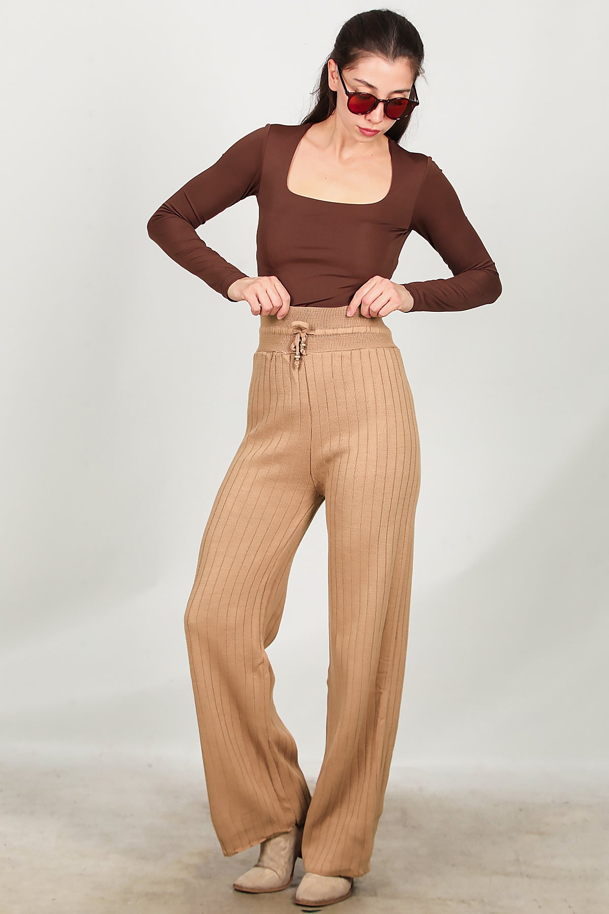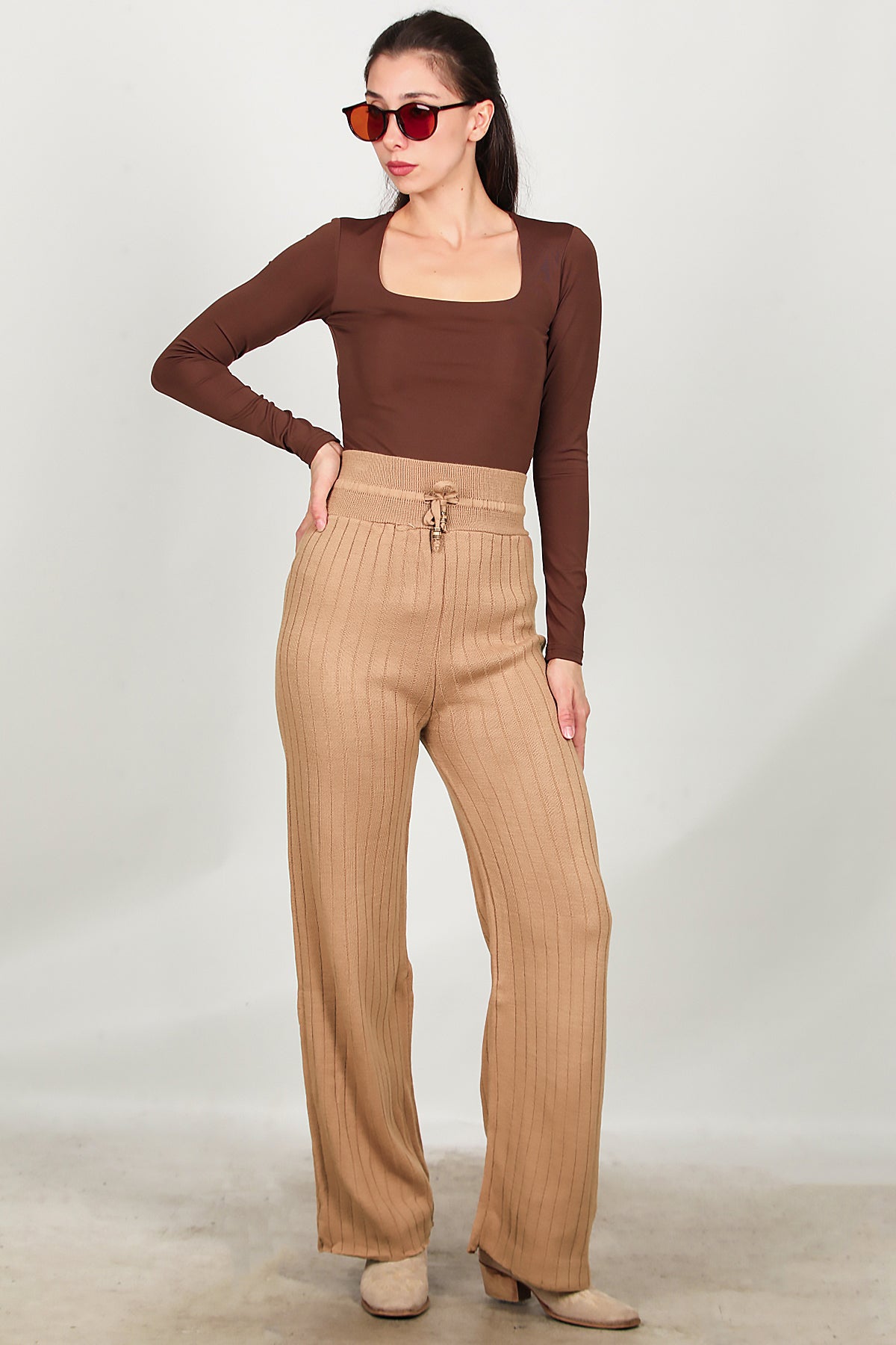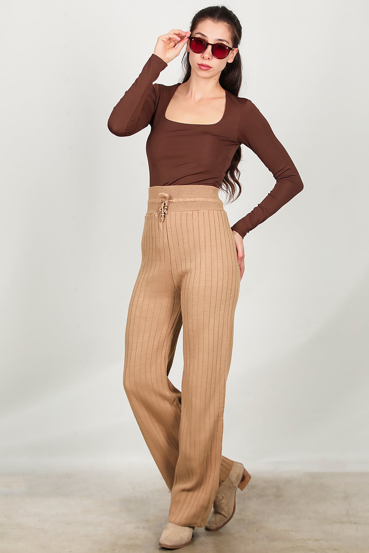 Kadın Bel Ip Detay Triko Pantolon Bej