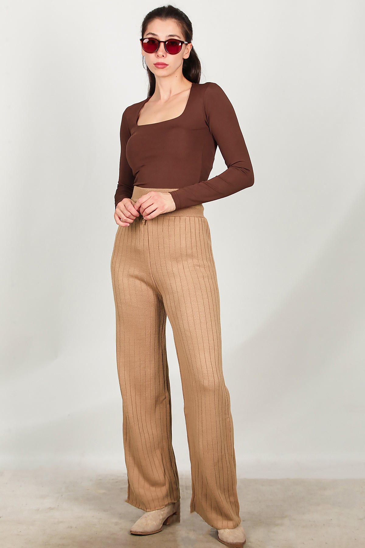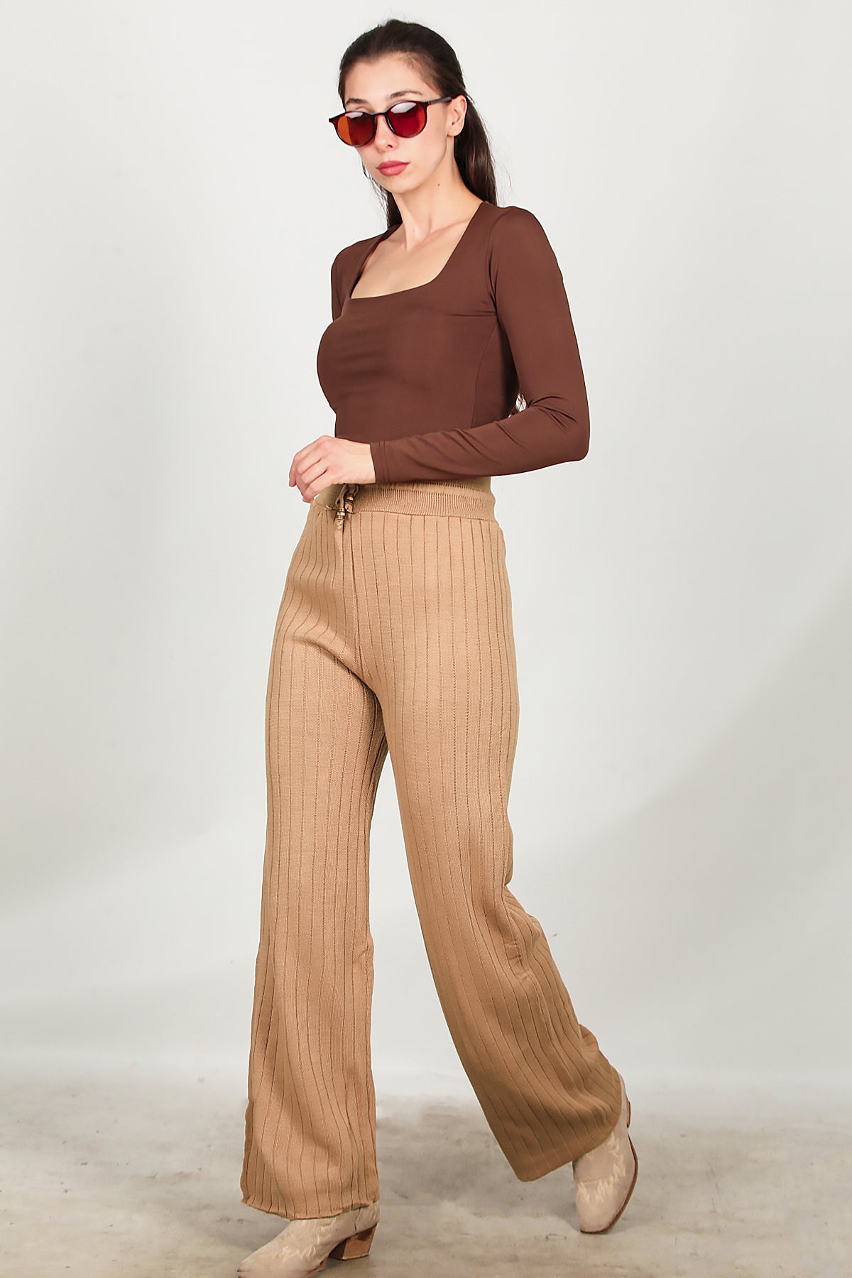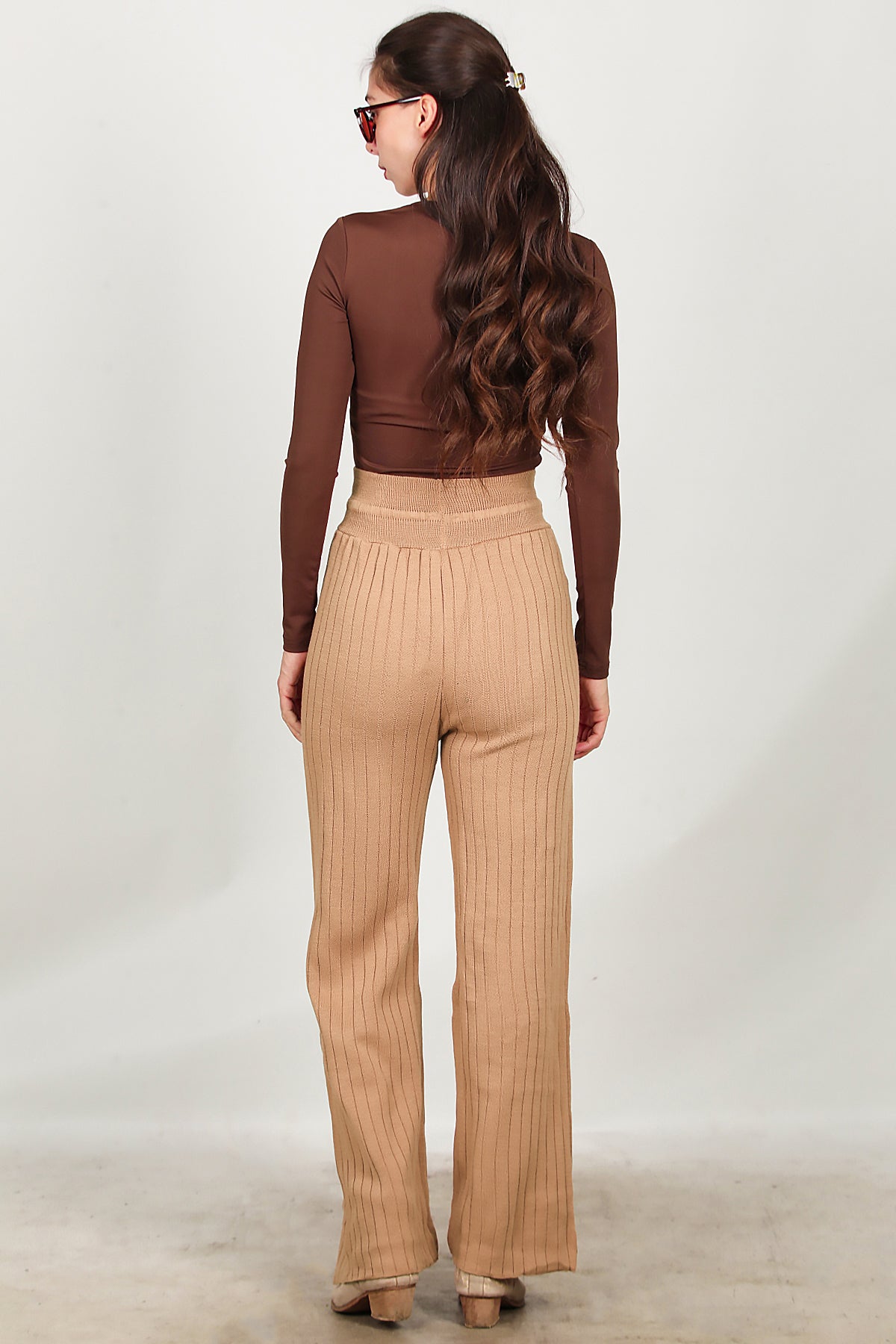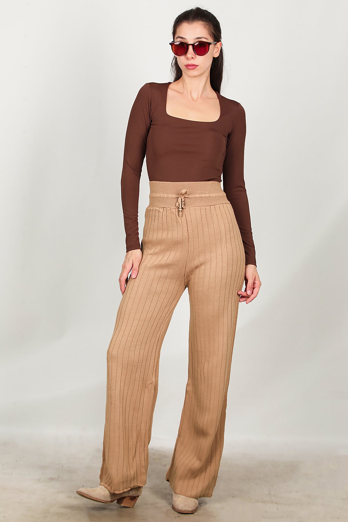 Kadın Bel Ip Detay Triko Pantolon Bej