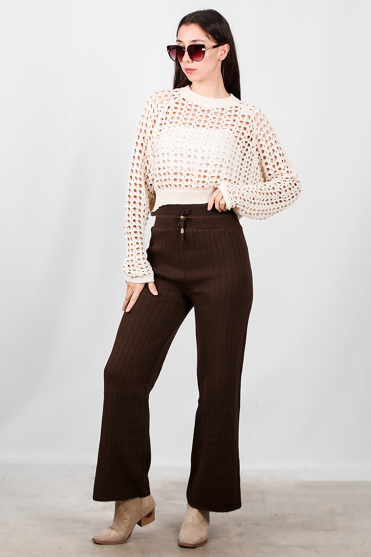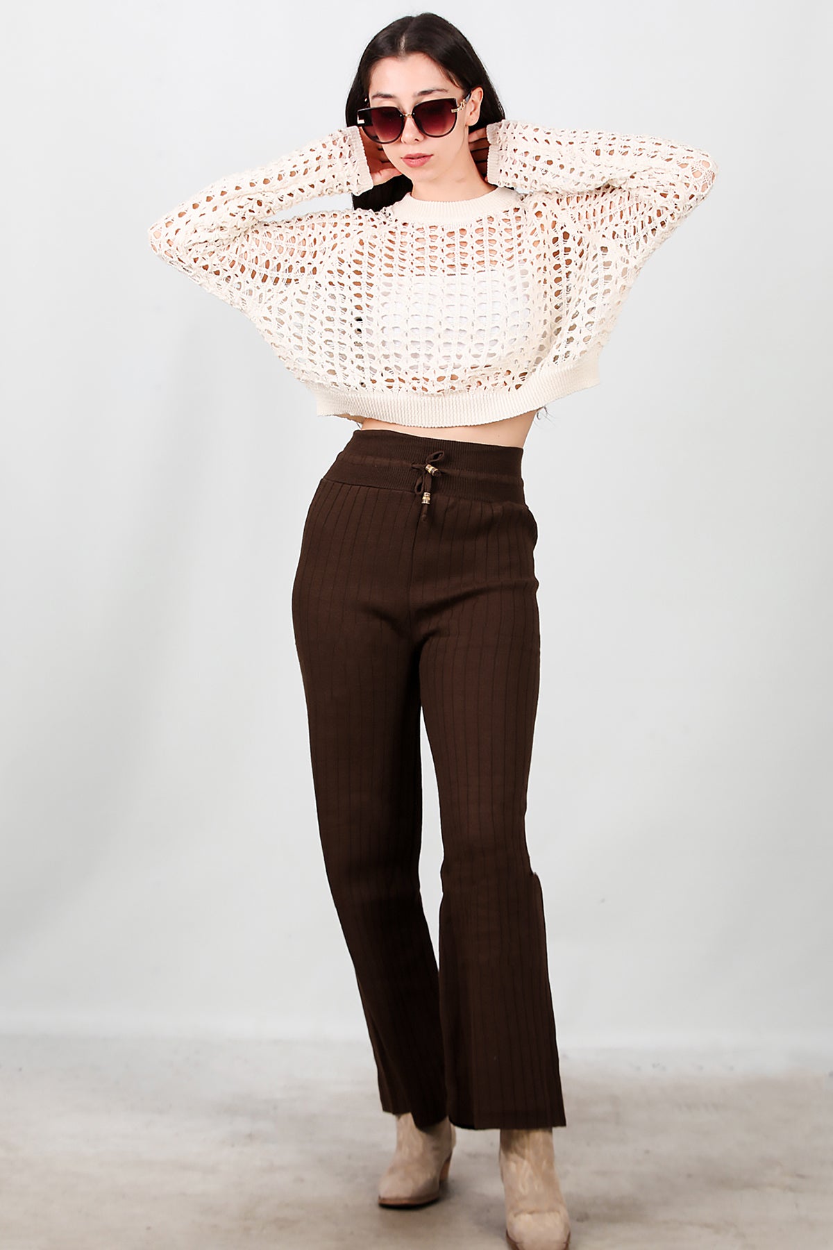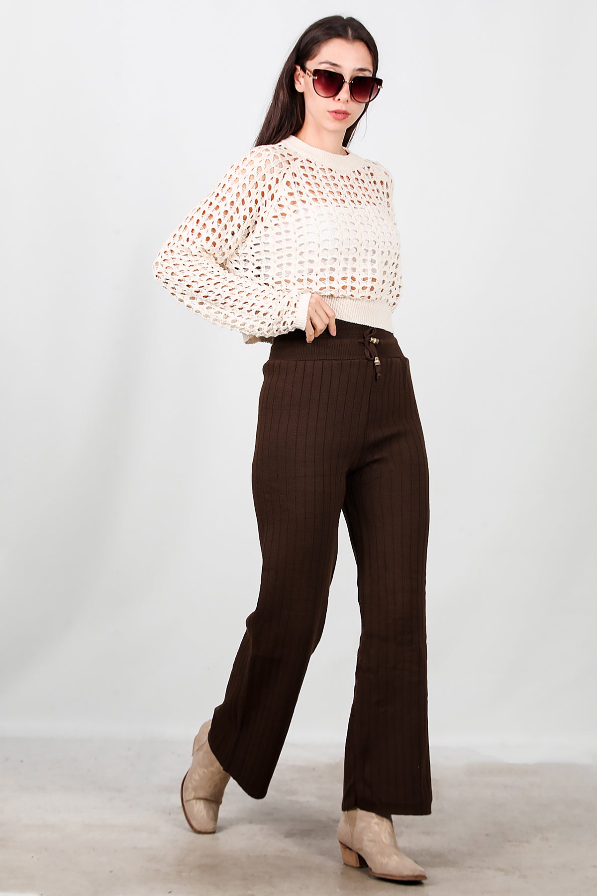 Kadın Bel Ip Detay Triko Pantolon Kahverengi