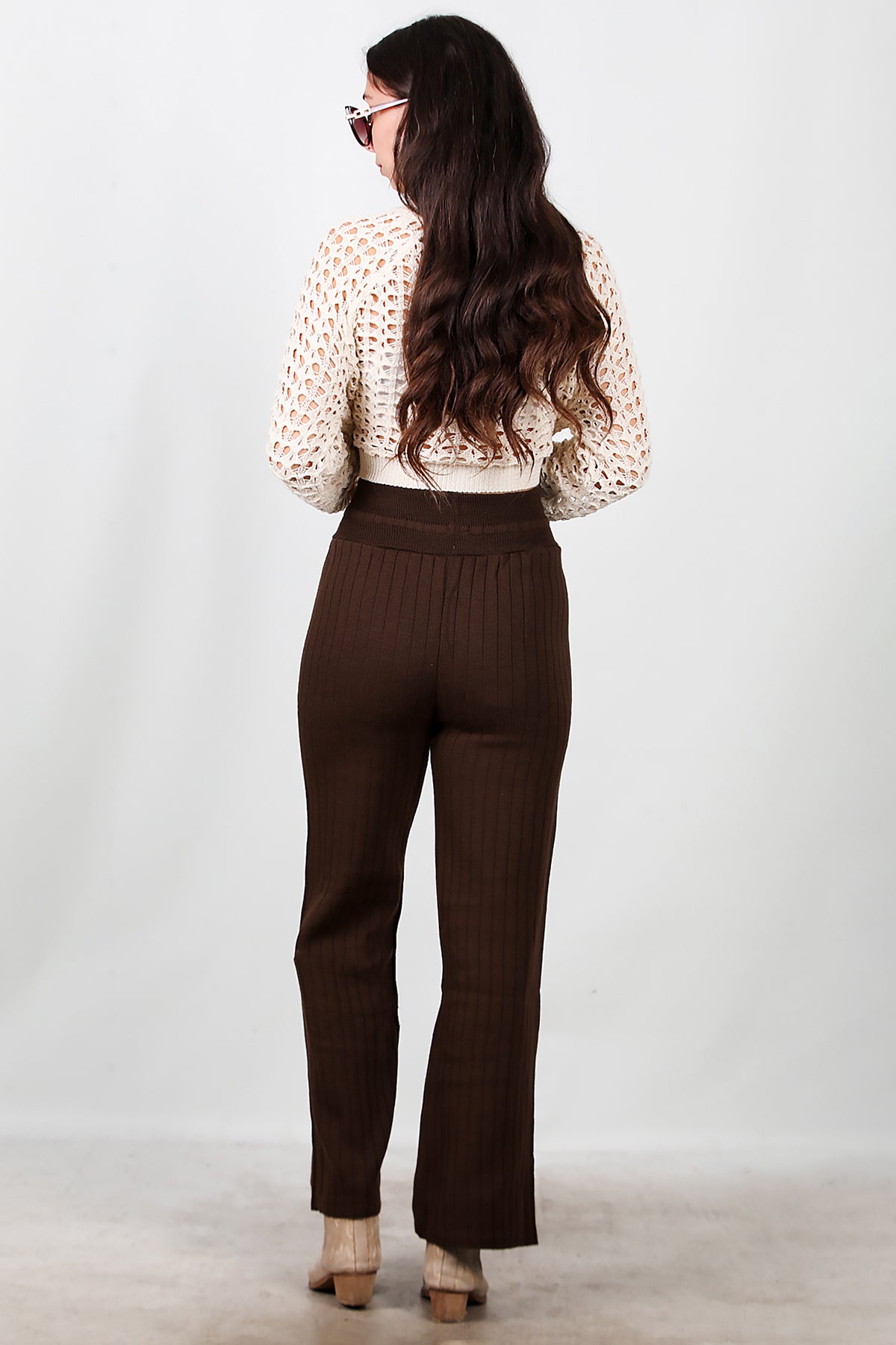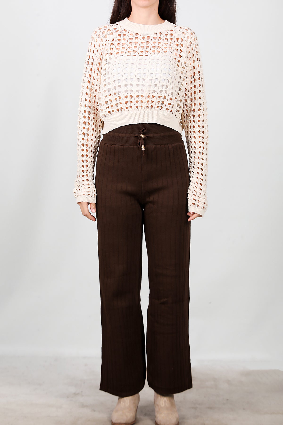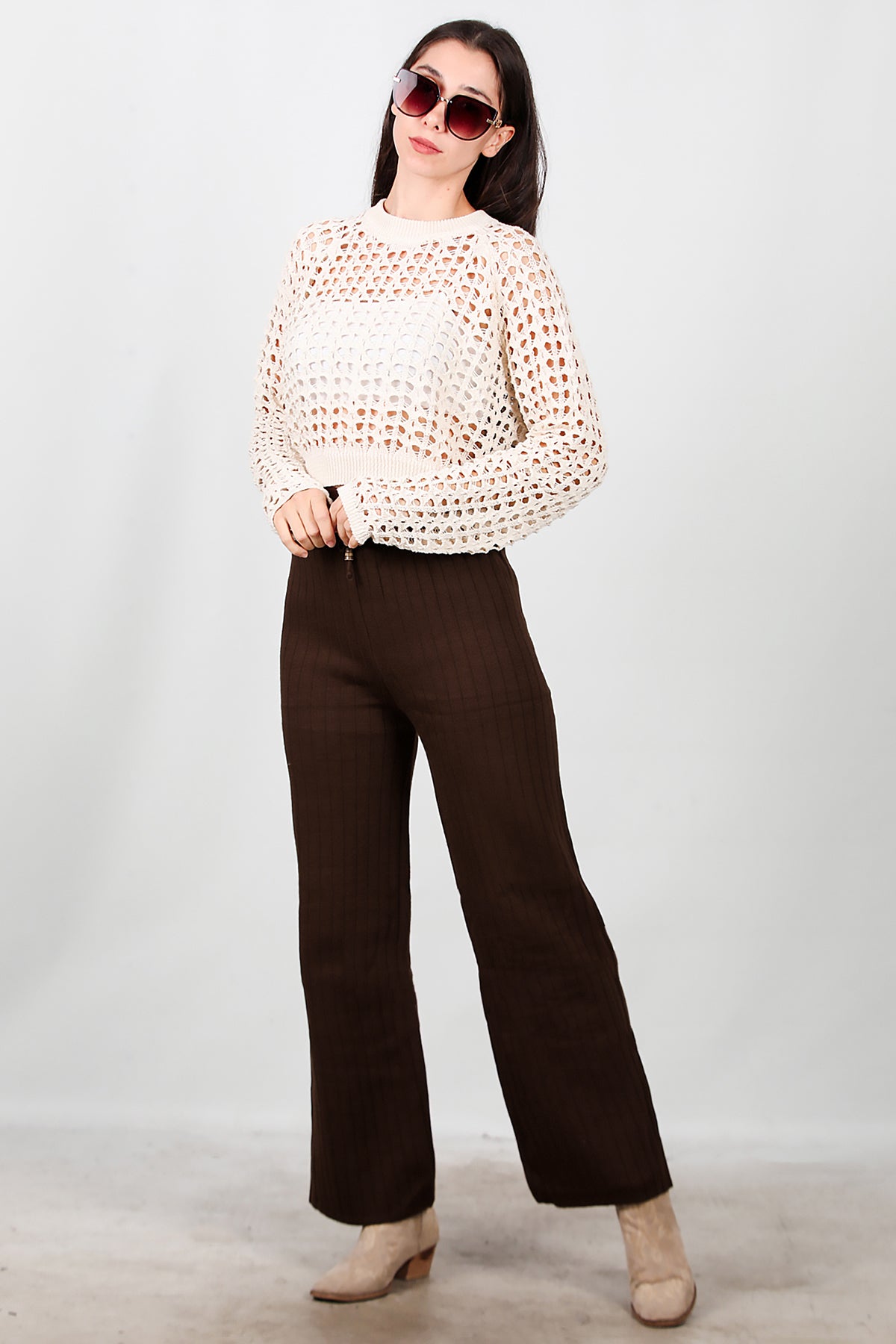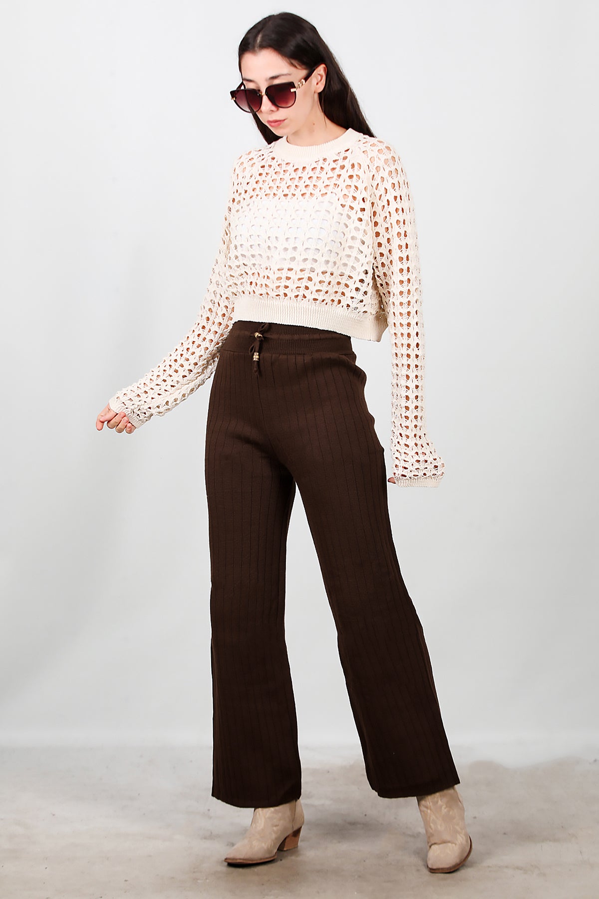 Kadın Bel Ip Detay Triko Pantolon Kahverengi