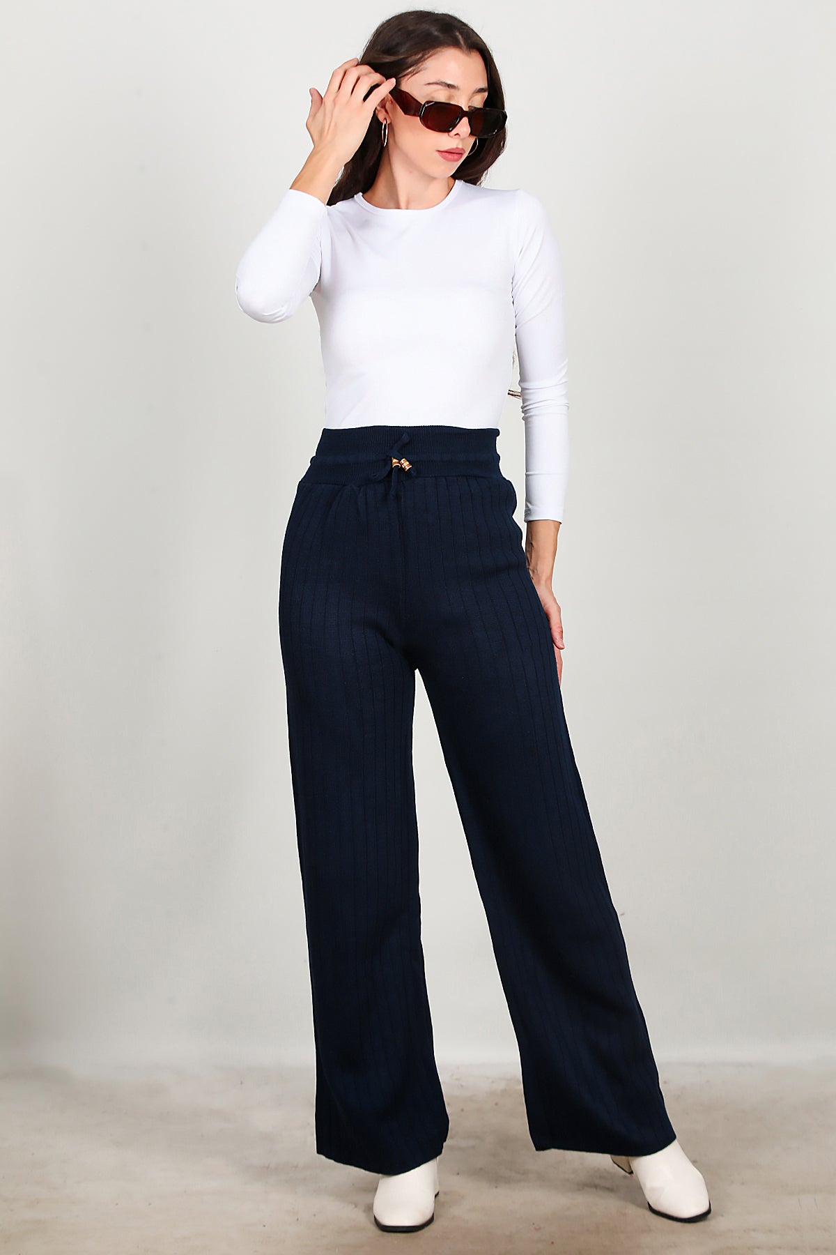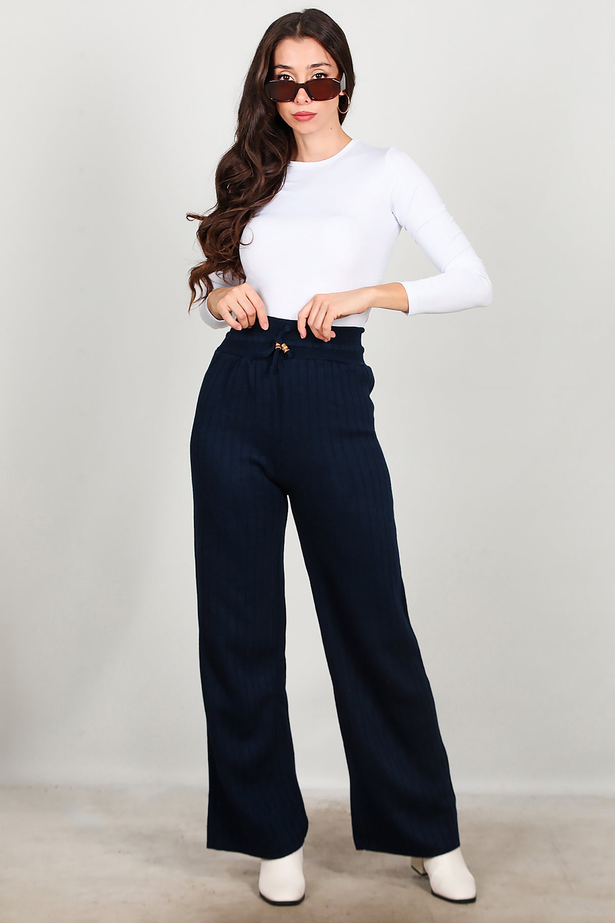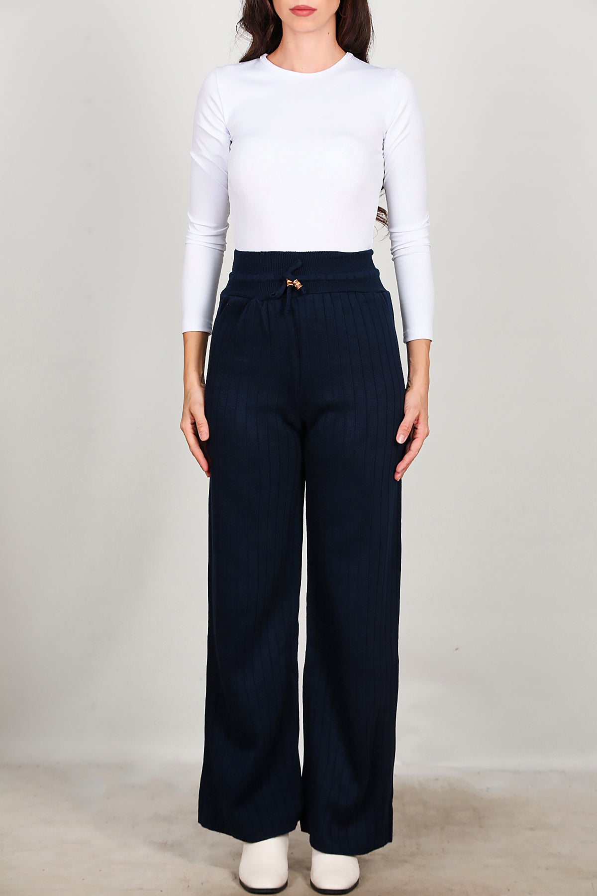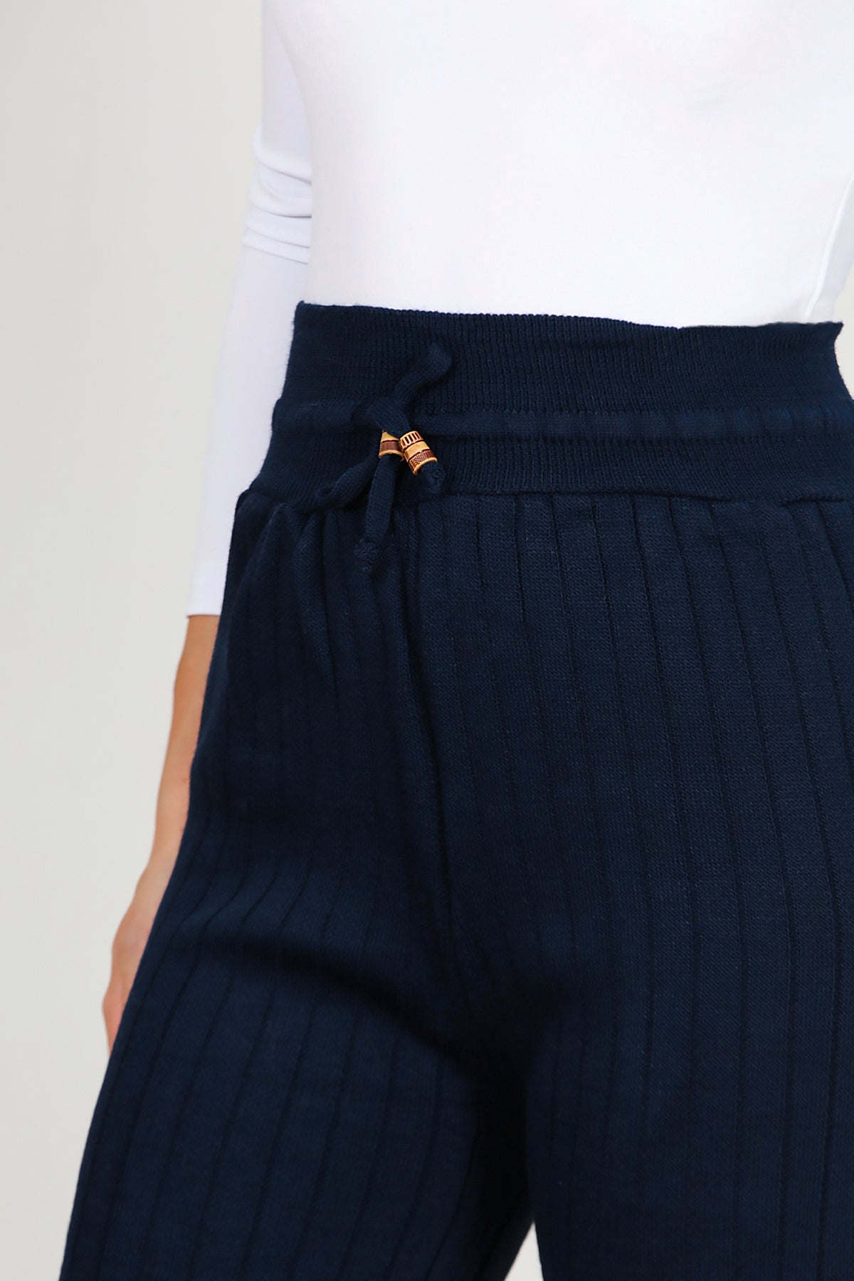 Kadın Bel Ip Detay Triko Pantolon Lacivert