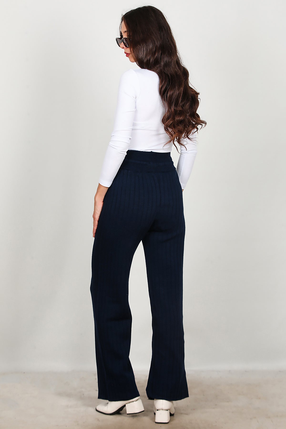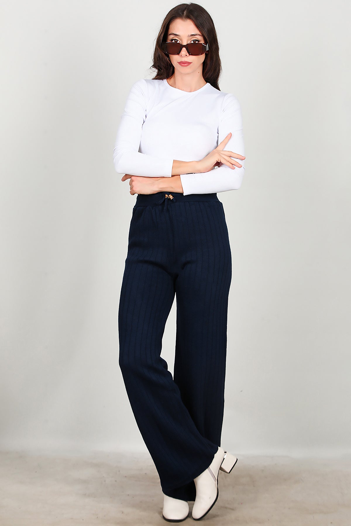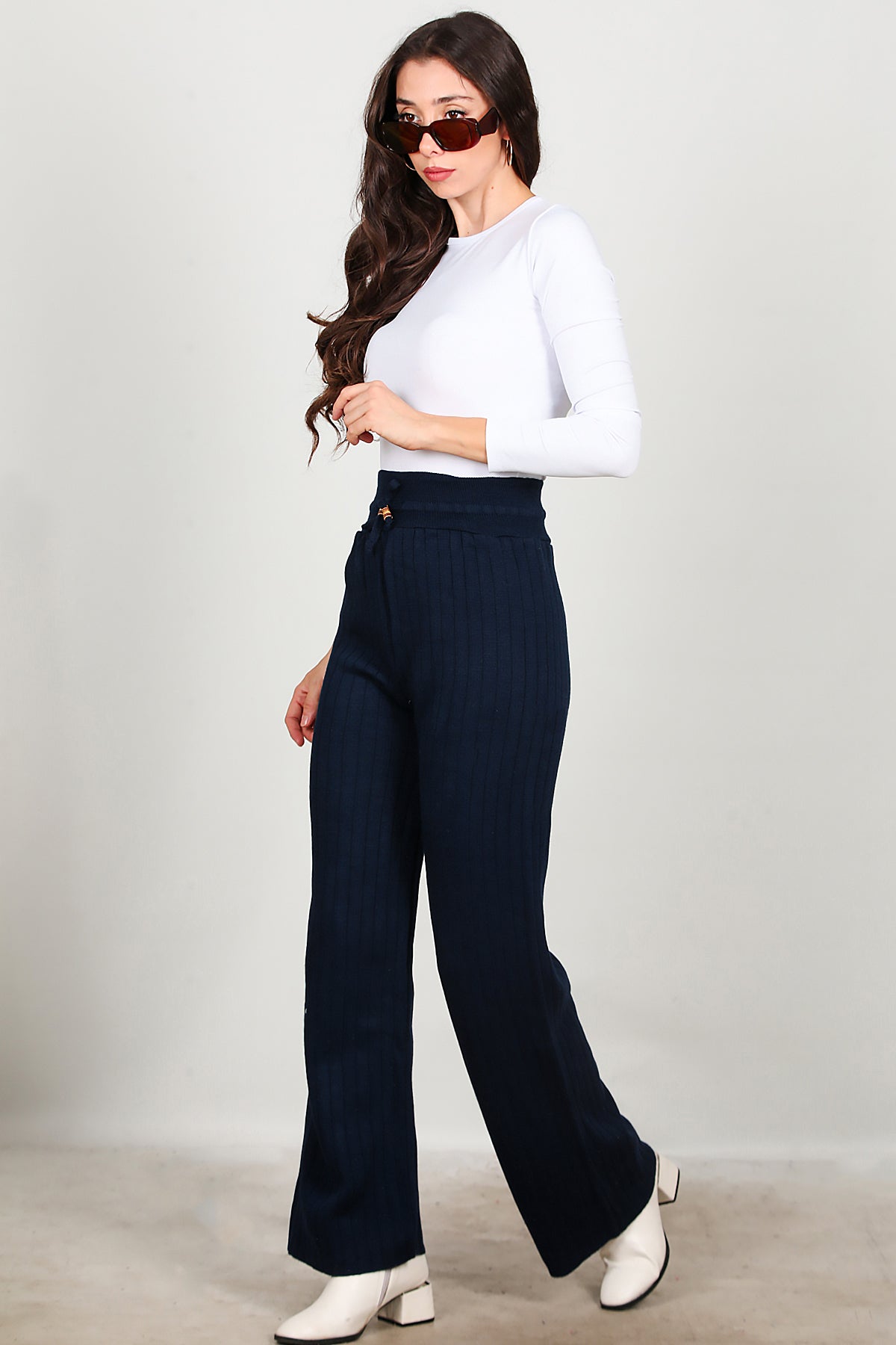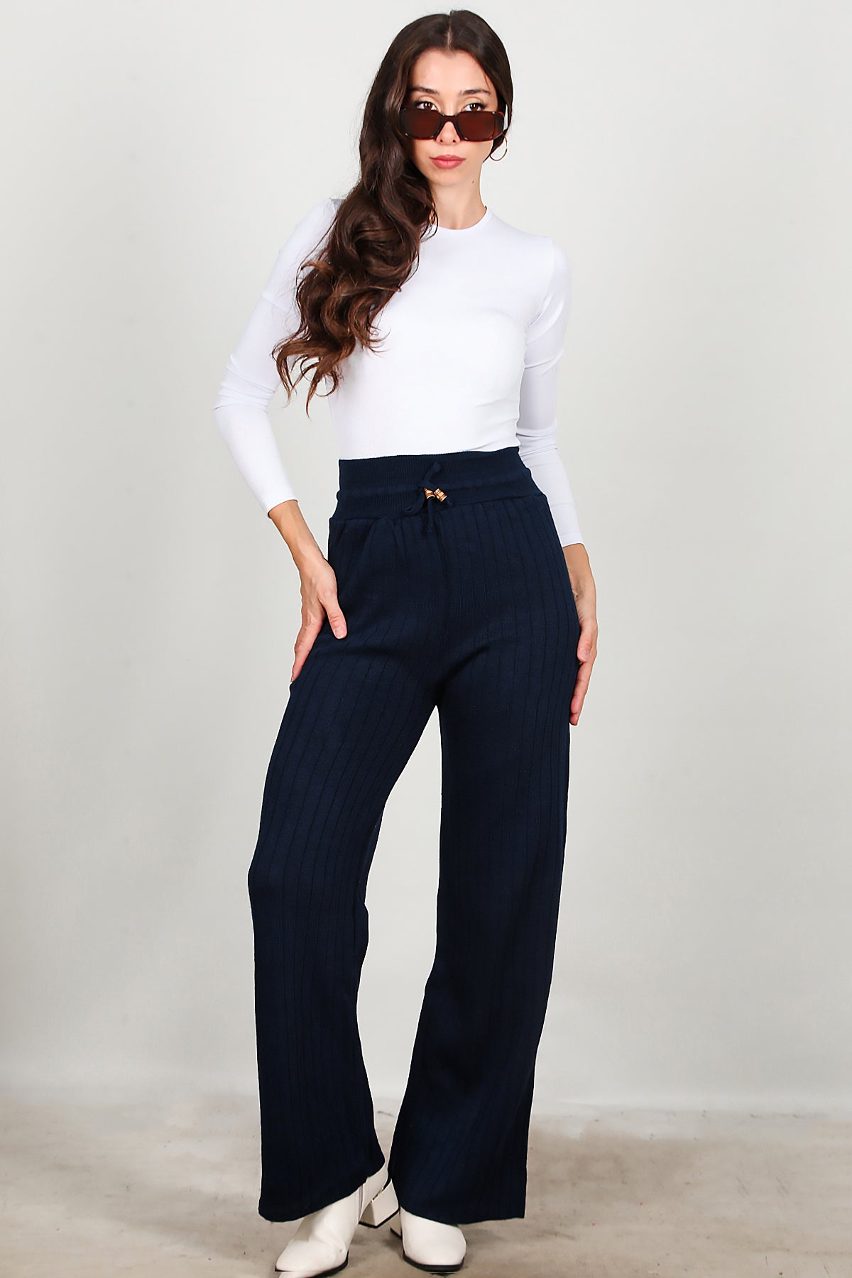 Kadın Bel Ip Detay Triko Pantolon Lacivert