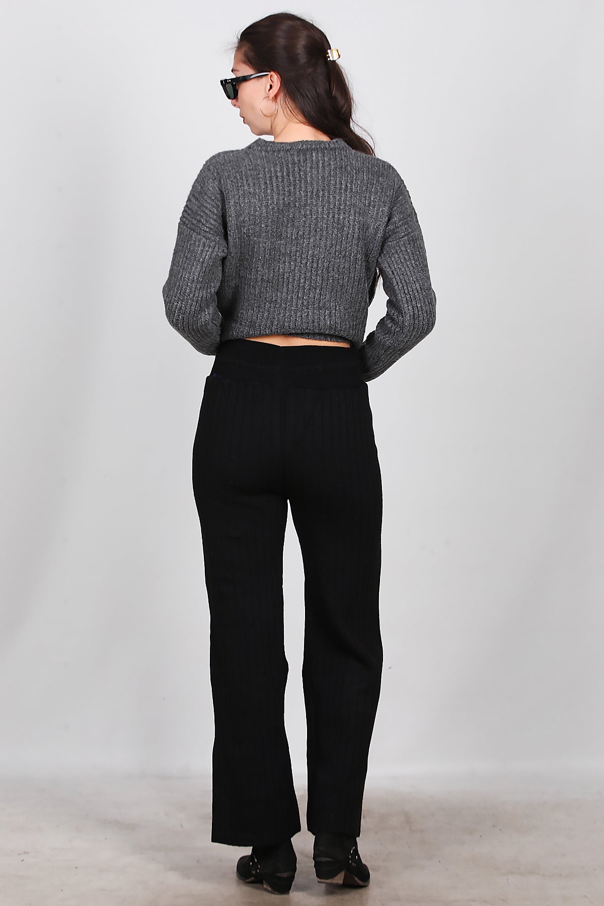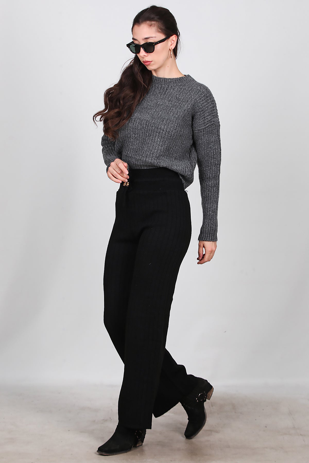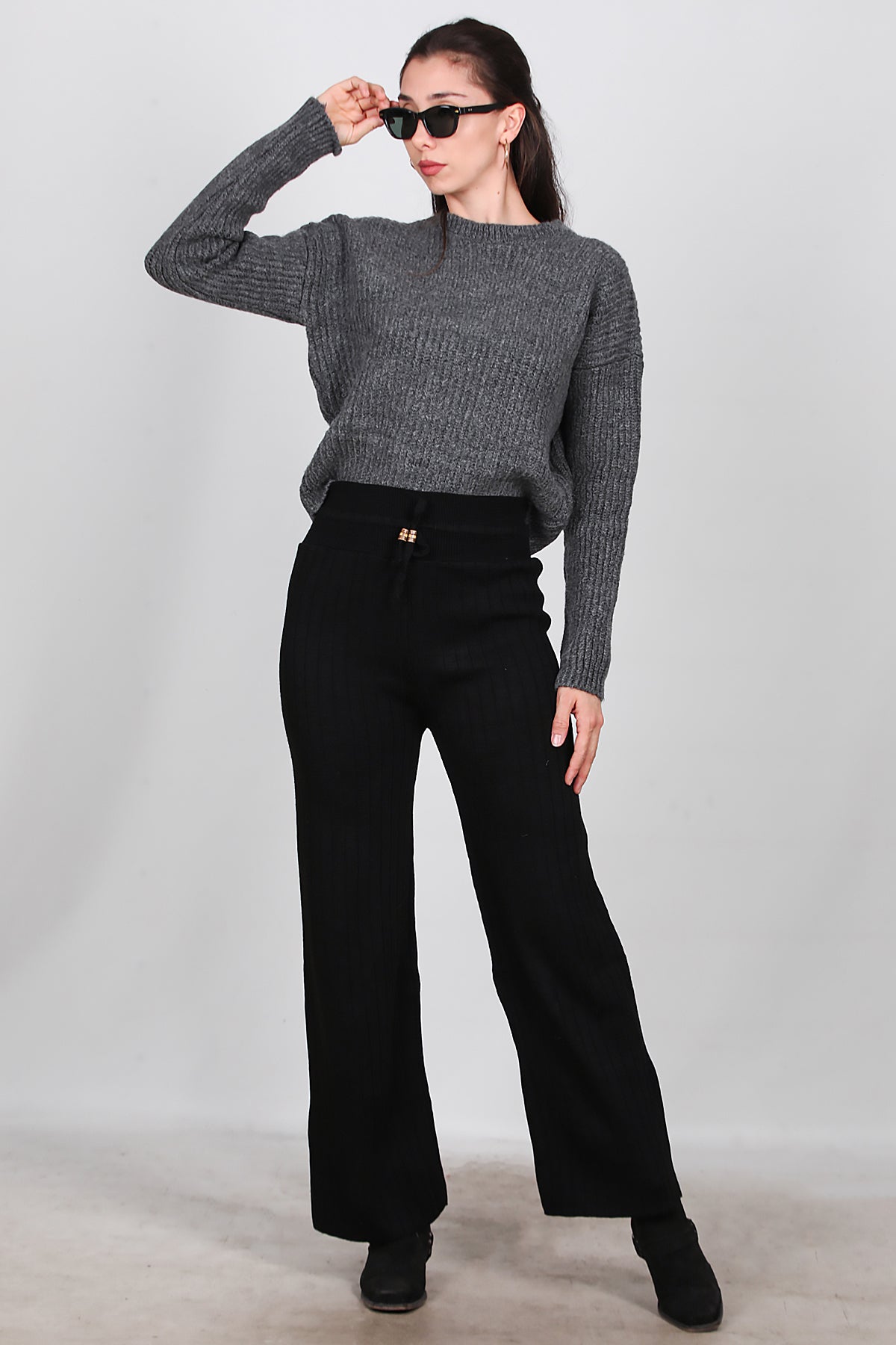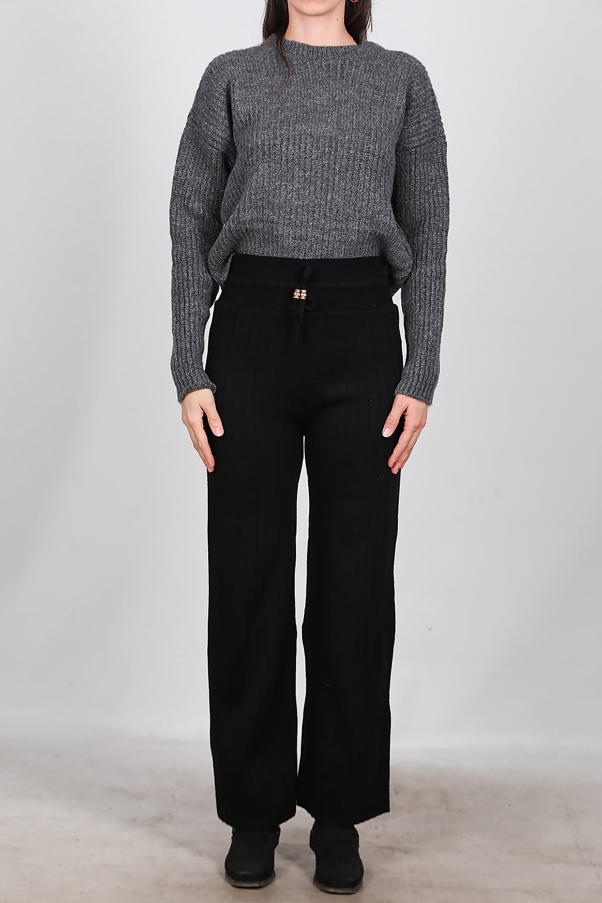 Kadın Bel Ip Detay Triko Pantolon Siyah