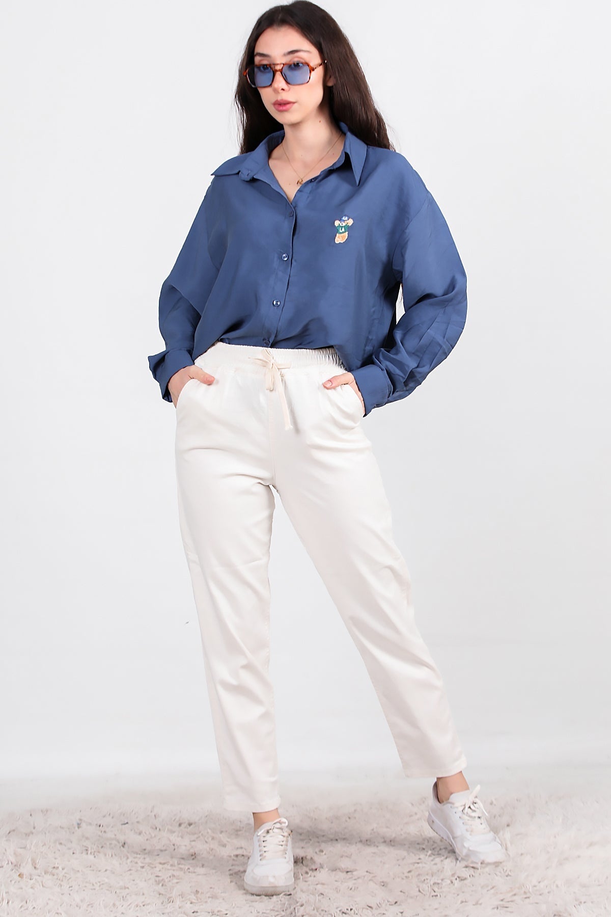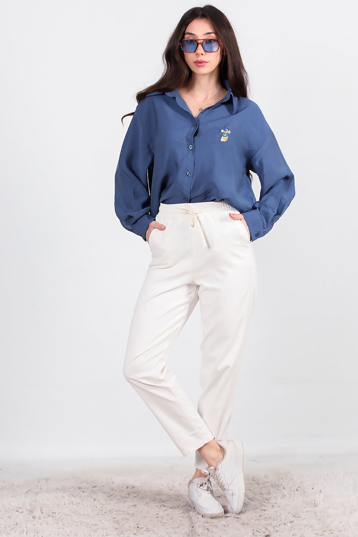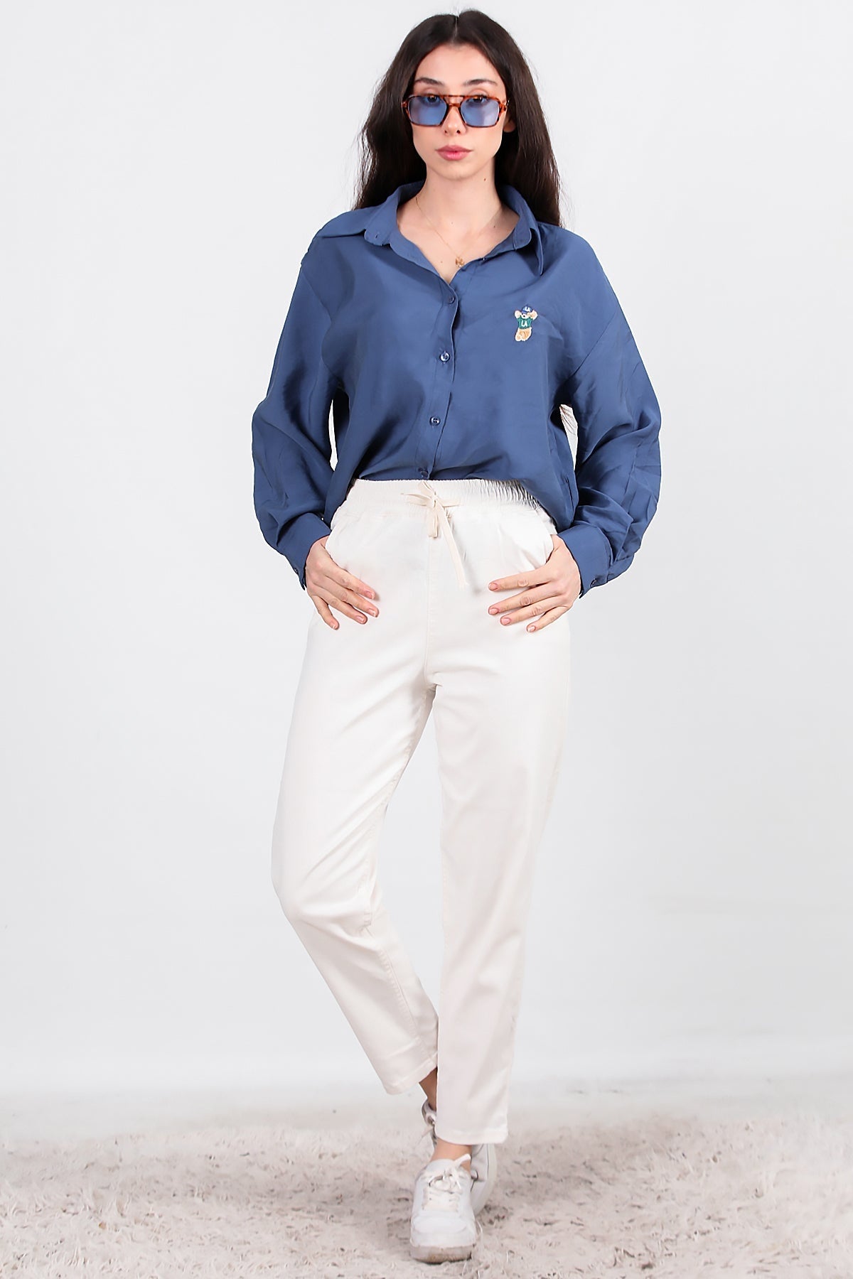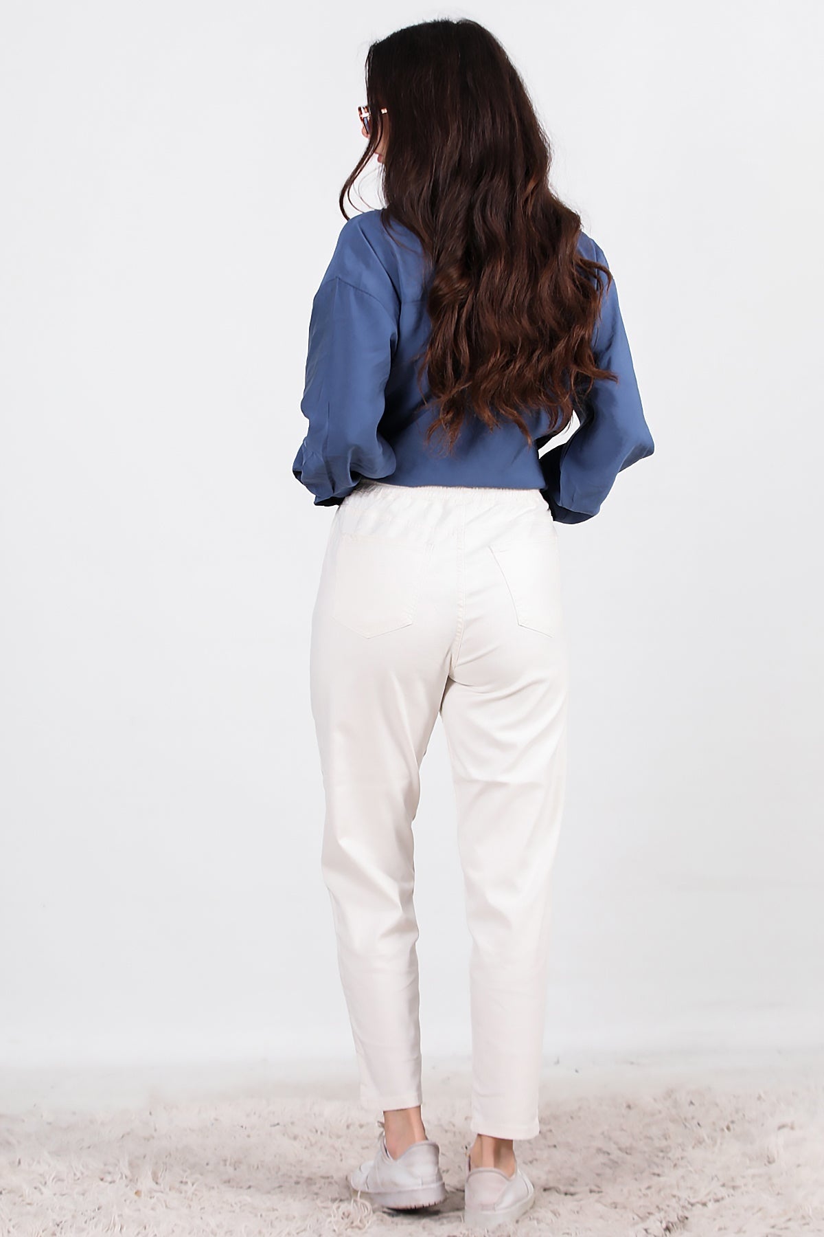 Kadın Bel Lastikli Esnek Kumaş Pantolon Ekru