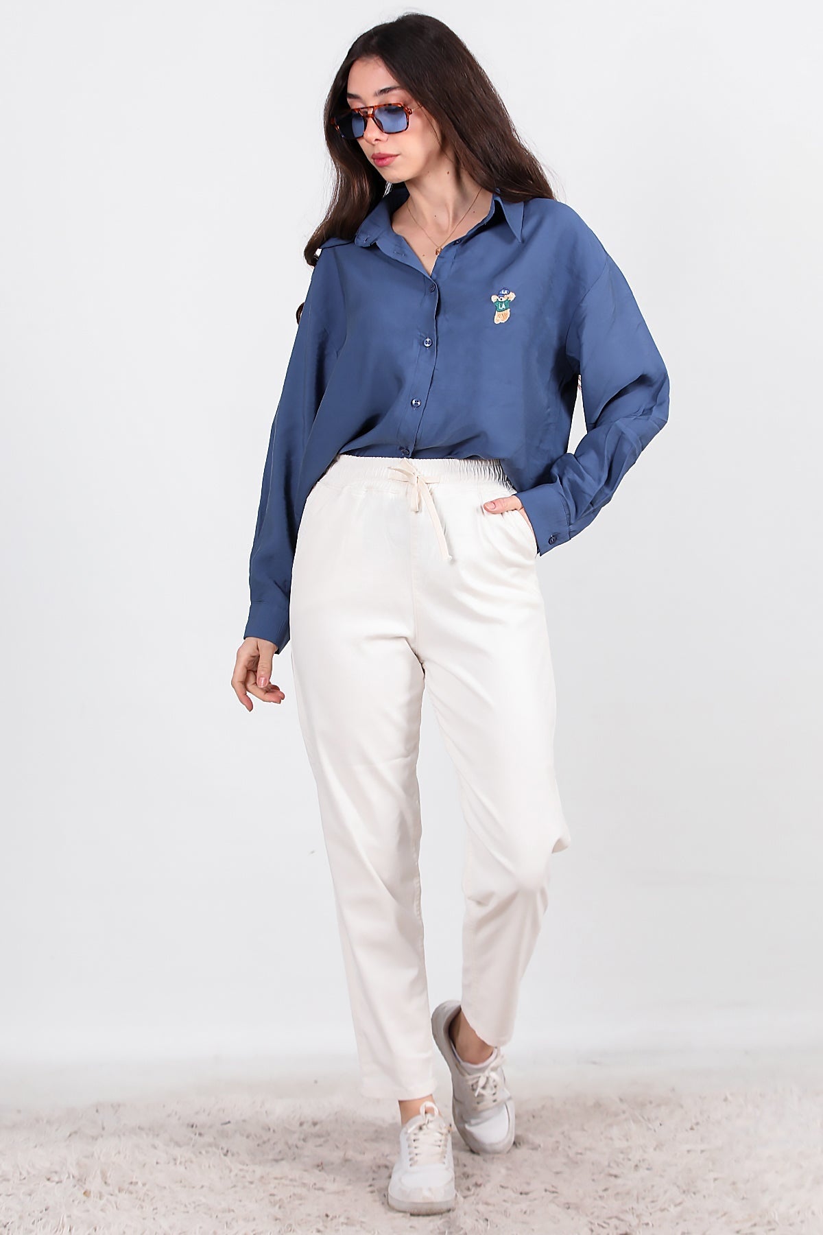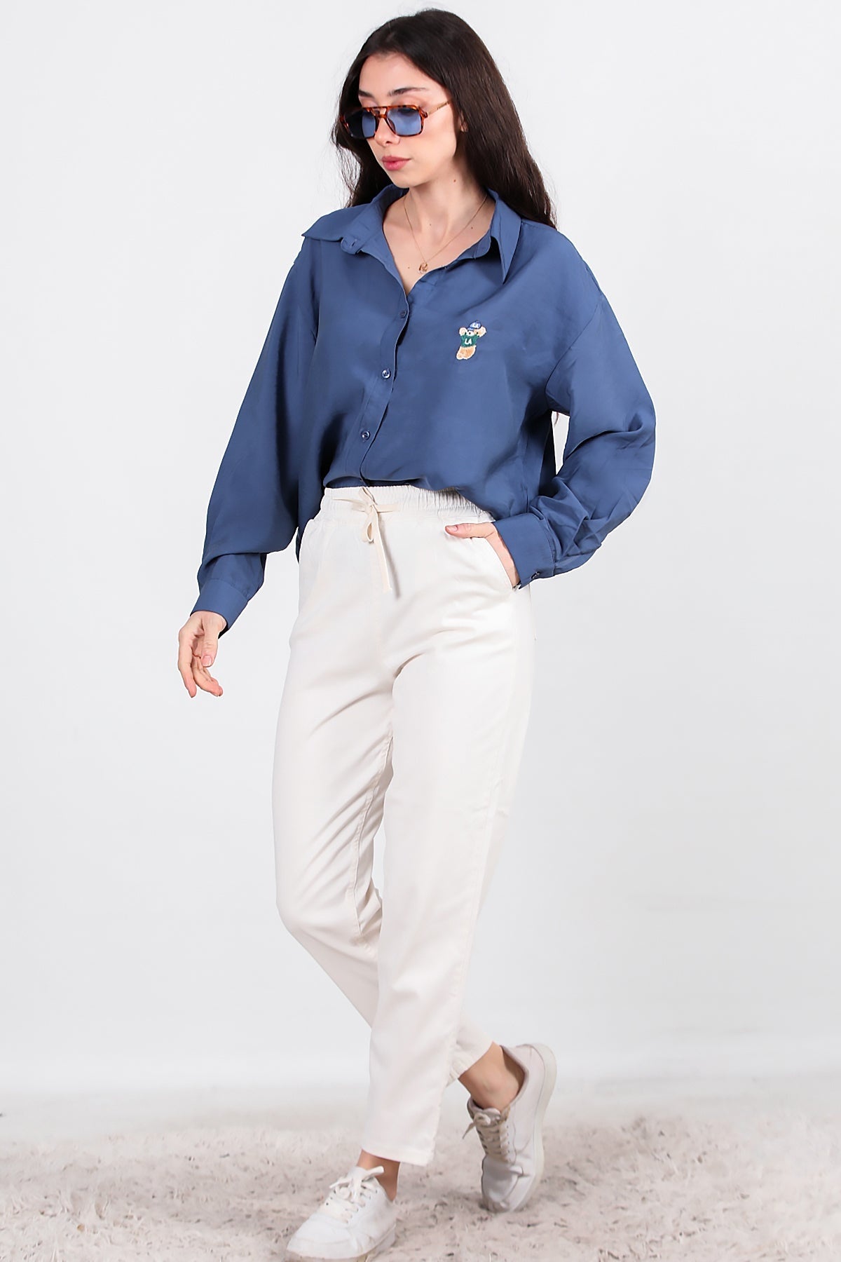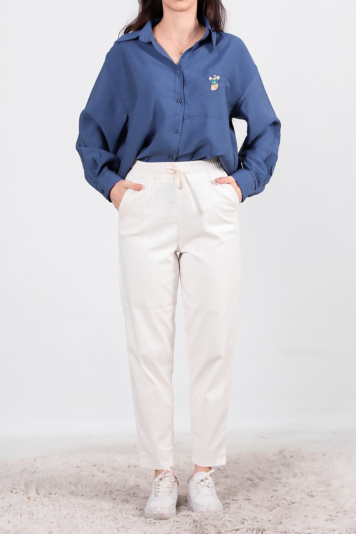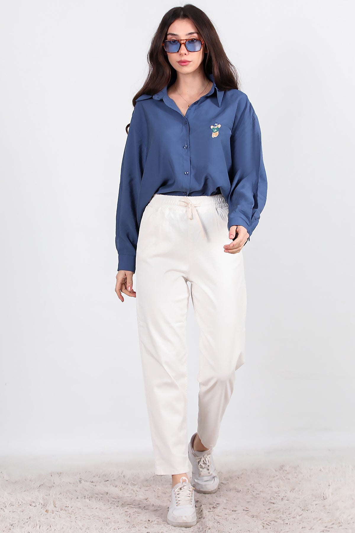 Kadın Bel Lastikli Esnek Kumaş Pantolon Ekru