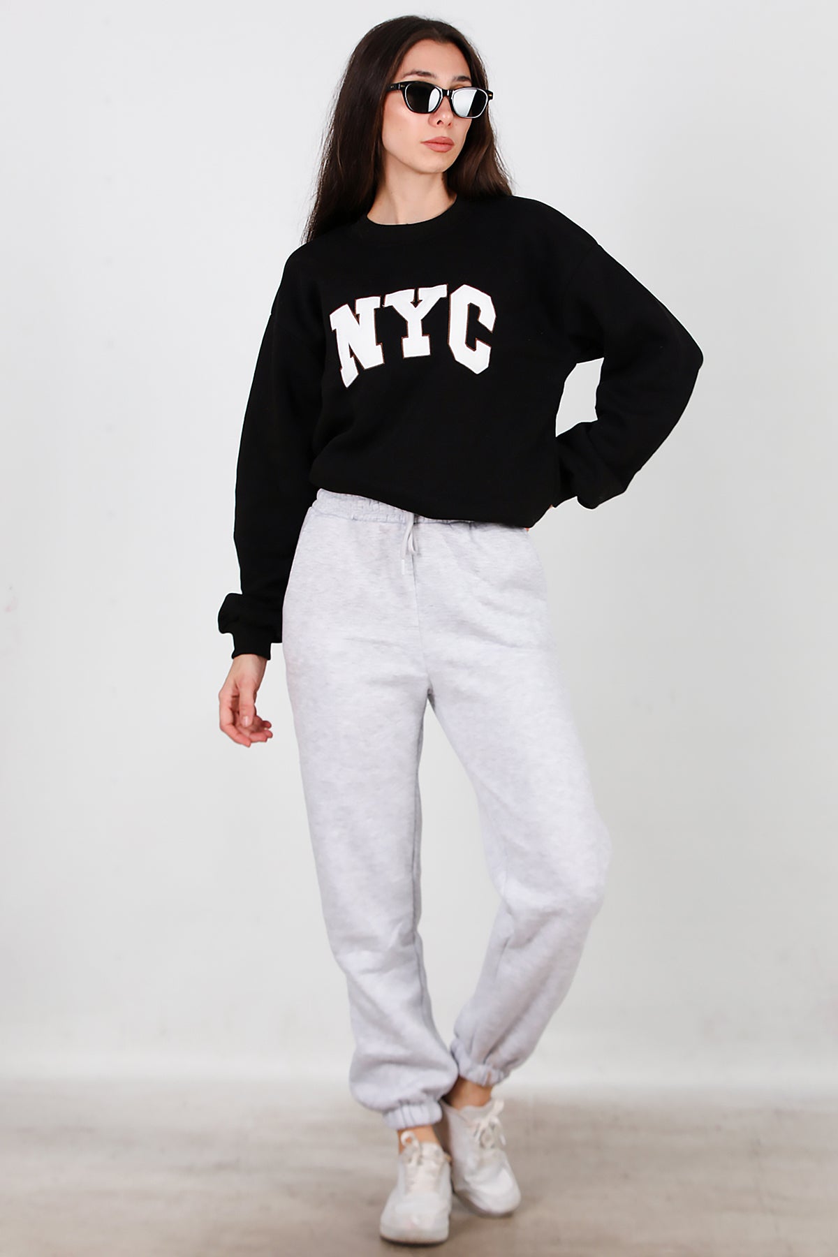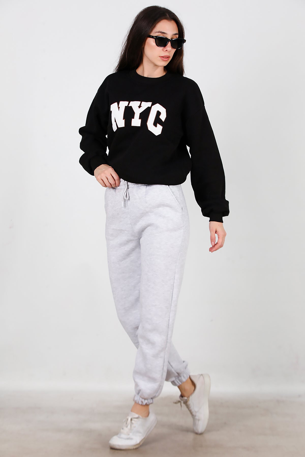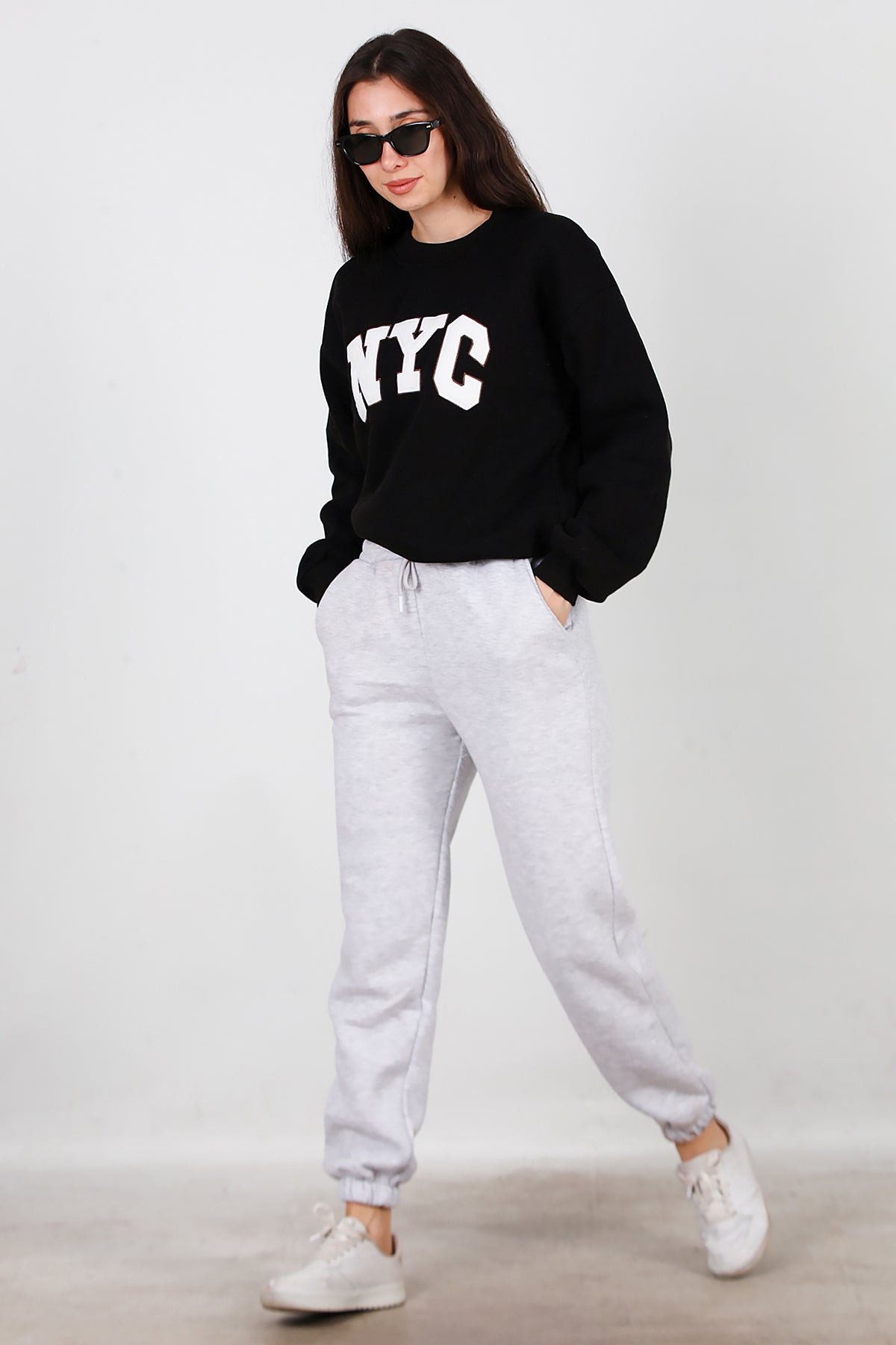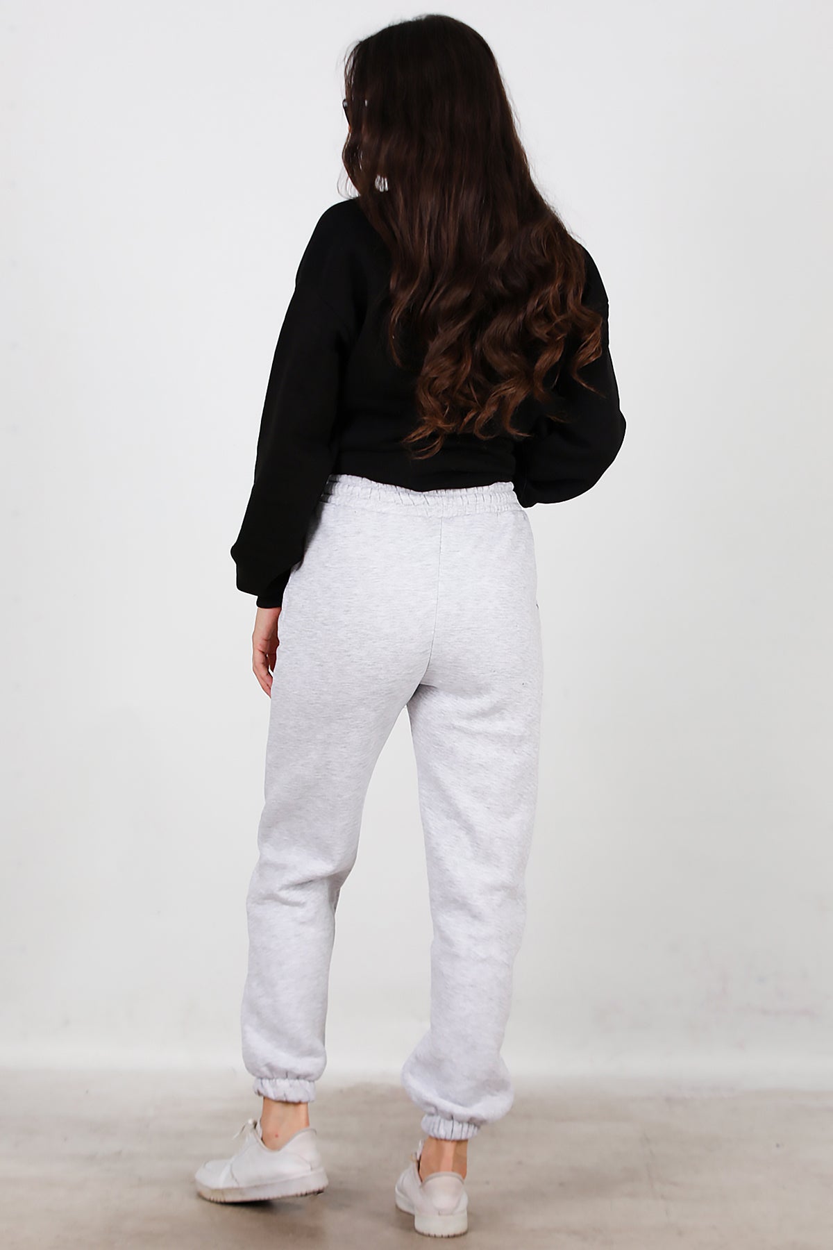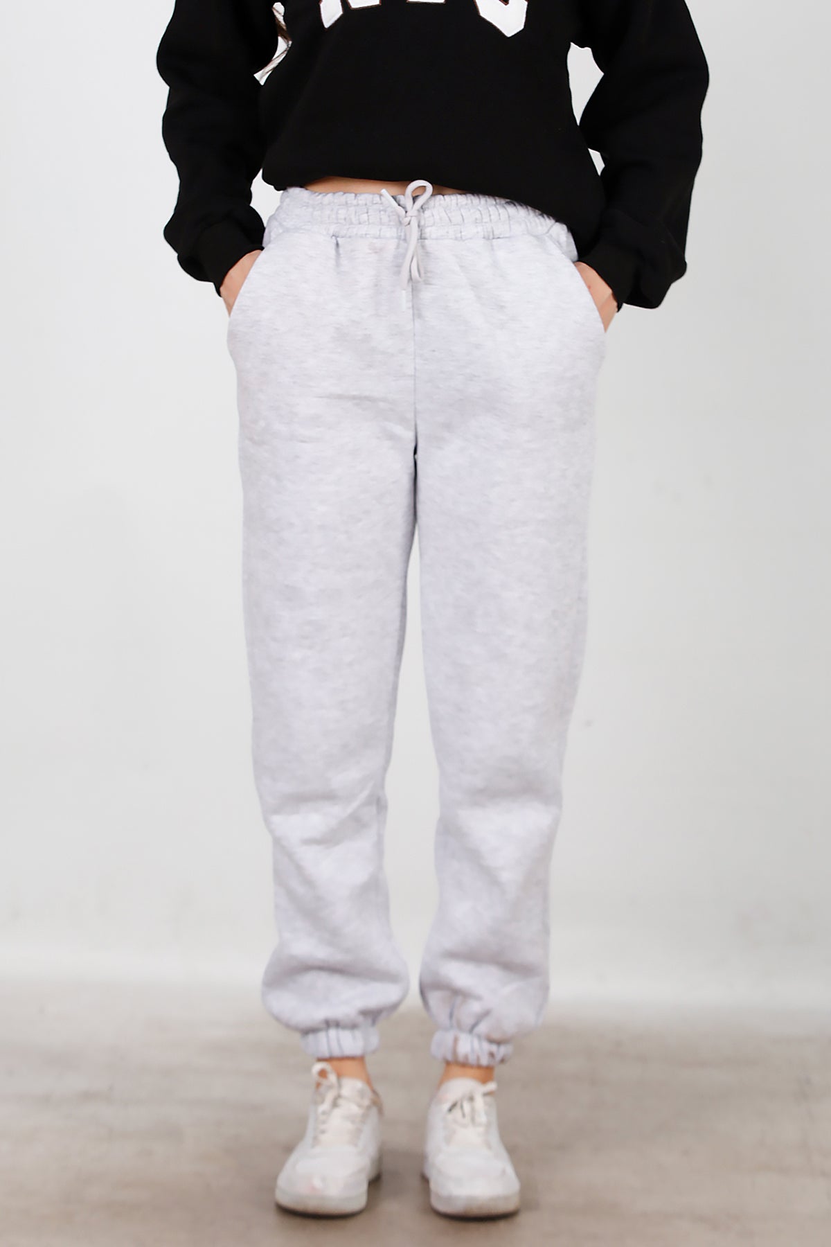 Kadın Bel Paça Lastikli Üç İplik Eşofman Gri