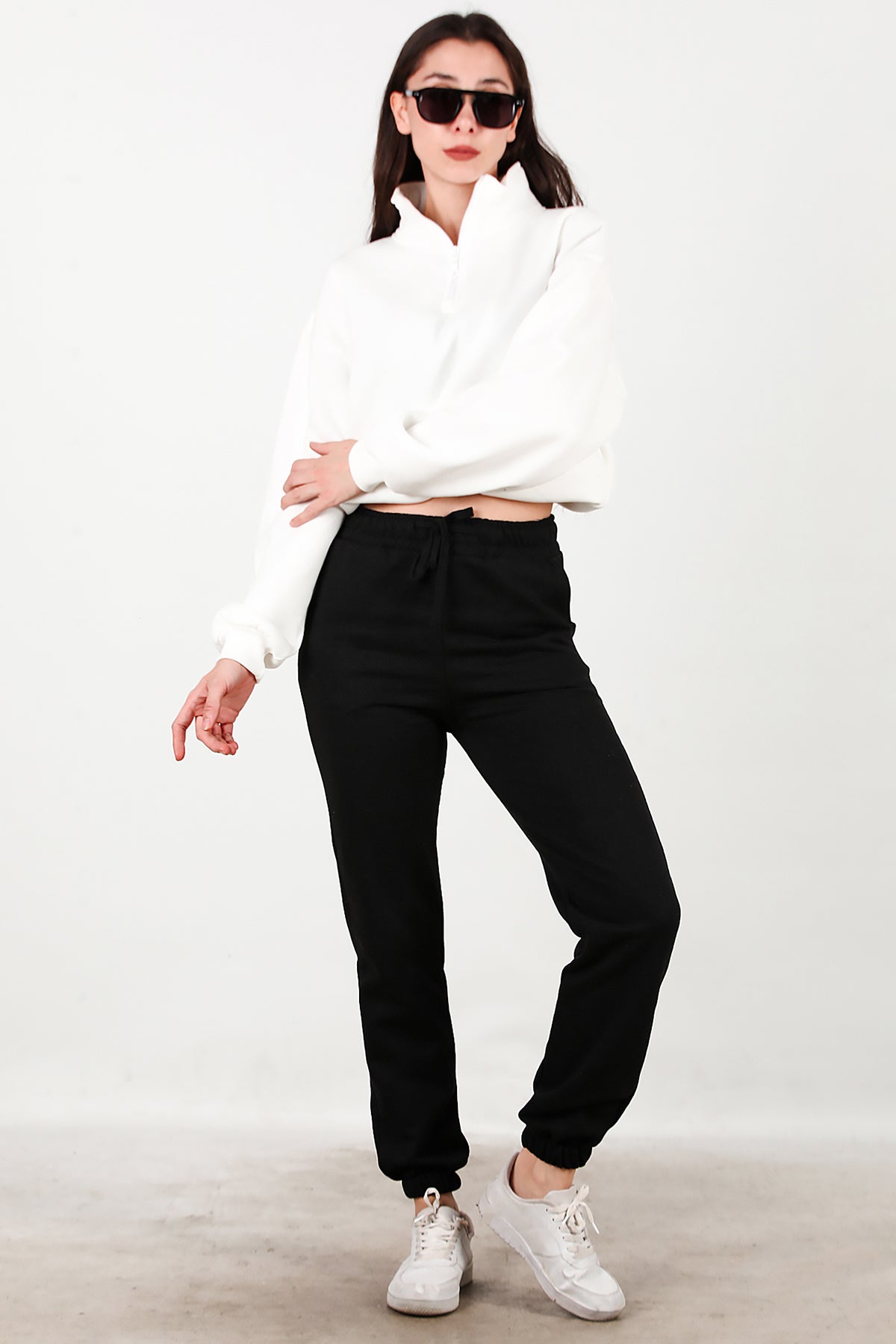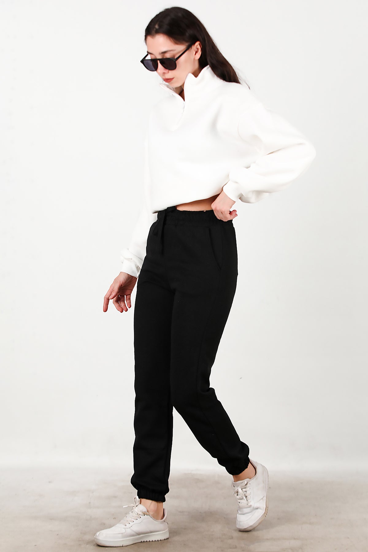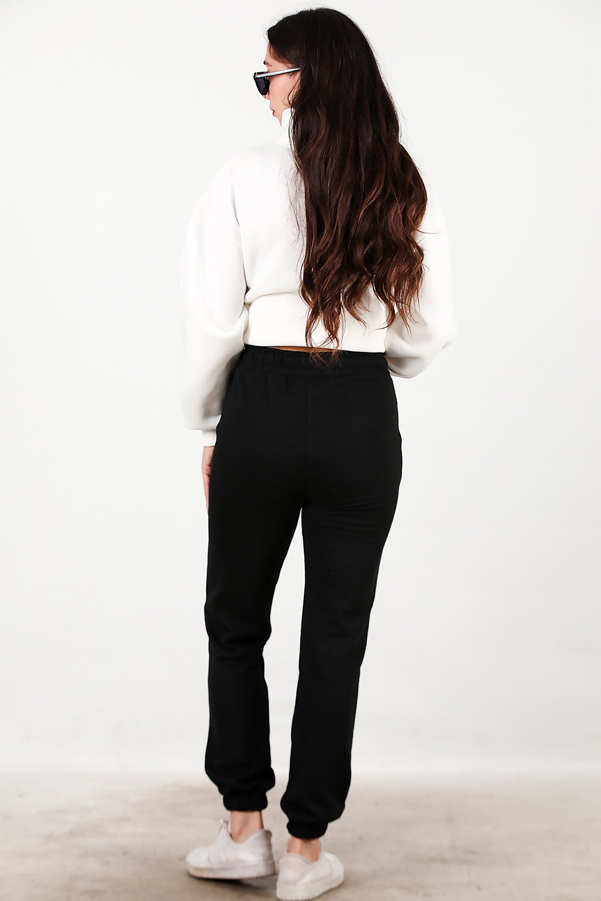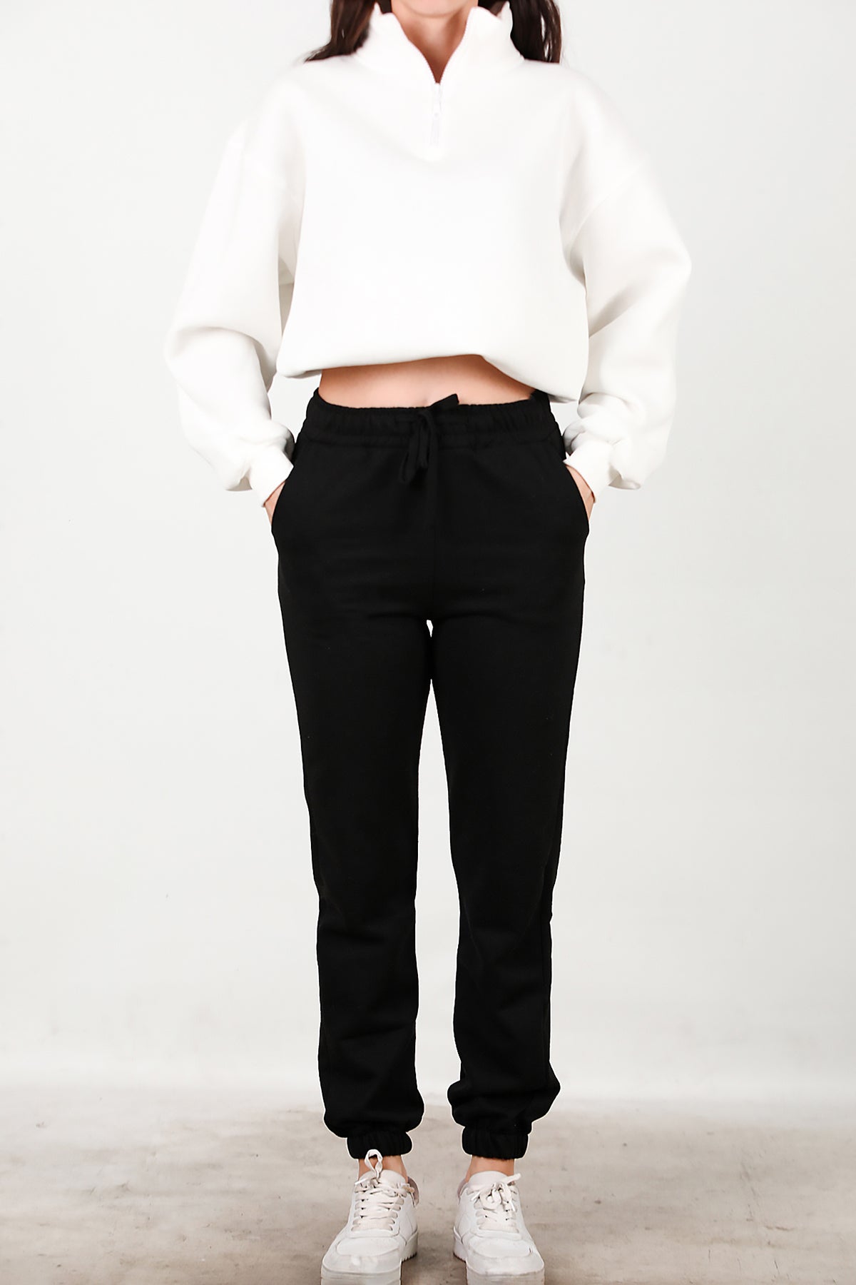 Kadın Bel Paça Lastikli Üç İplik Eşofman Siyah