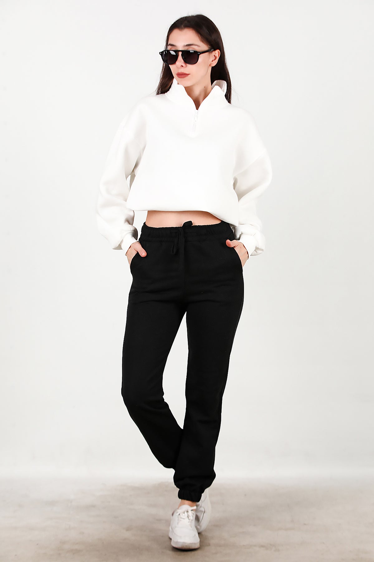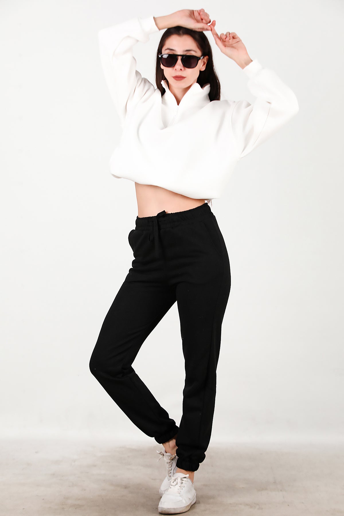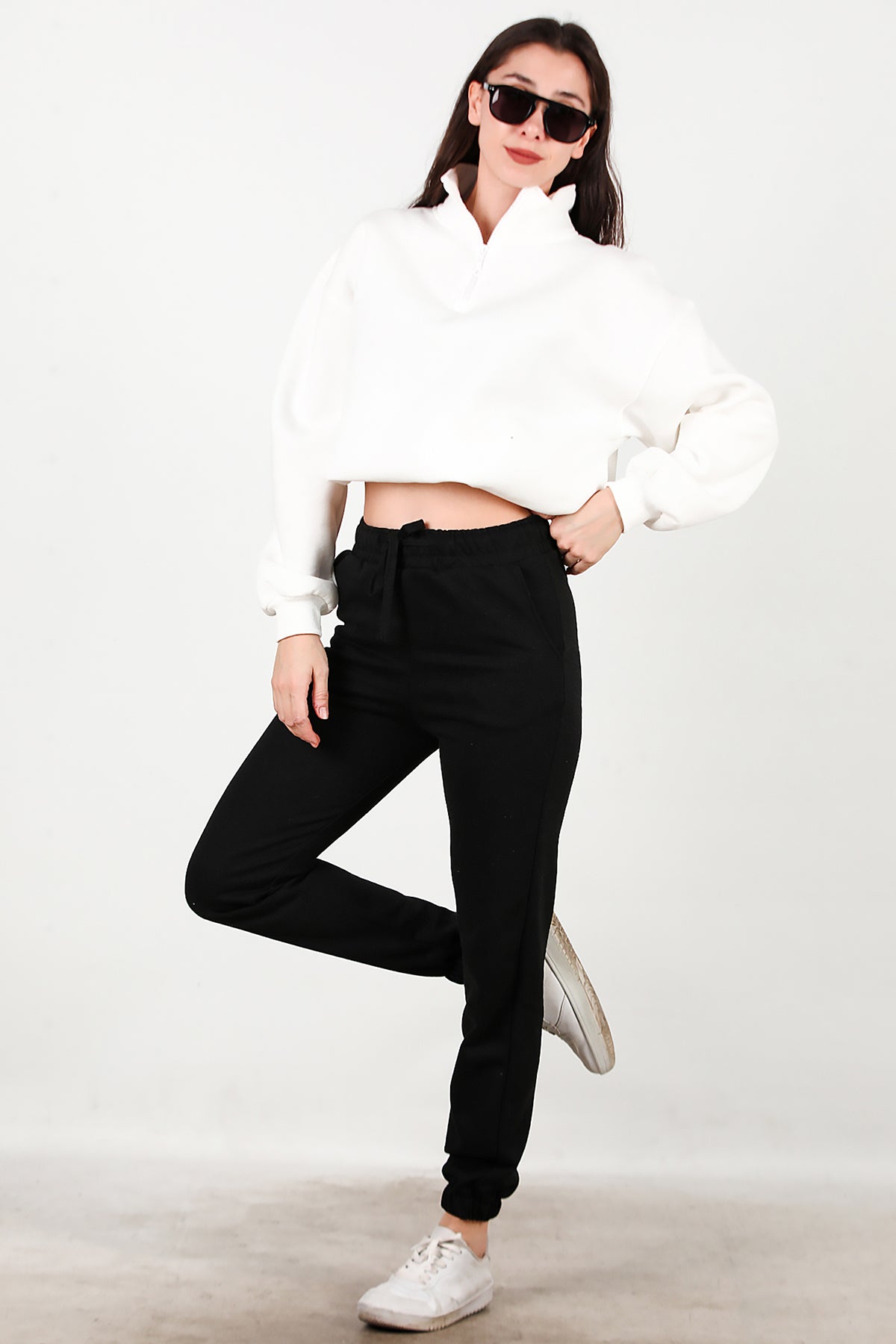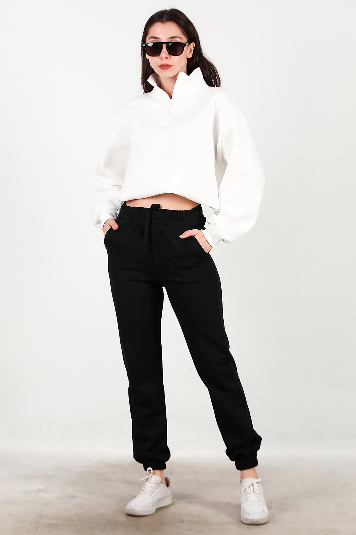 Kadın Bel Paça Lastikli Üç İplik Eşofman Siyah