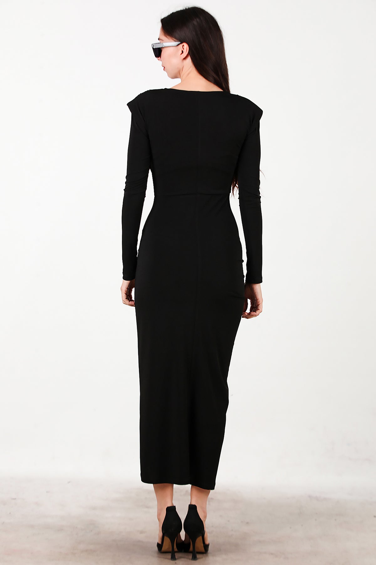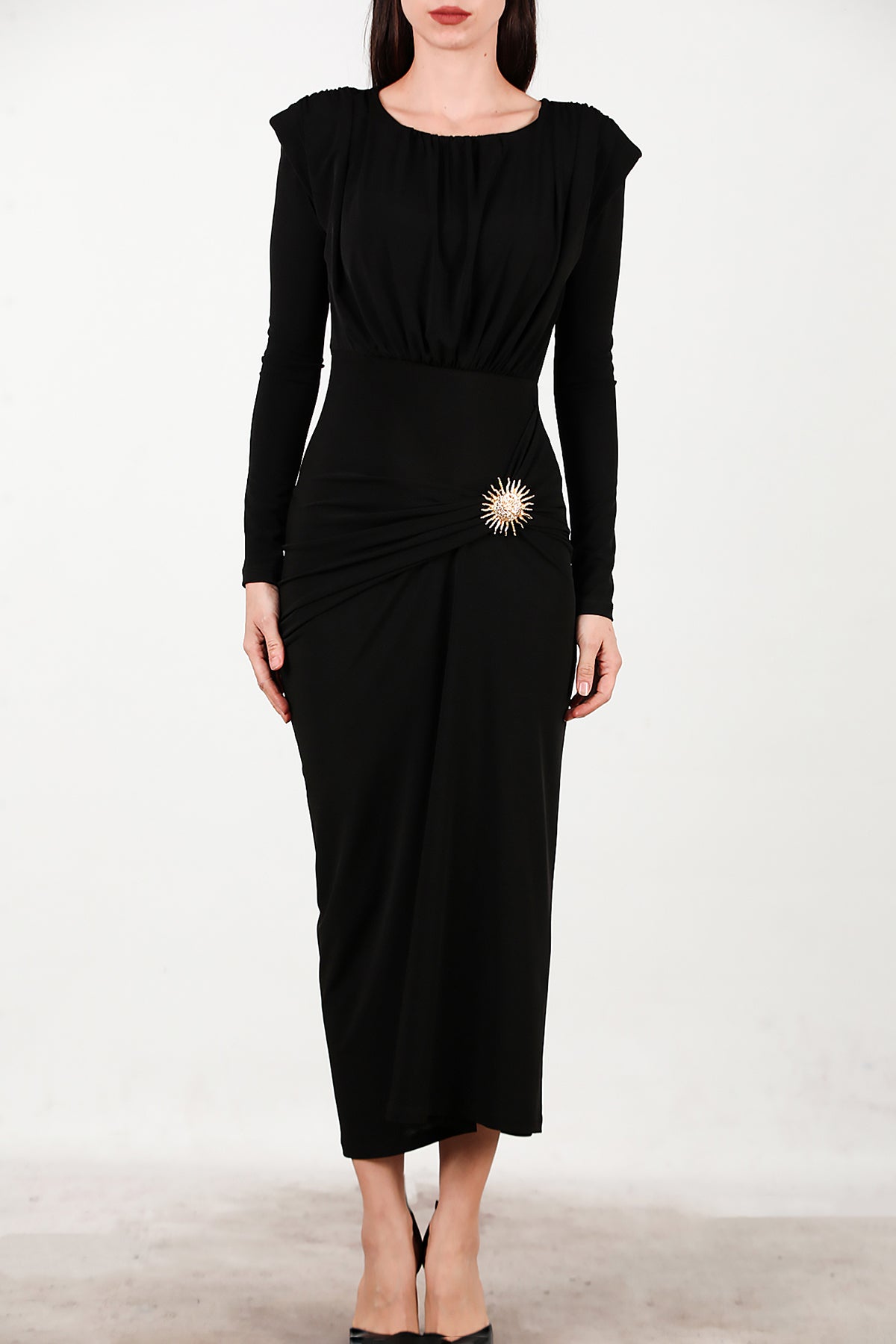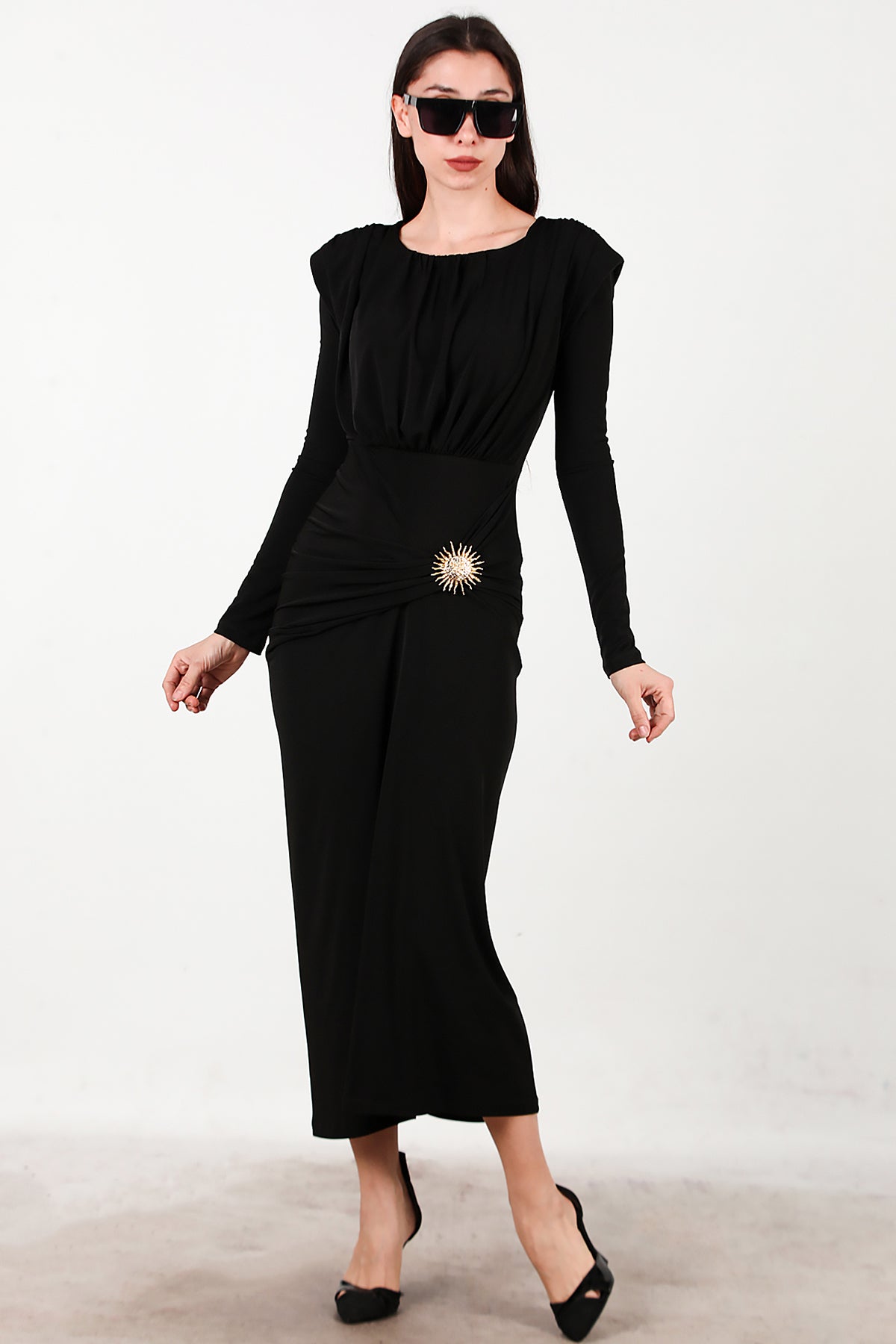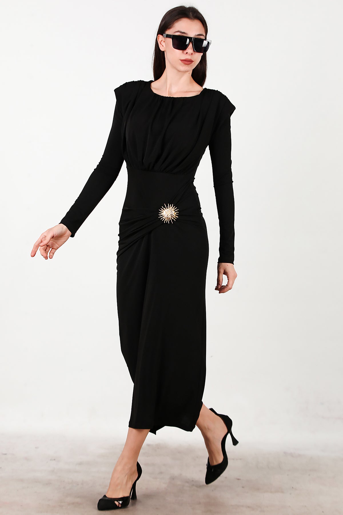 Kadın Bel Toka Detay Uzun Elbise Siyah