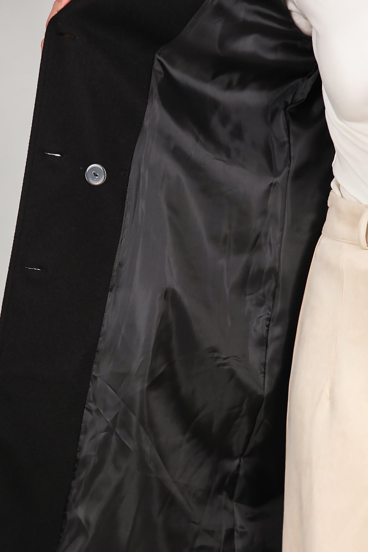 Kadın Beli Kuşaklı Kaşe Kaban Siyah
