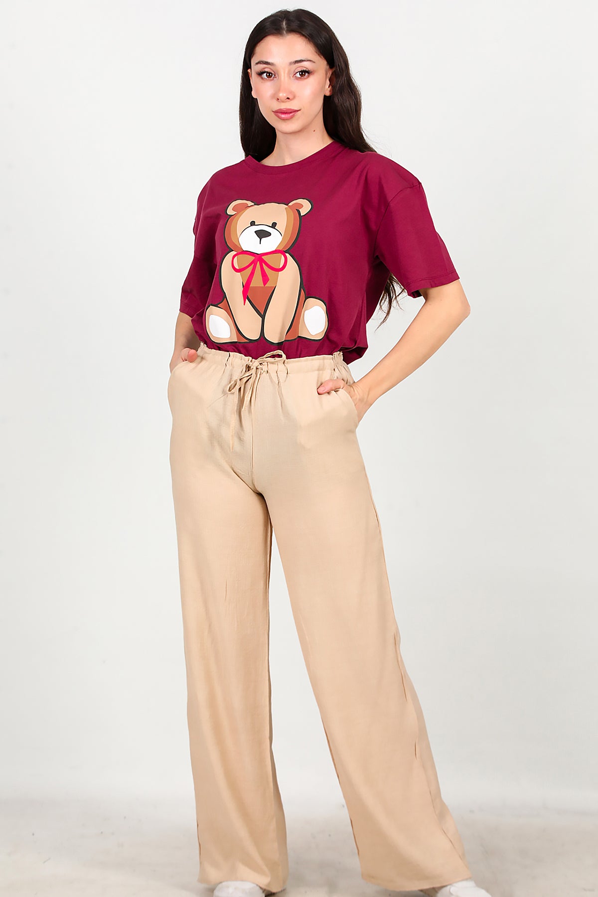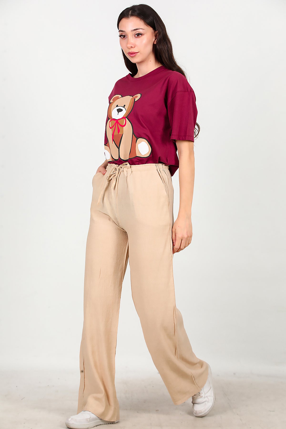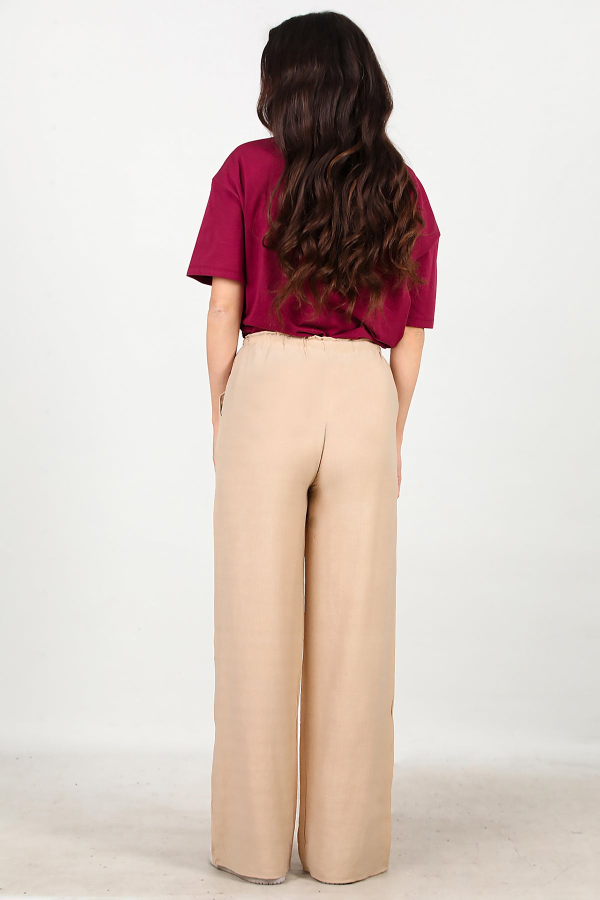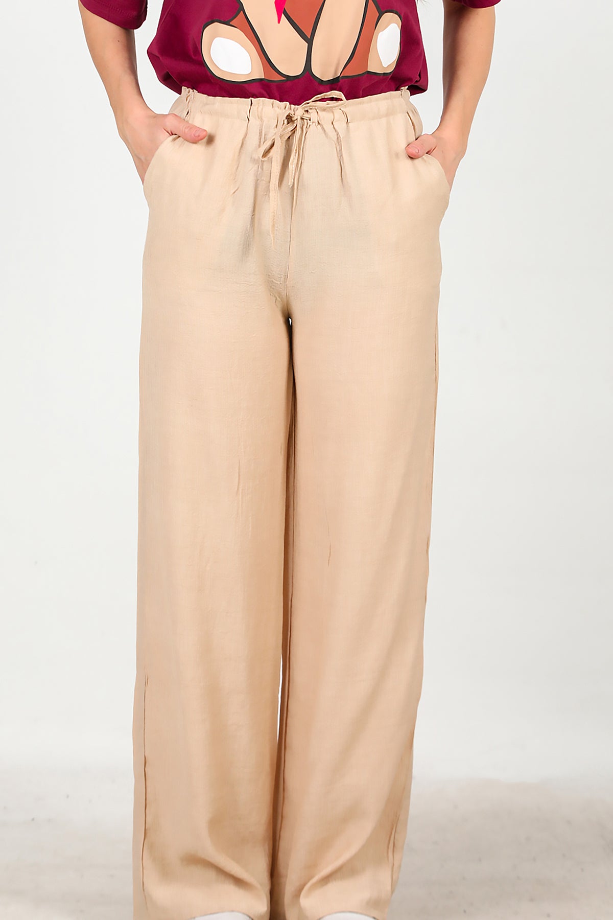 Kadın Beli Lastikli İpli Pantolon Vizon
