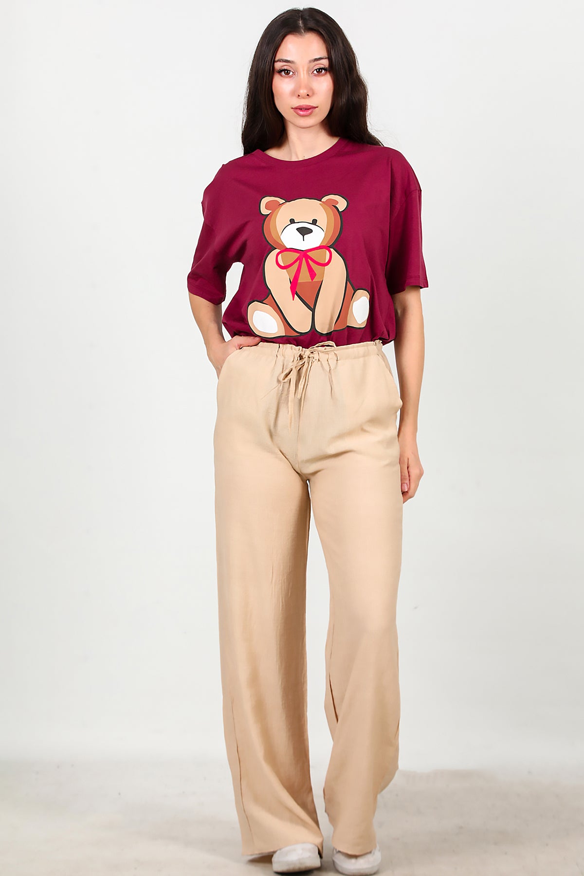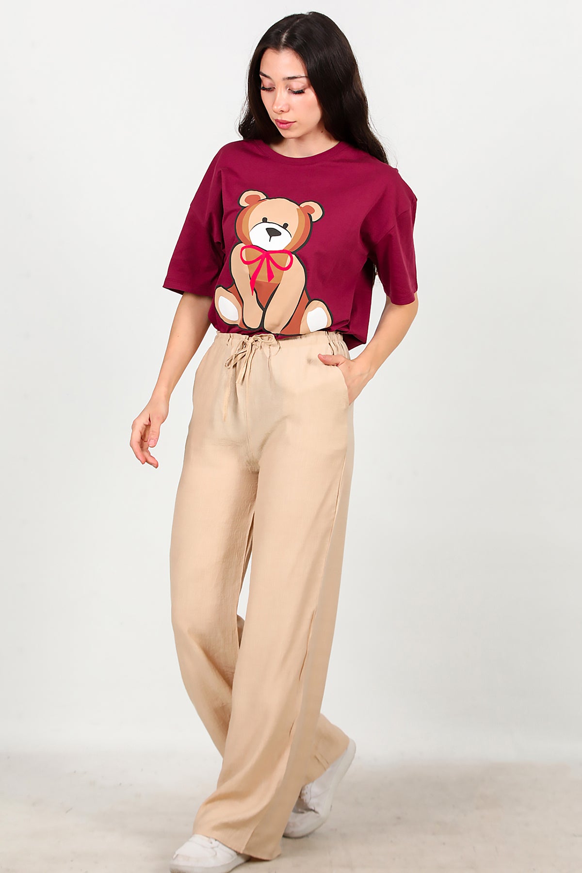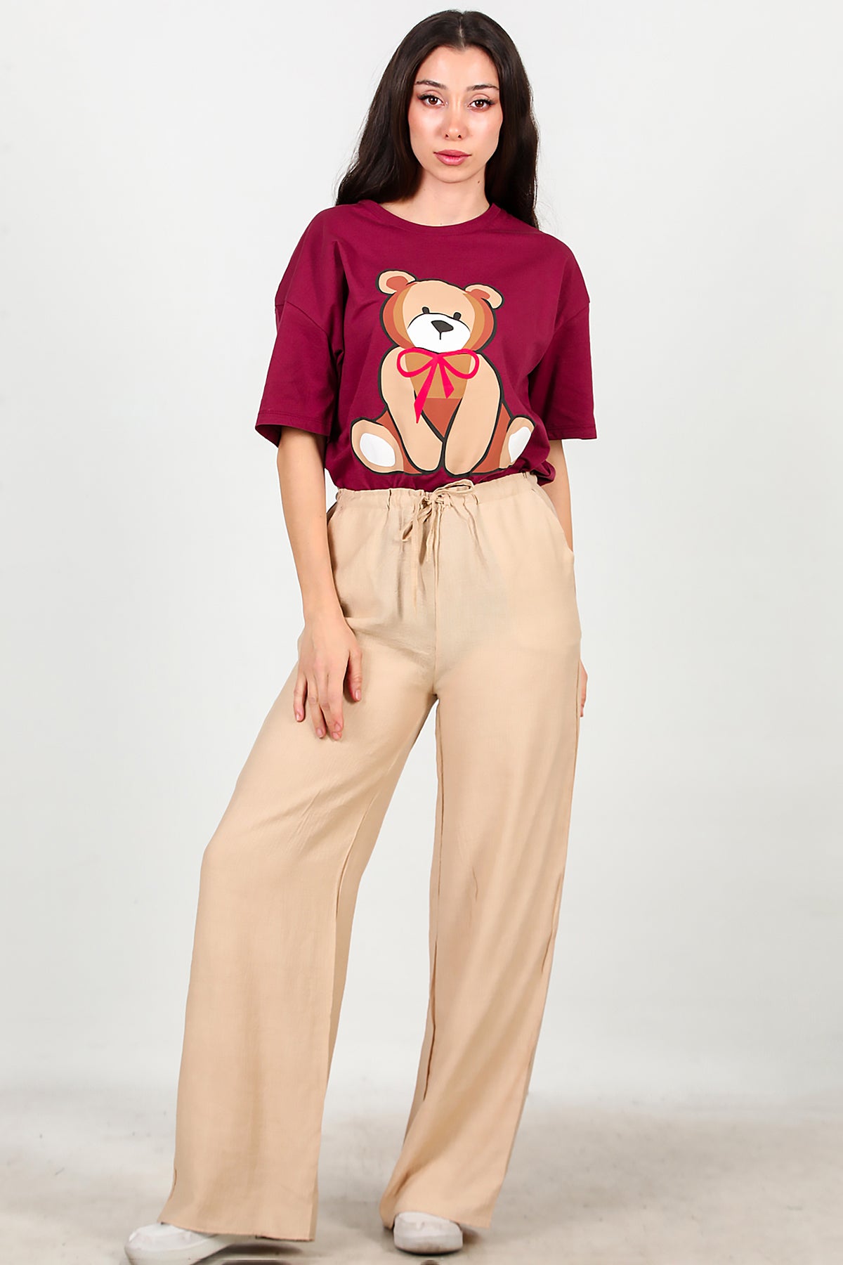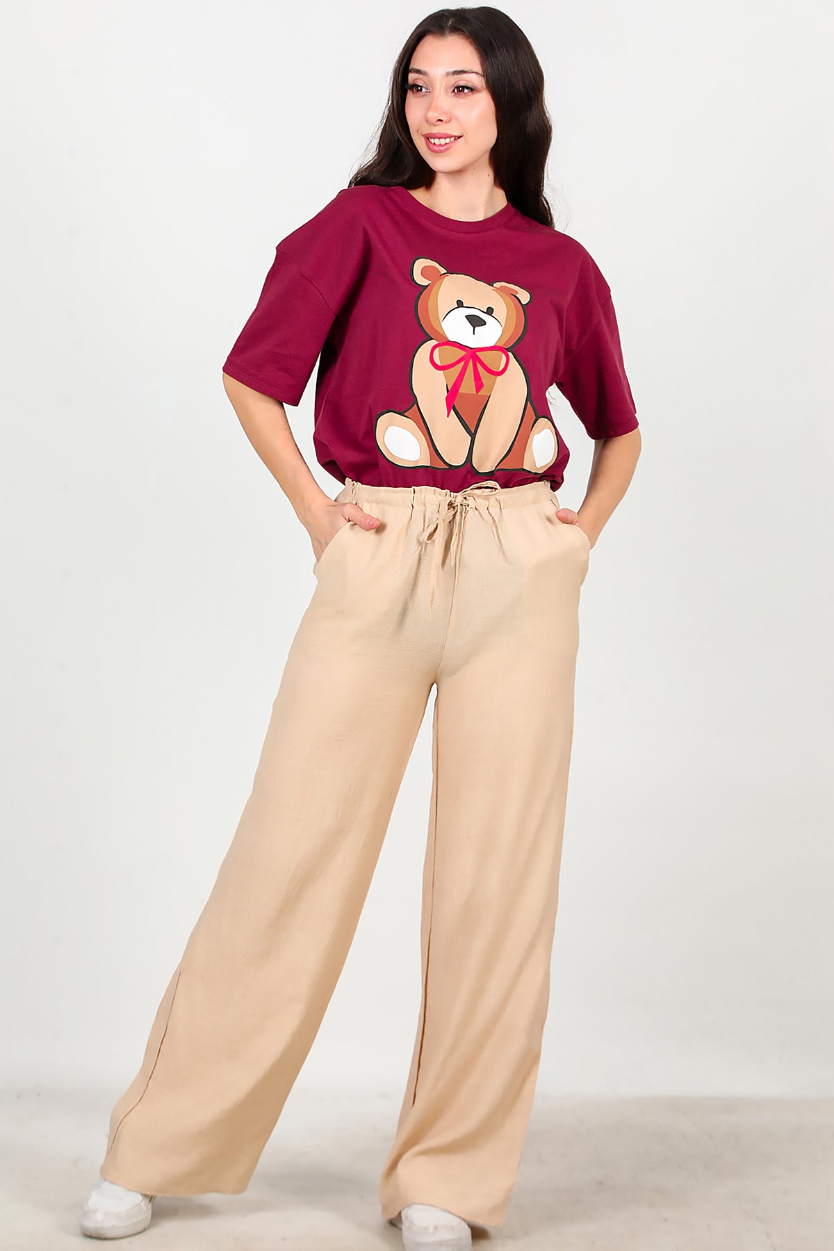 Kadın Beli Lastikli İpli Pantolon Vizon