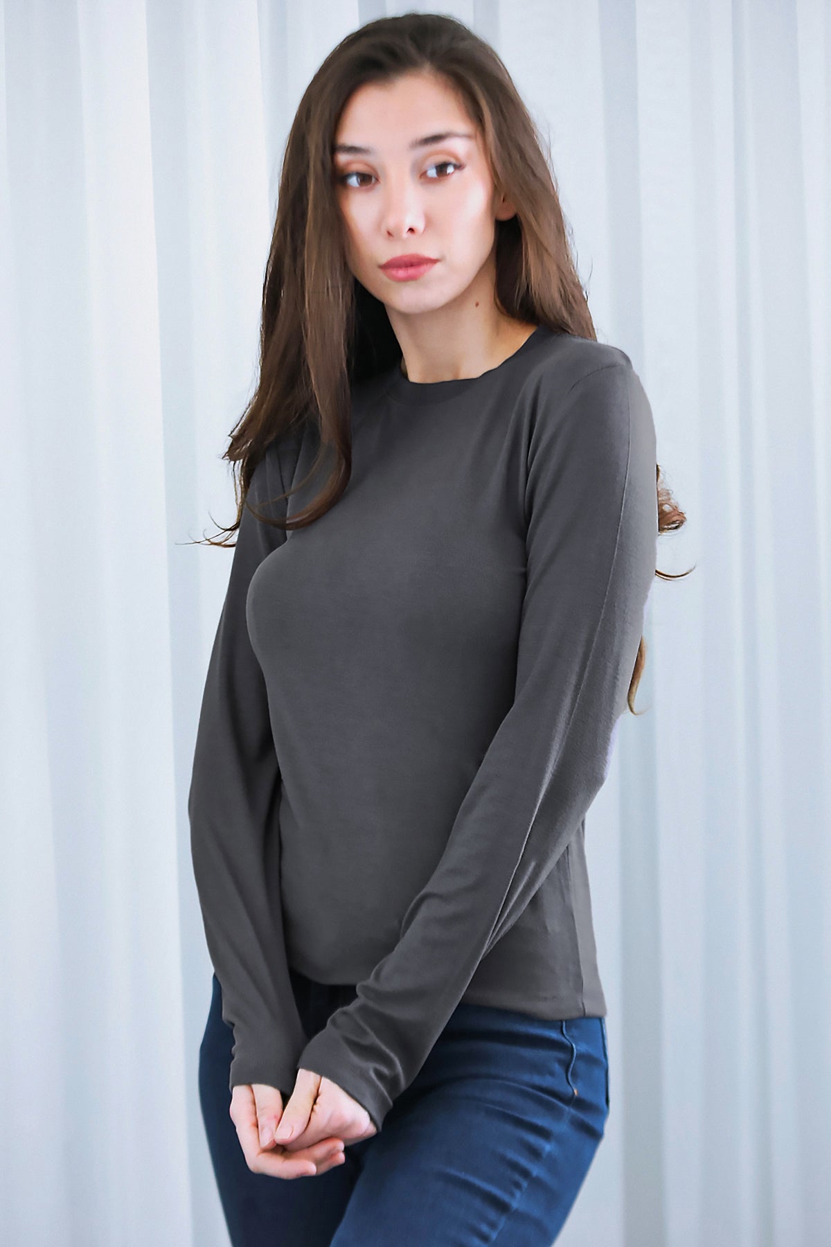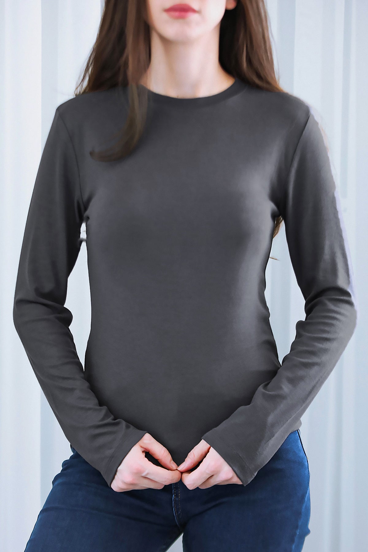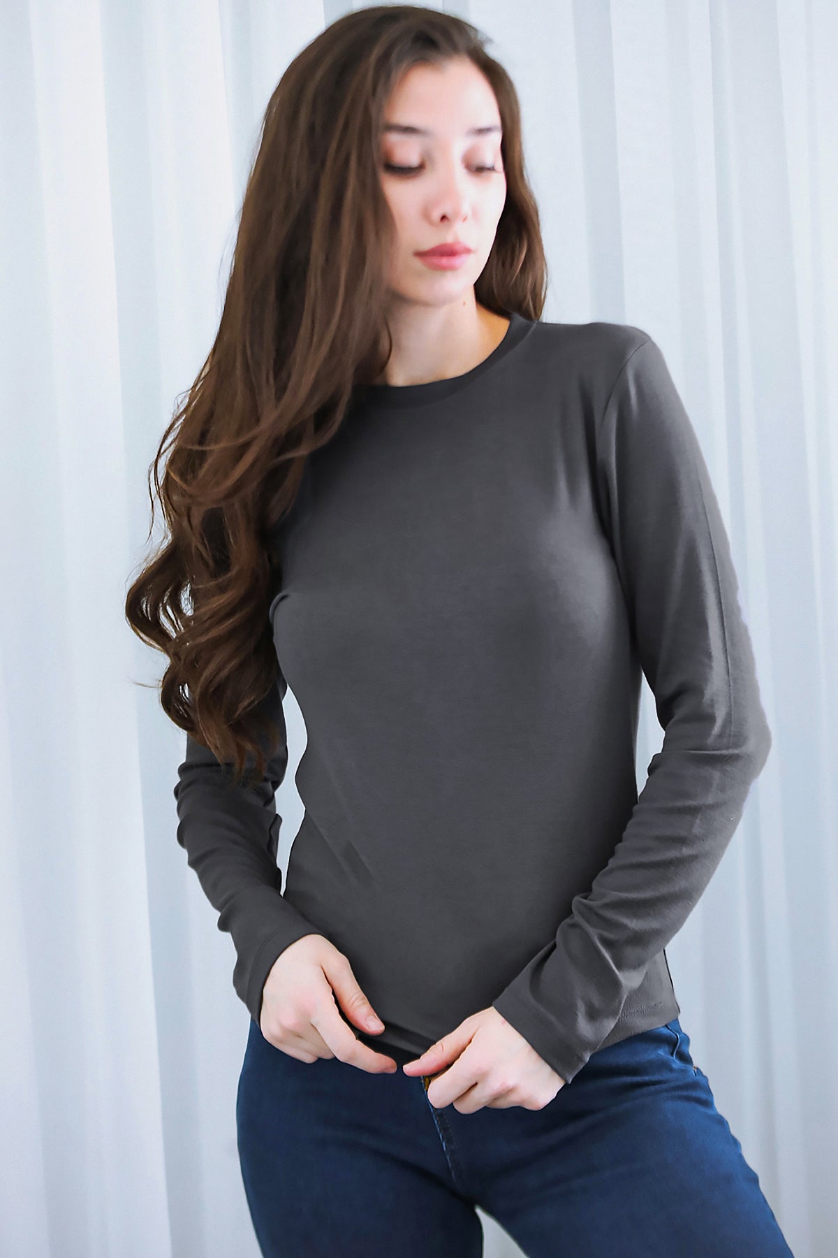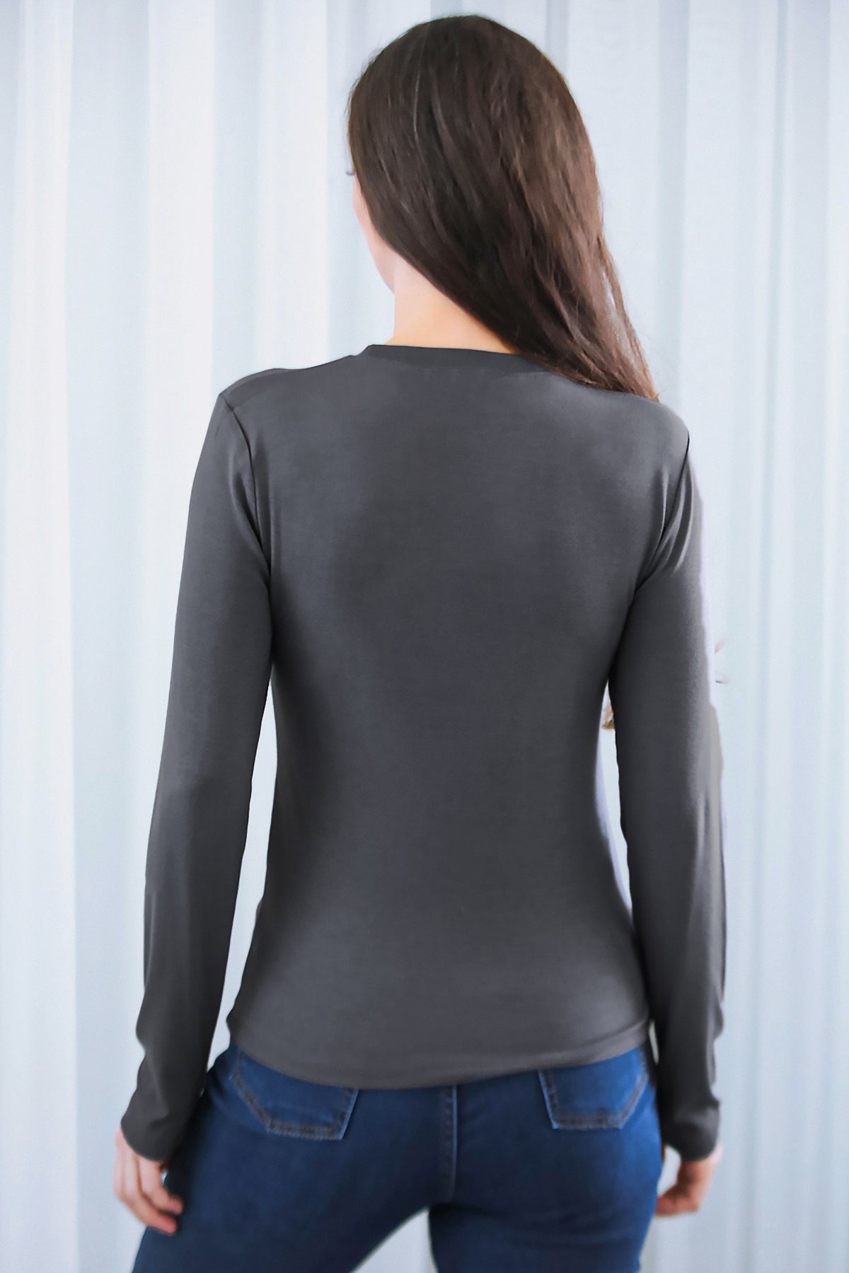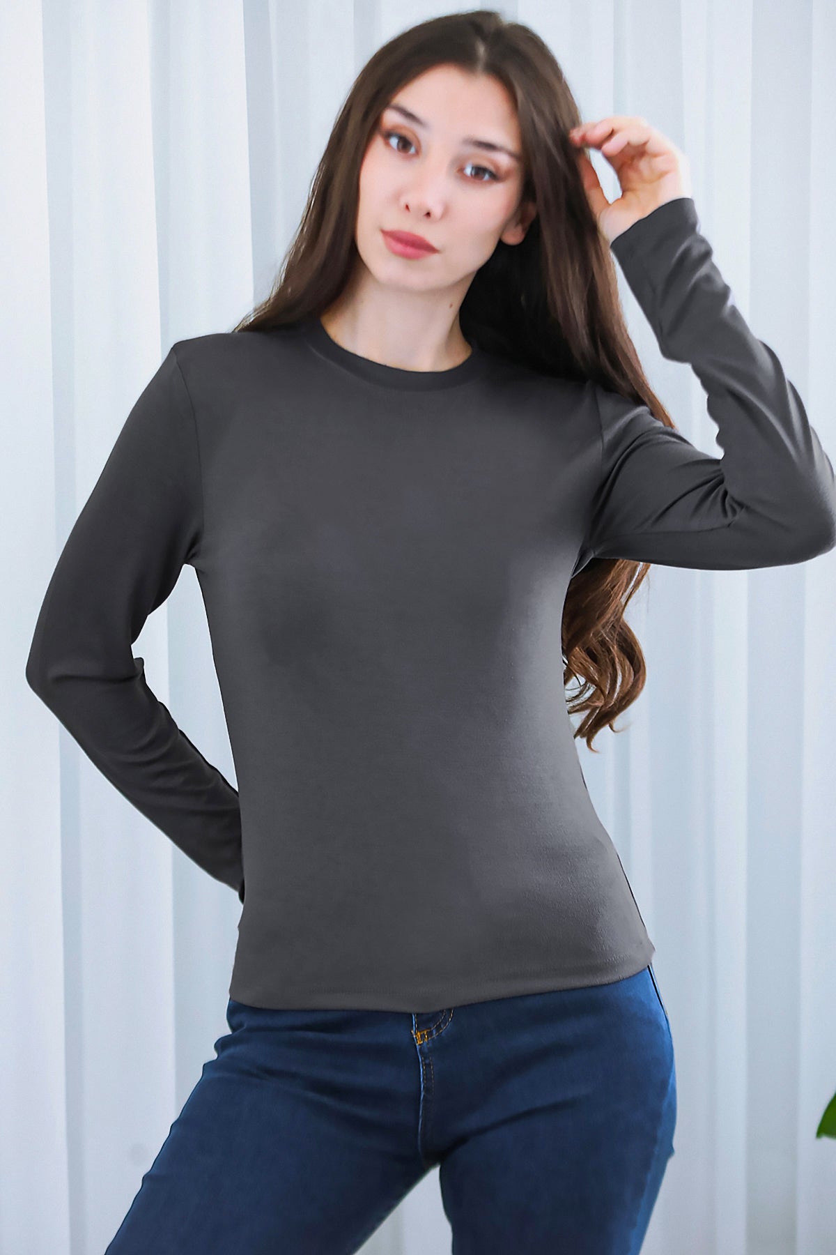 Kadın Bisiklet Yaka Bluz Füme