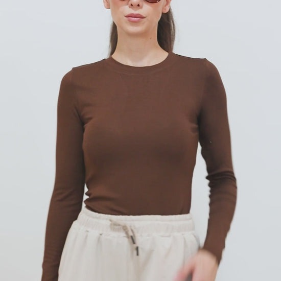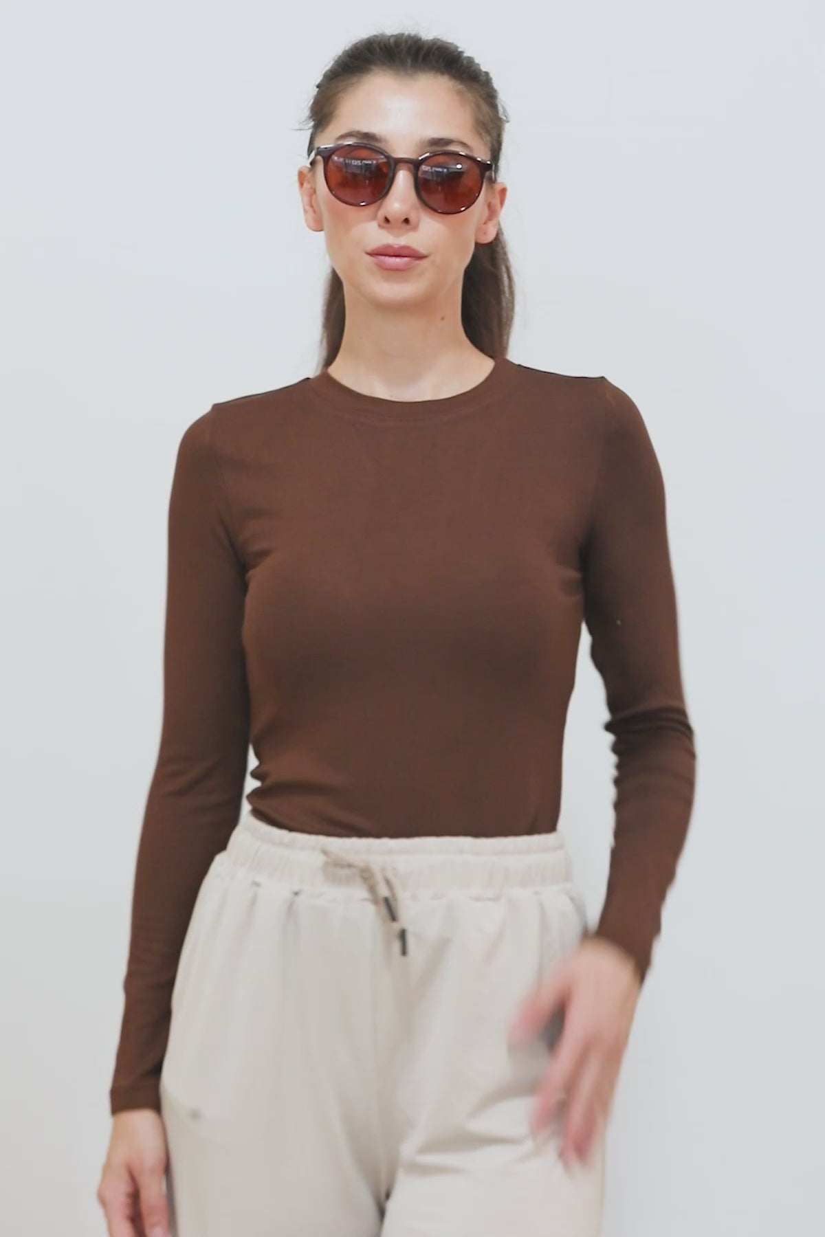 Kadın Bisiklet Yaka Bluz Kahverengi