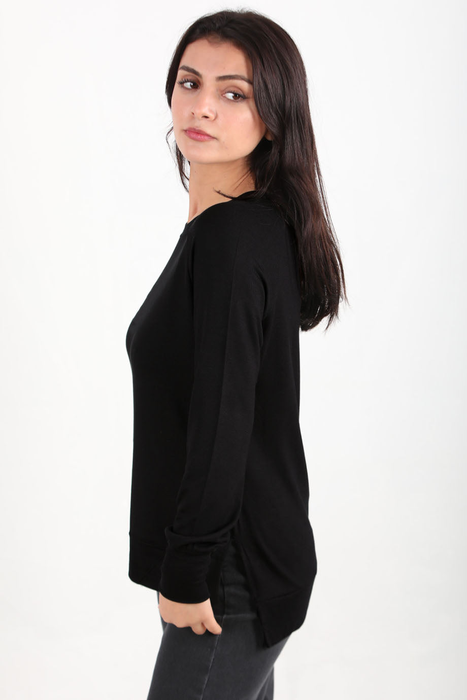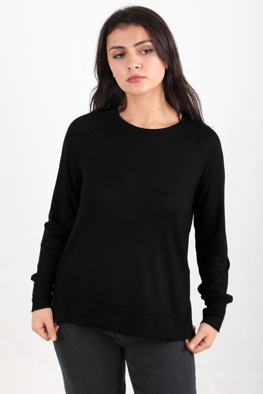 Berryknit Kadın Bisiklet Yaka Çilek Kumaş Bluz Siyah