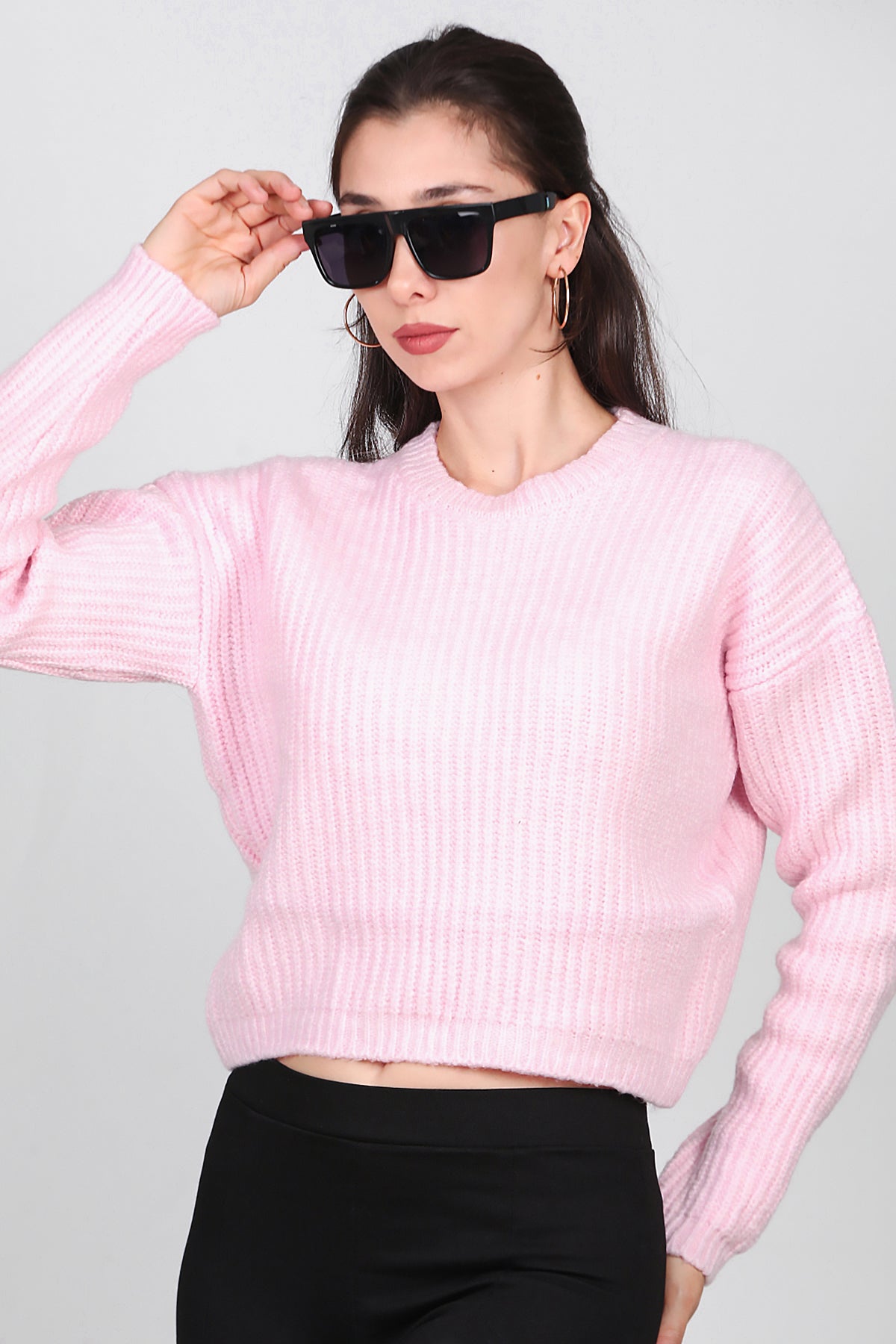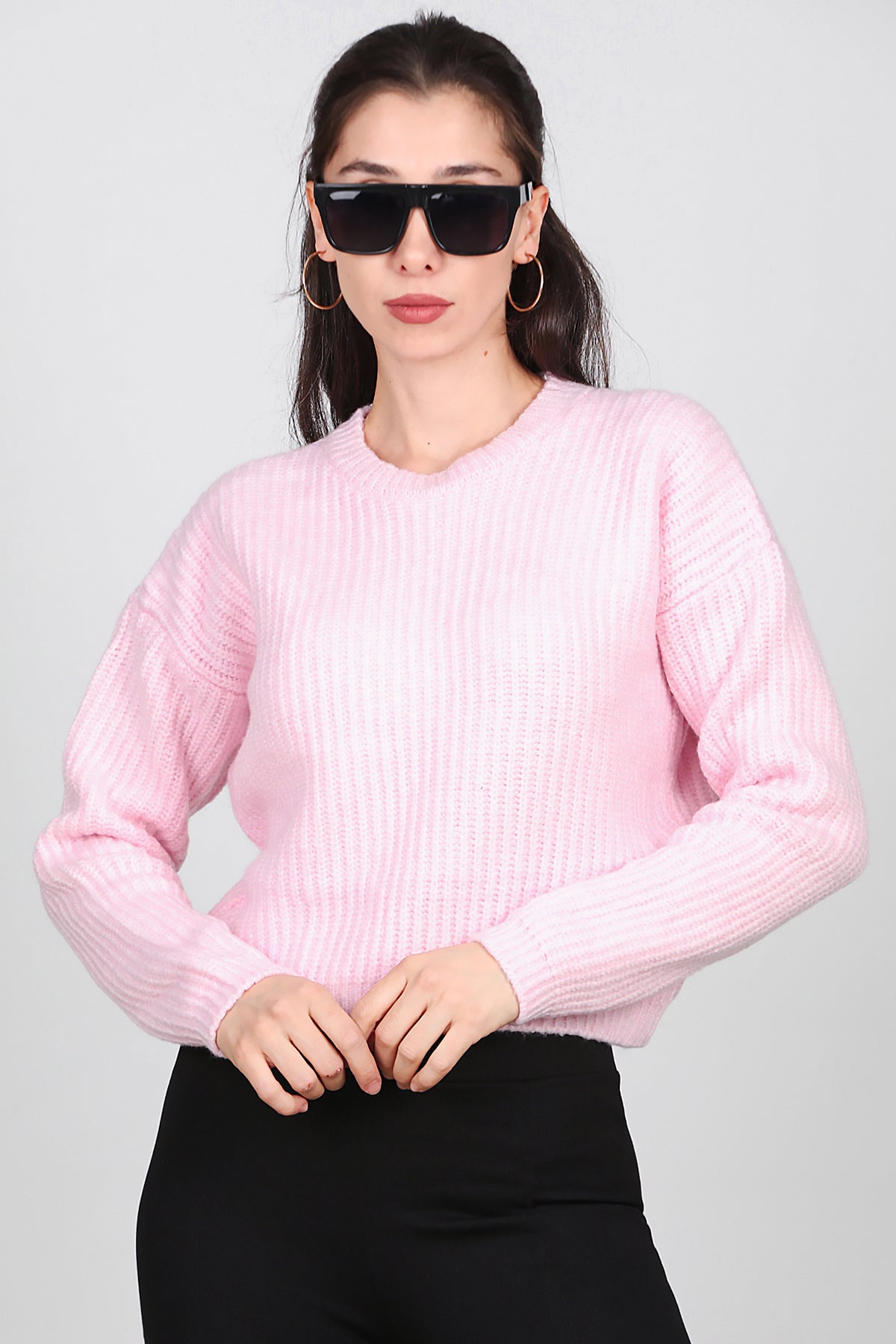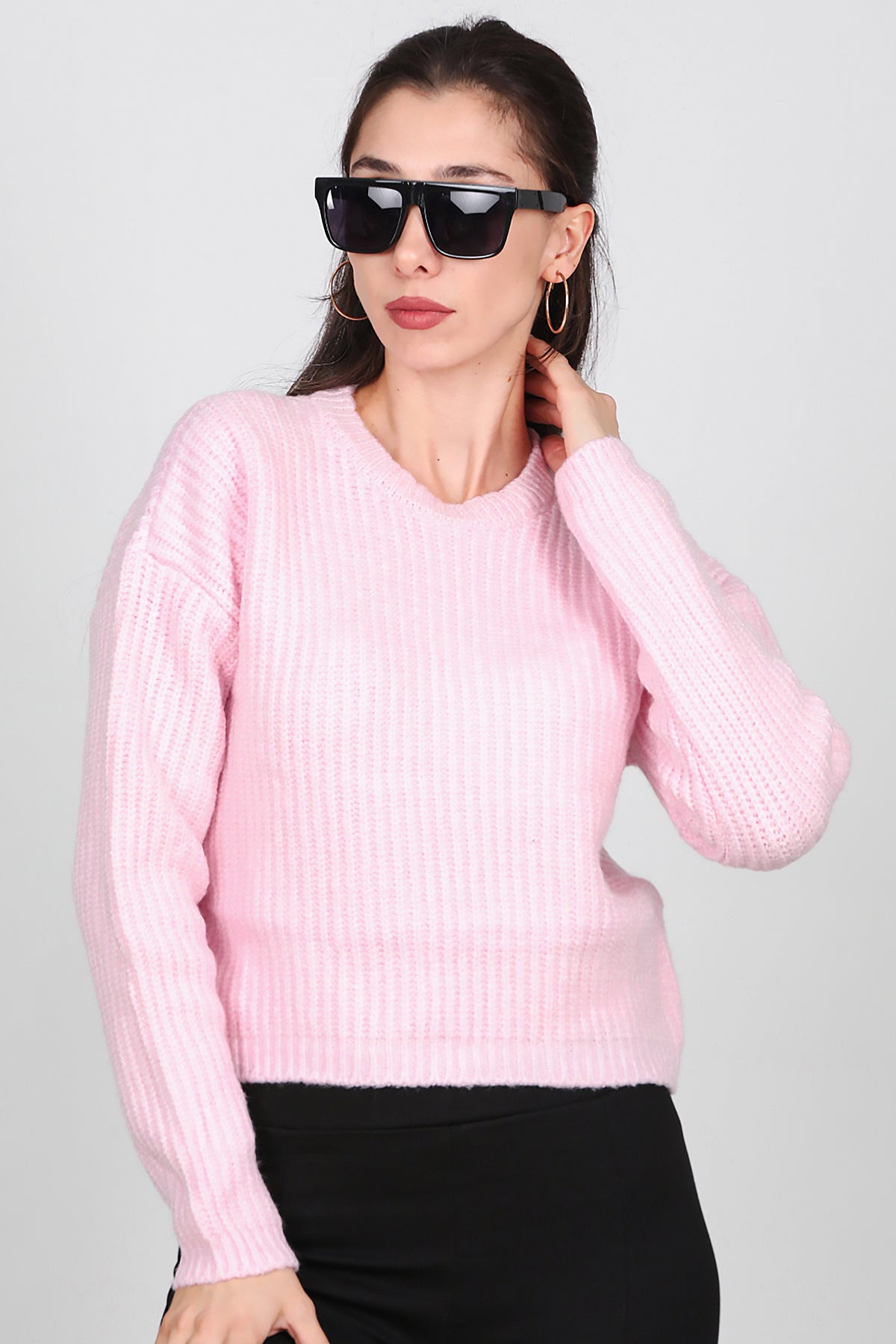 Kadın Bisiklet Yaka Kısa Salaş Kazak Pembe