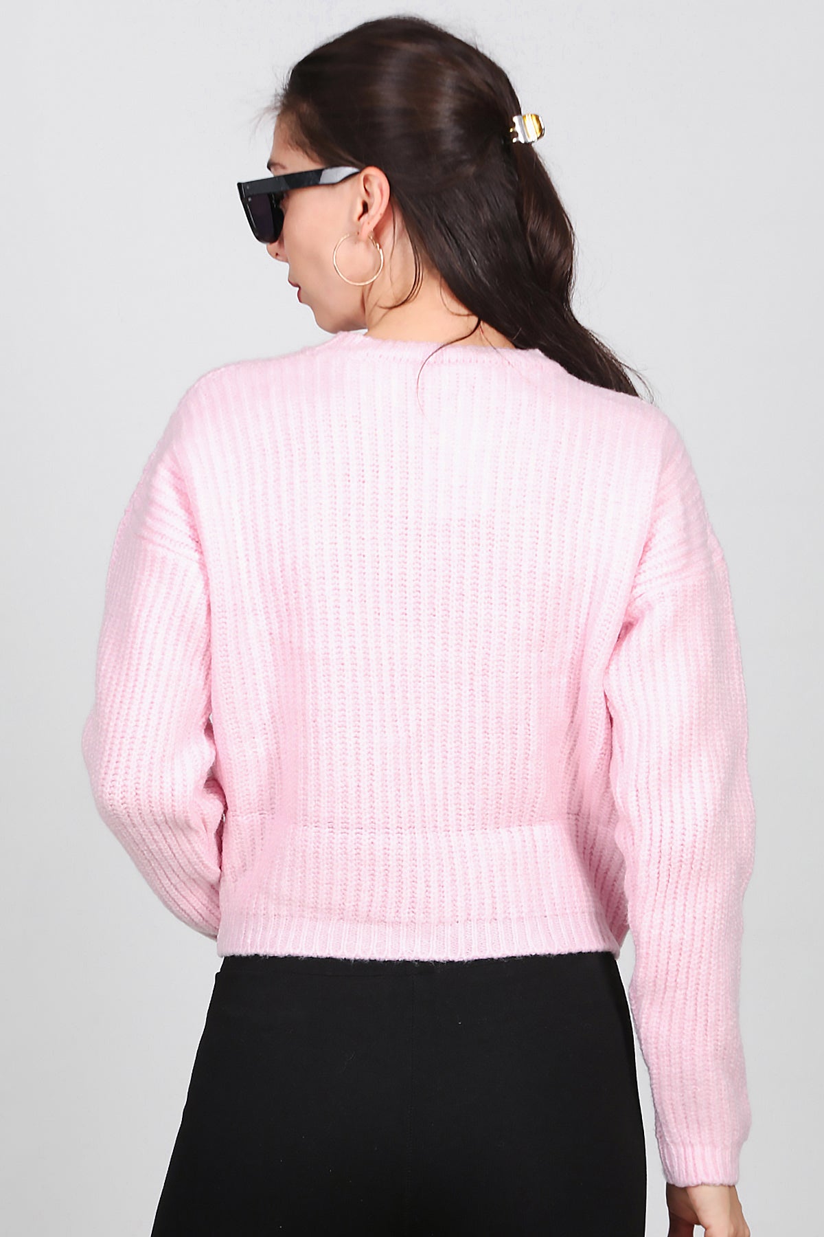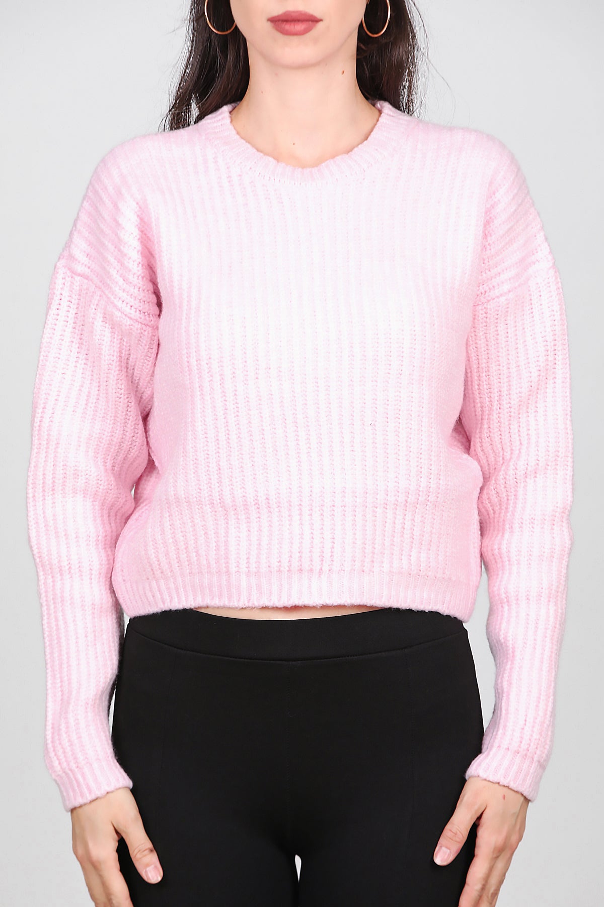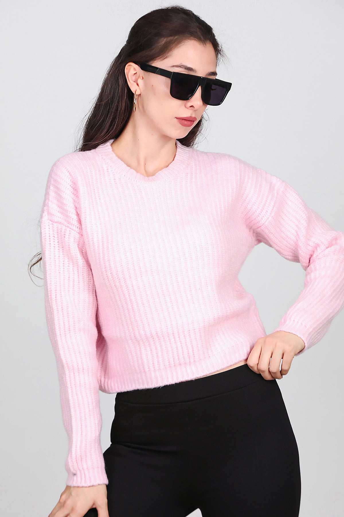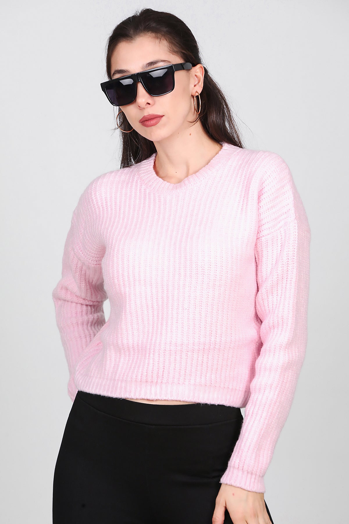 Kadın Bisiklet Yaka Kısa Salaş Kazak Pembe