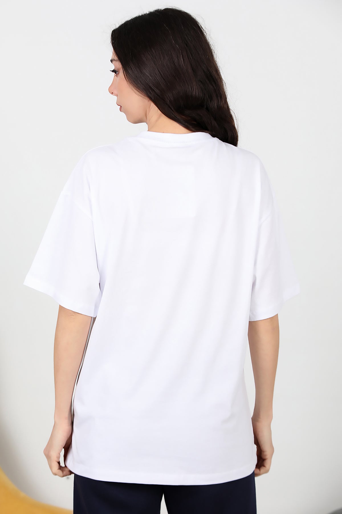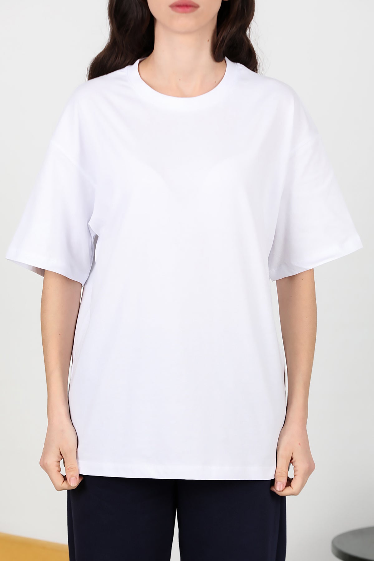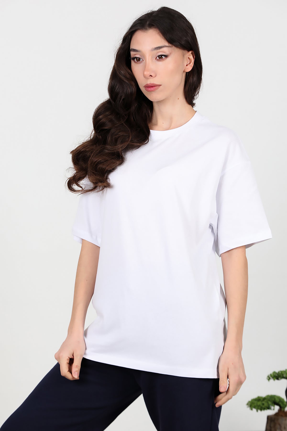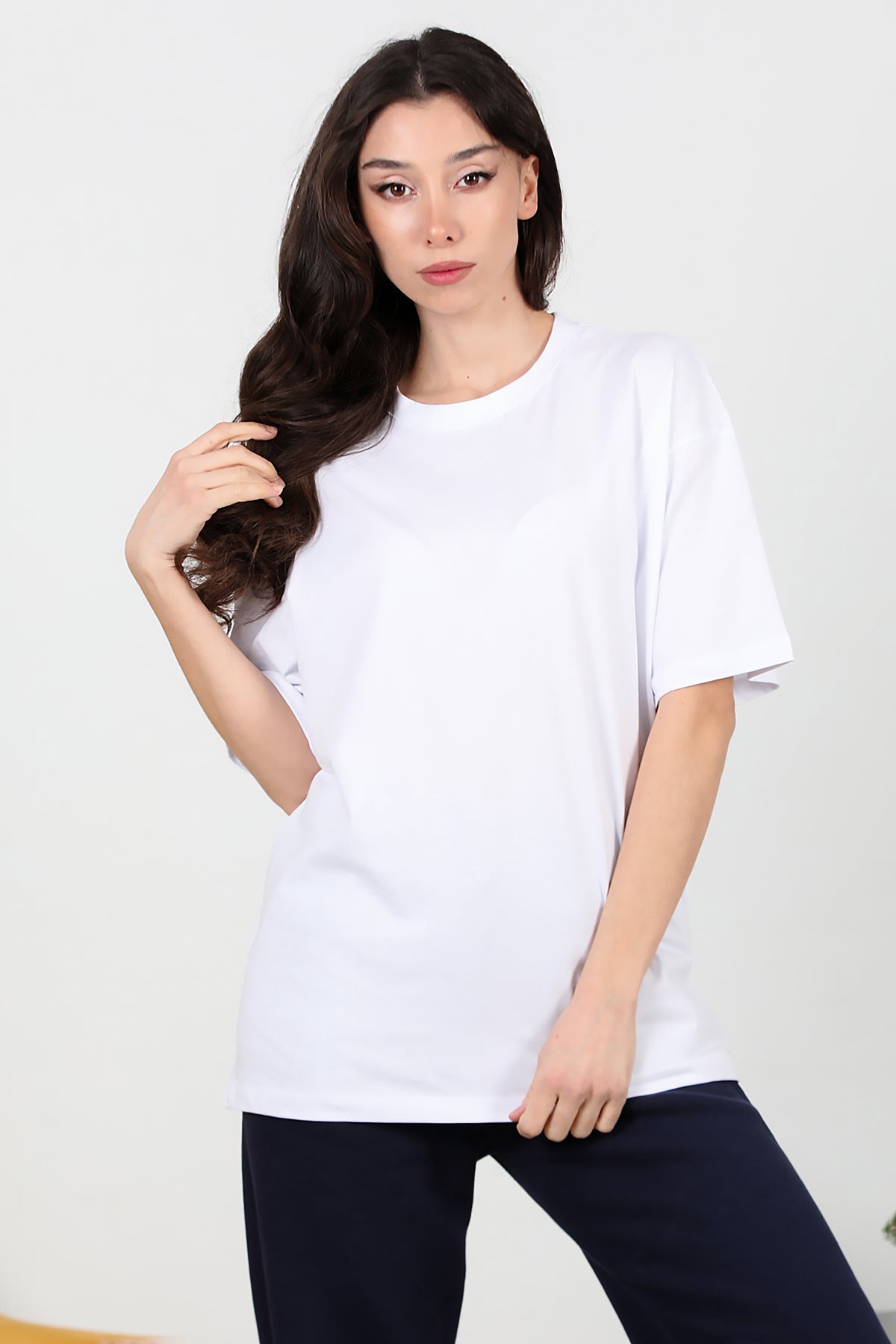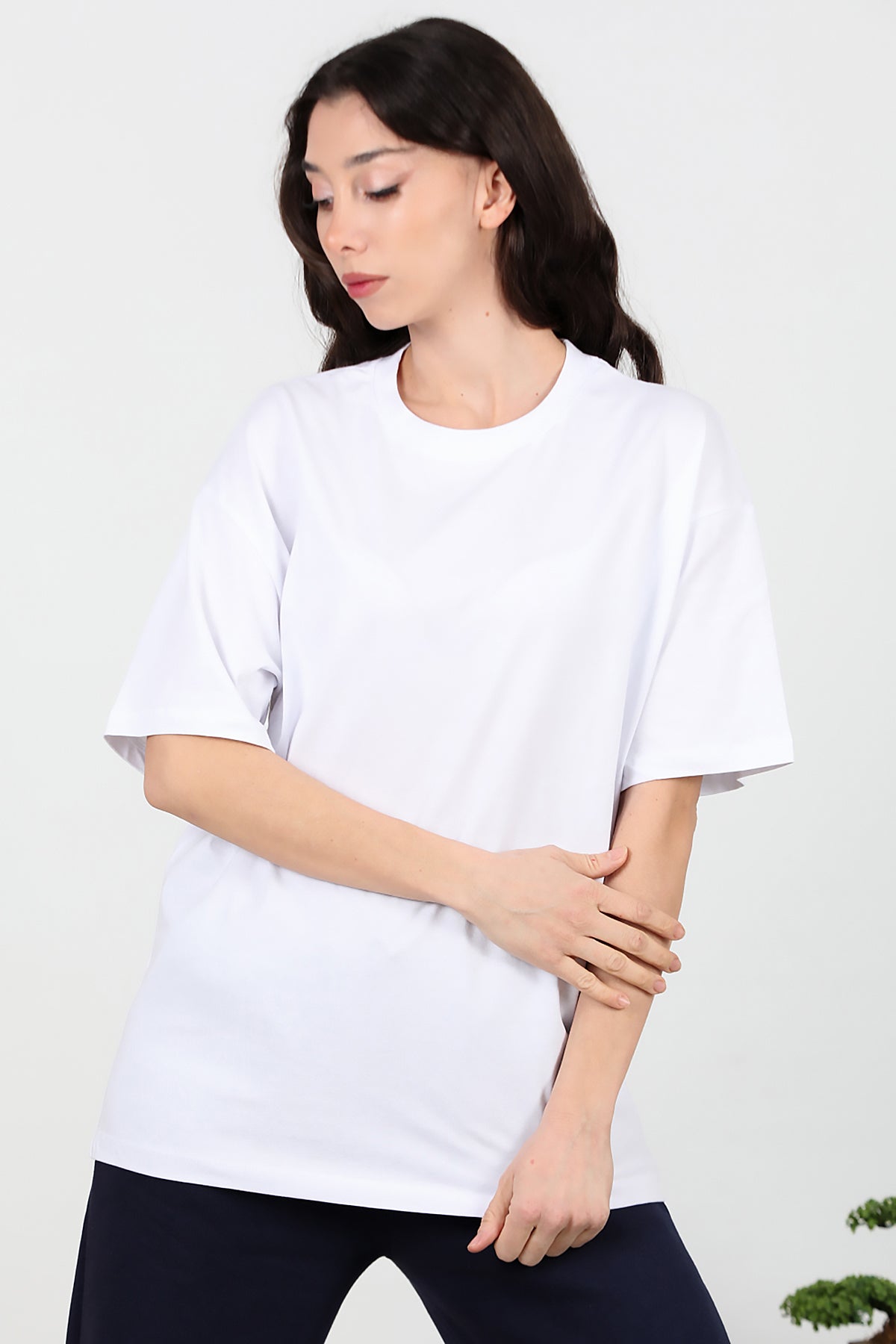 Kadın Bisiklet Yaka Oversize İki İplik Tshirt Ekru