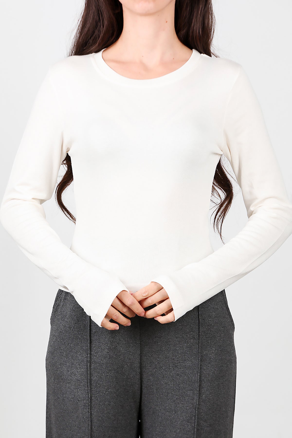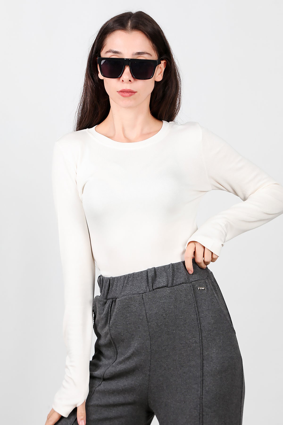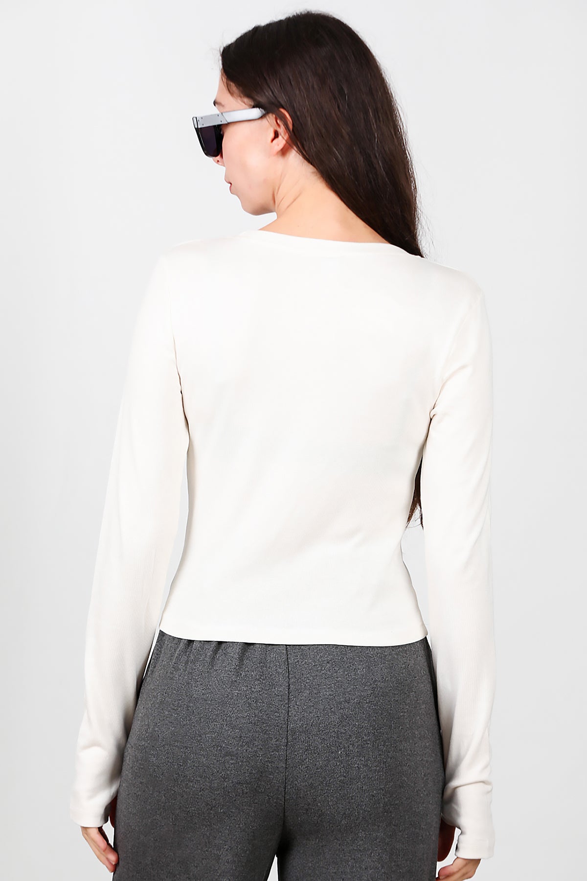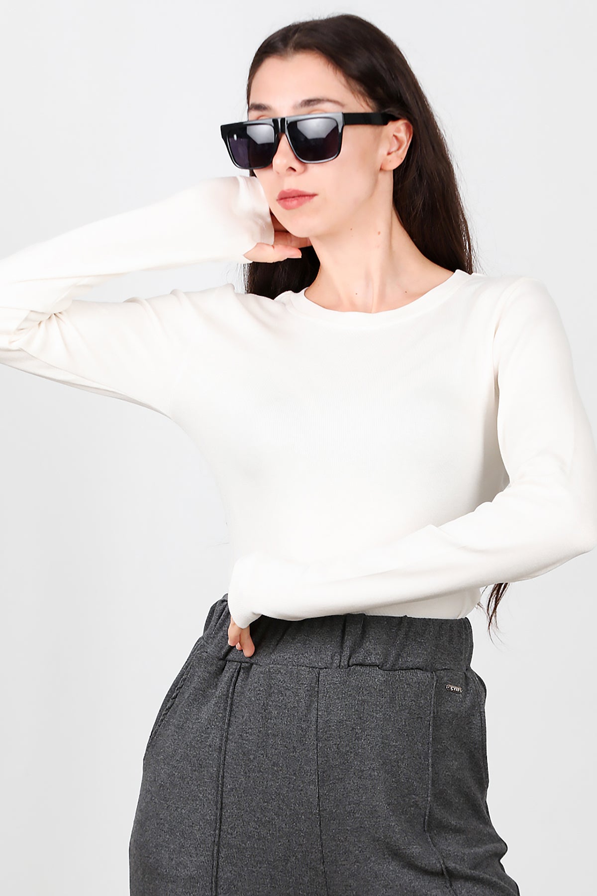 Kadın Bisiklet Yaka Parmak Geçirmeli Bluz Ekru