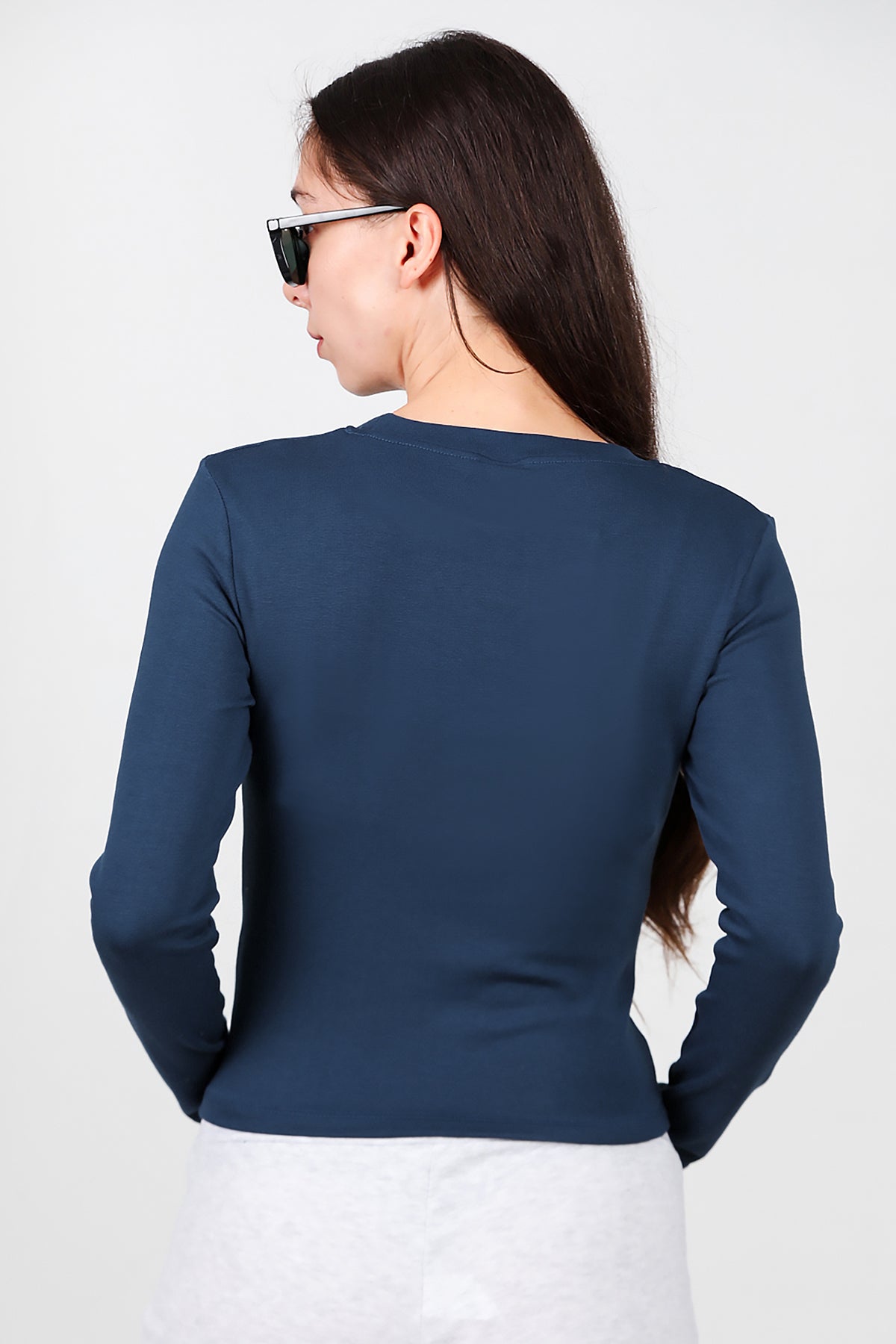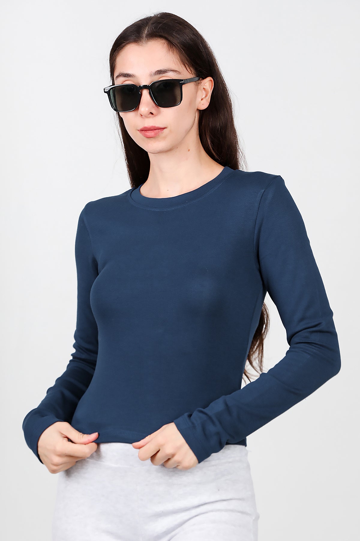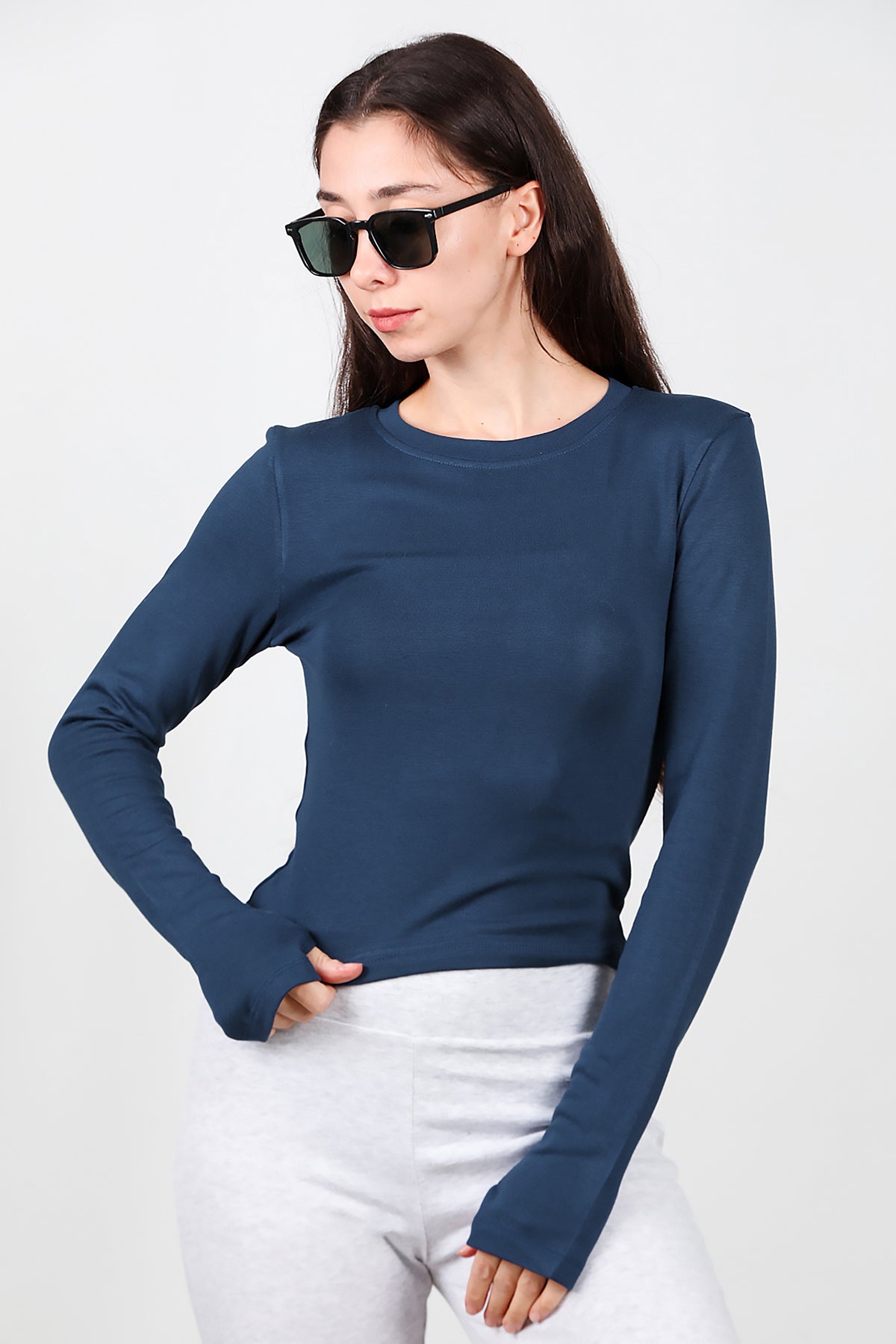 Kadın Bisiklet Yaka Parmak Geçirmeli Bluz Lacivert