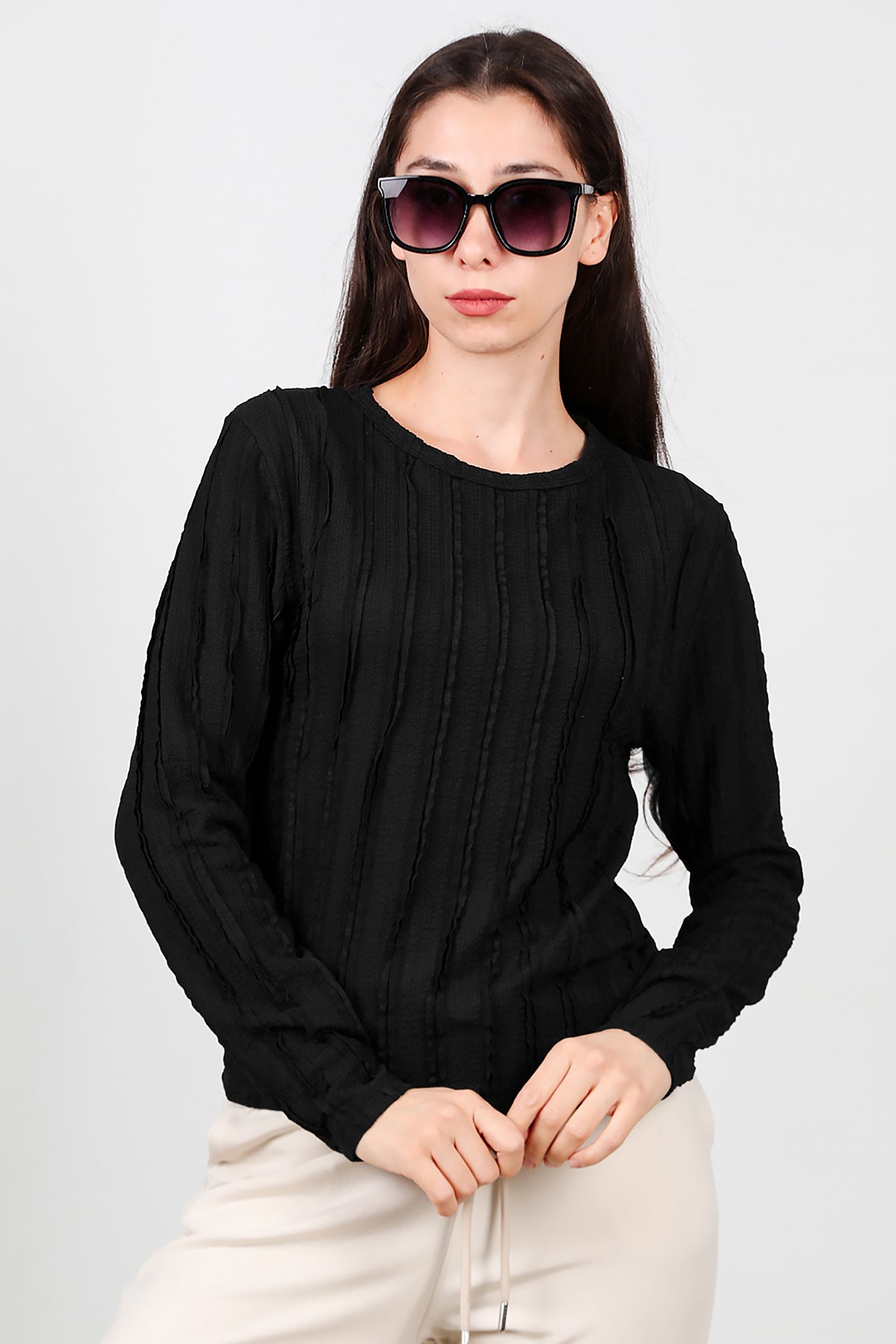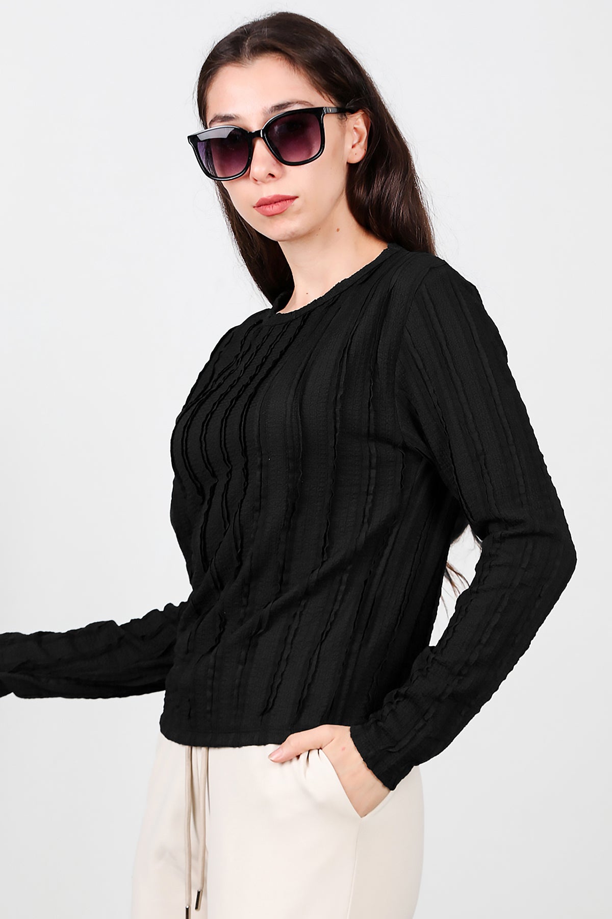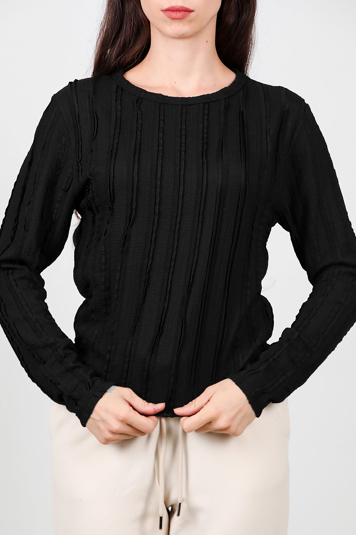 Kadın Bisiklet Yaka Püskül Detay Bluz Siyah