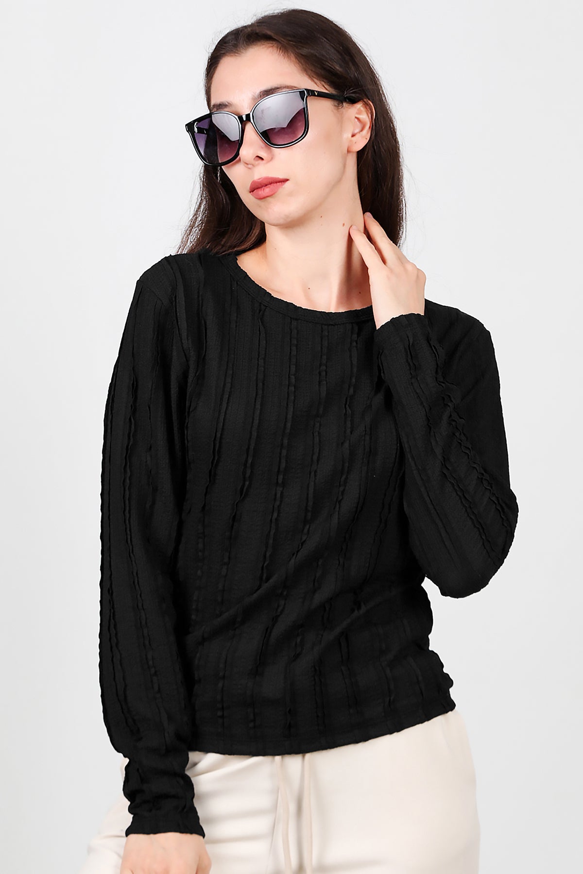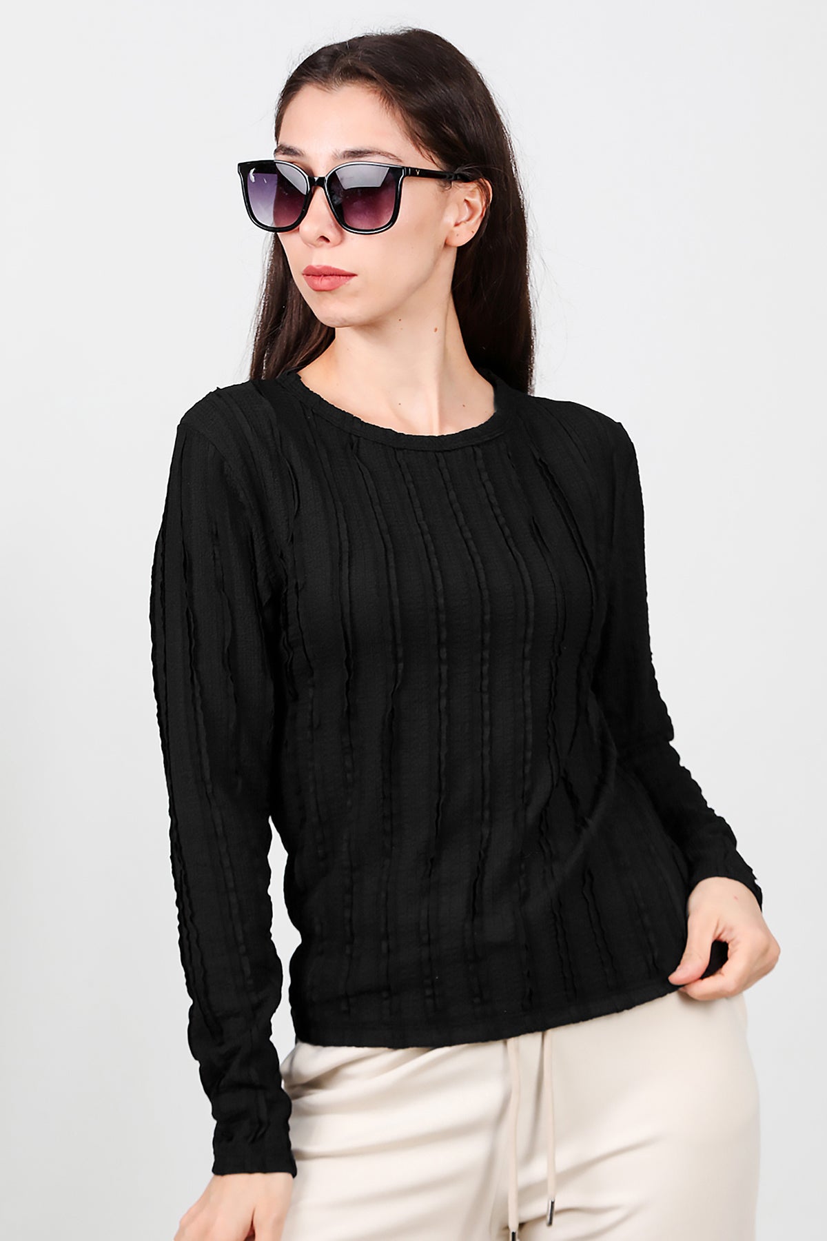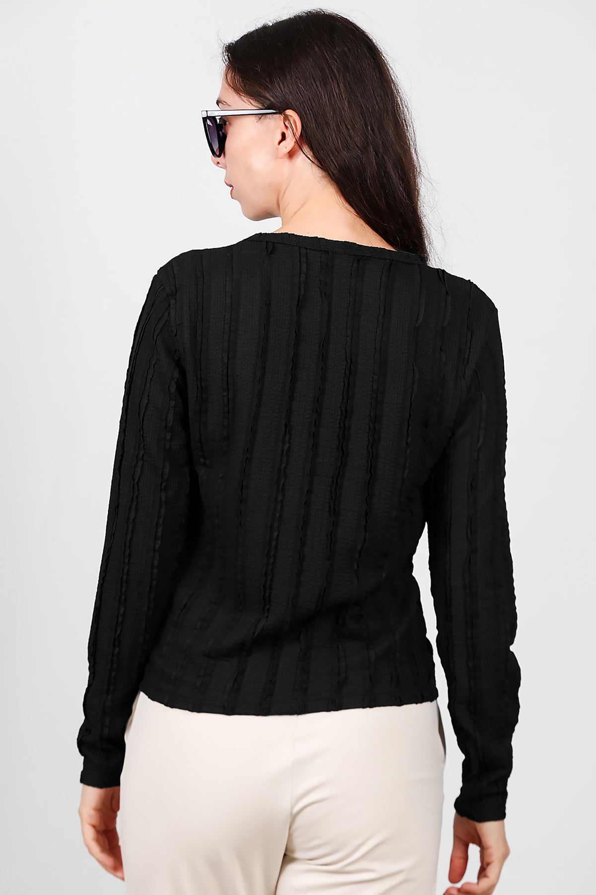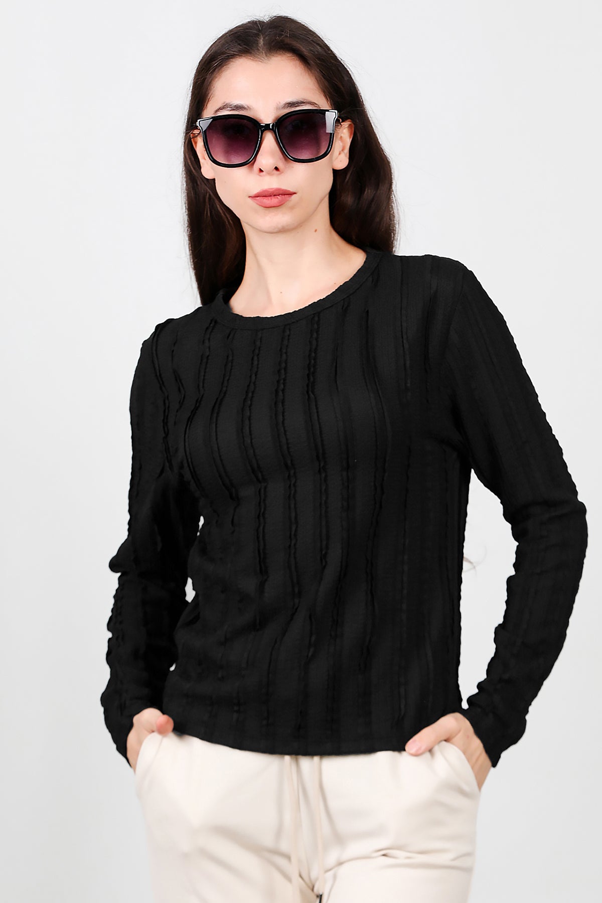 Kadın Bisiklet Yaka Püskül Detay Bluz Siyah