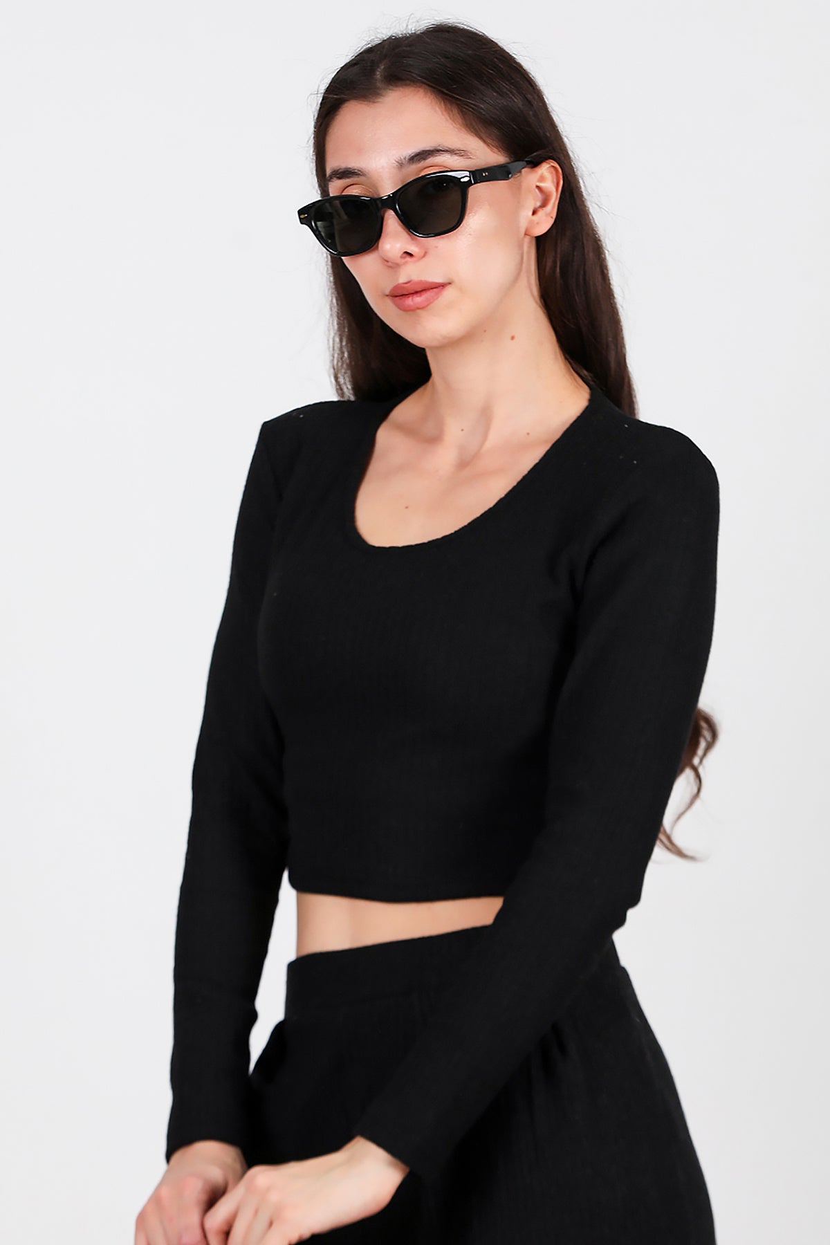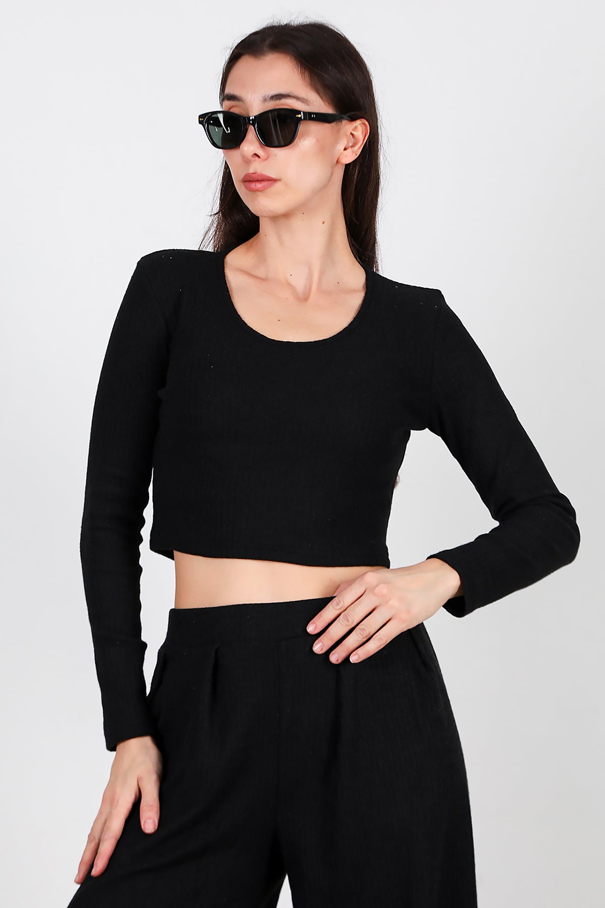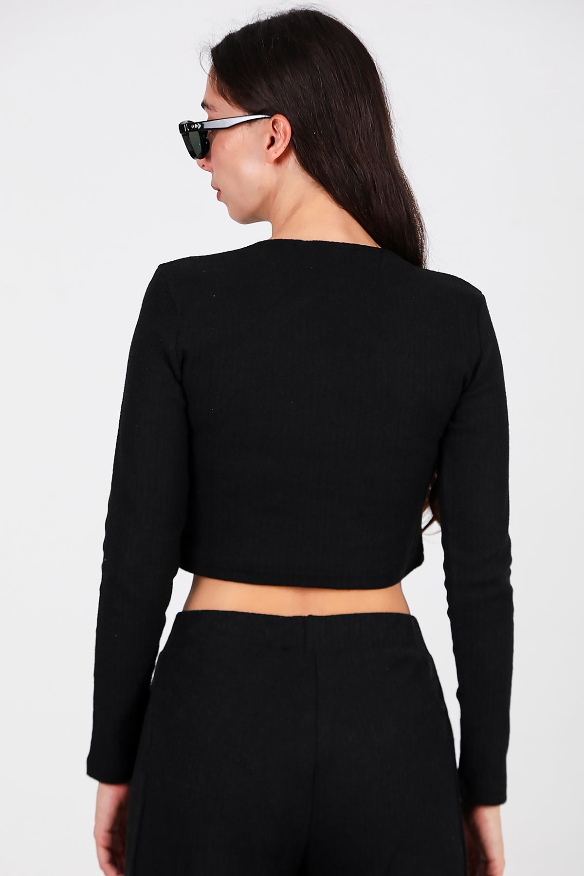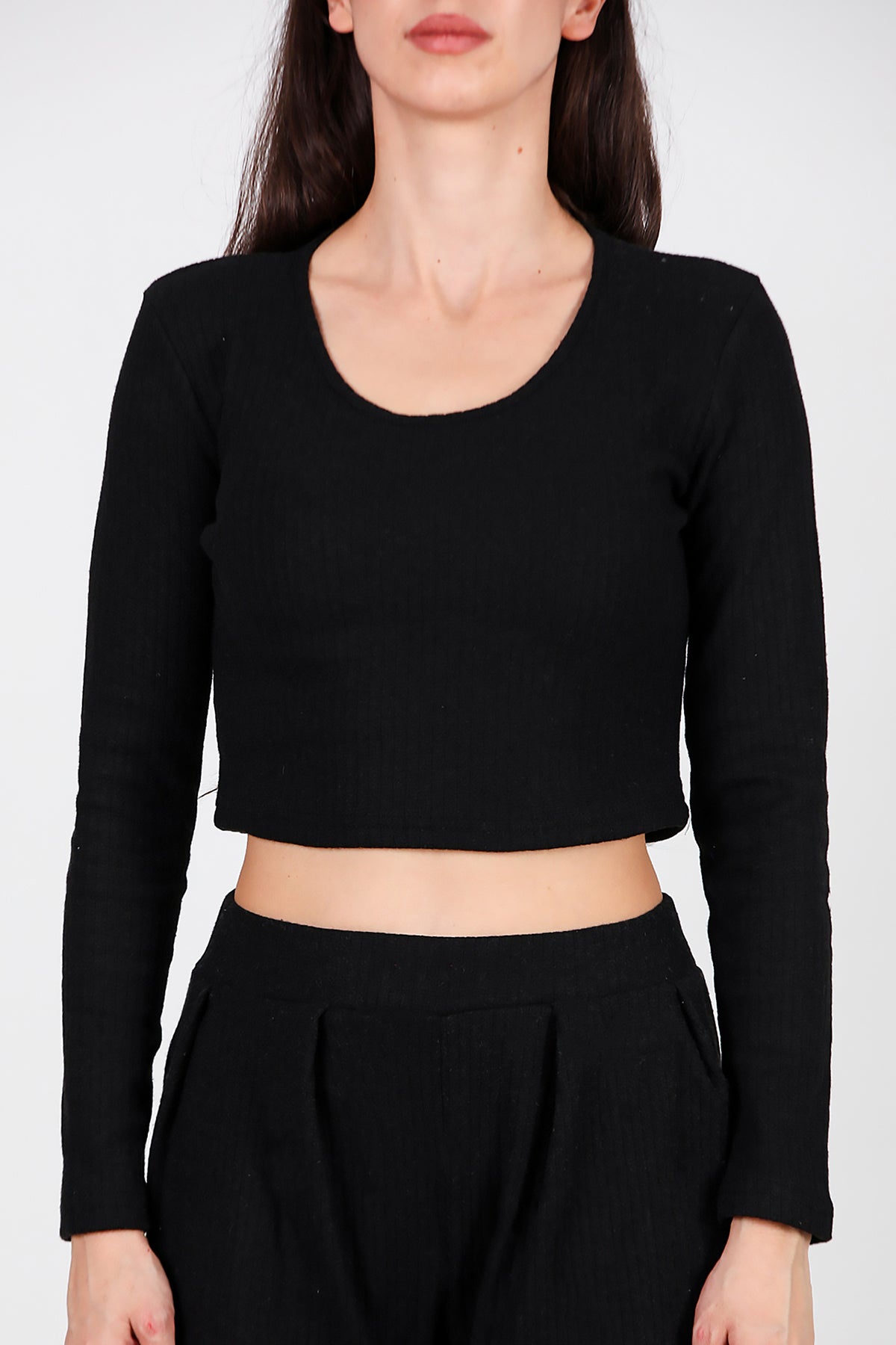 Kadın Bisiklet Yaka Selanik Bluz Siyah