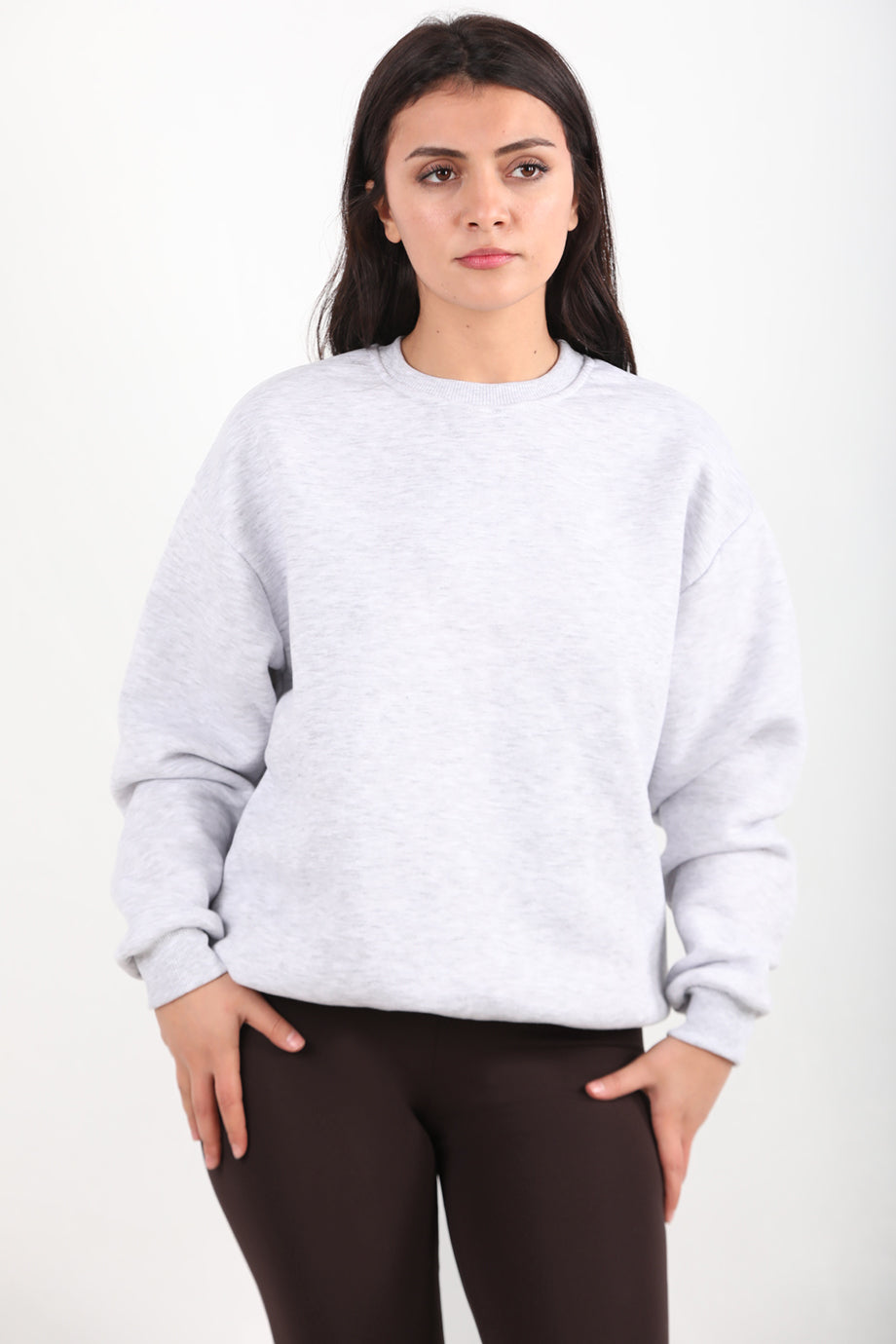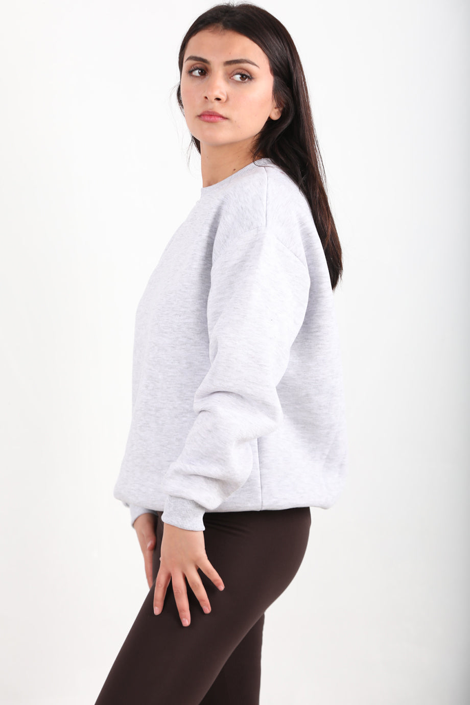 Softlyra Kadın Bisiklet Yaka Sweat Açık Gri