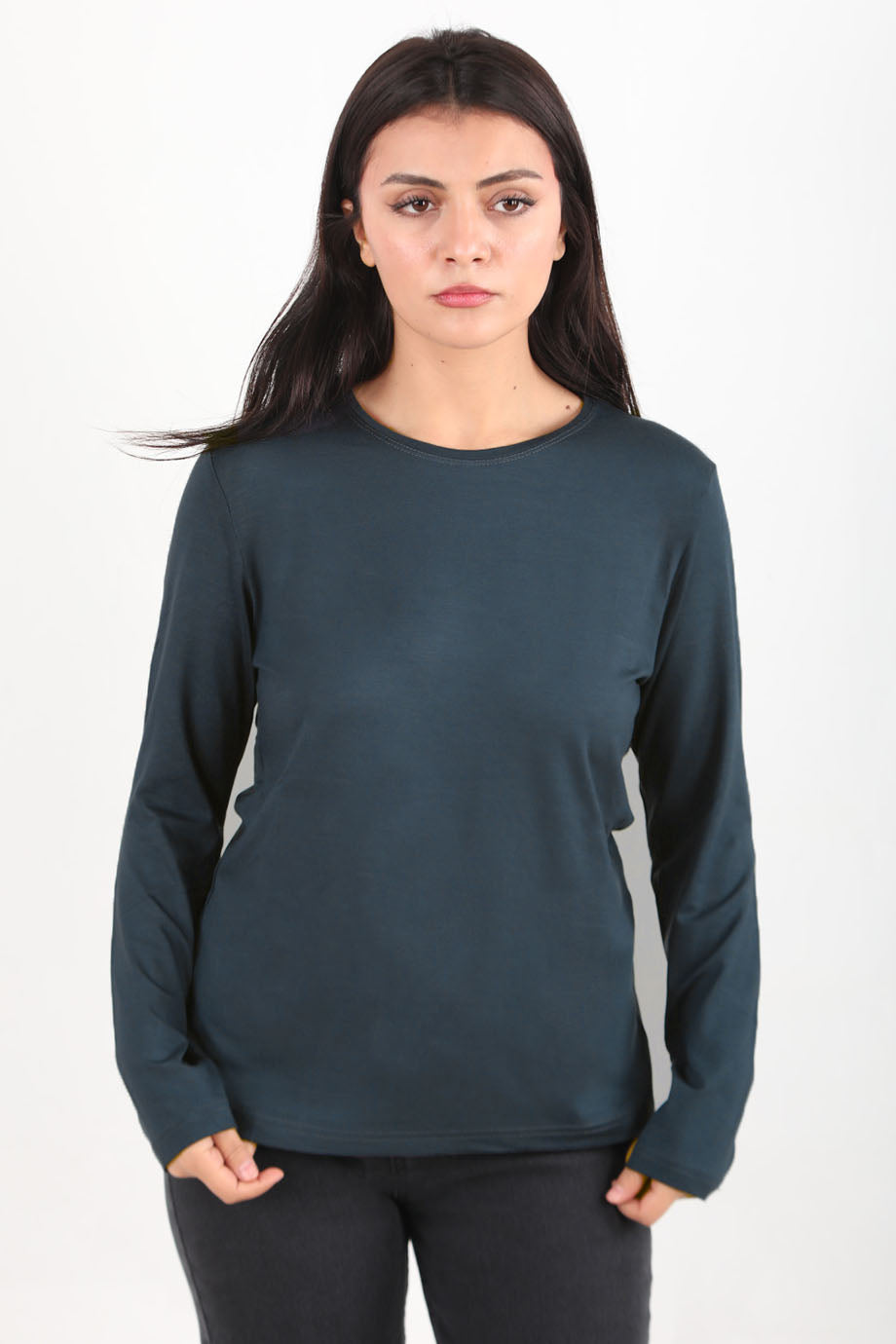 Softwear Kadın Bisiklet Yaka Uzun Kol Penye Bluz Füme