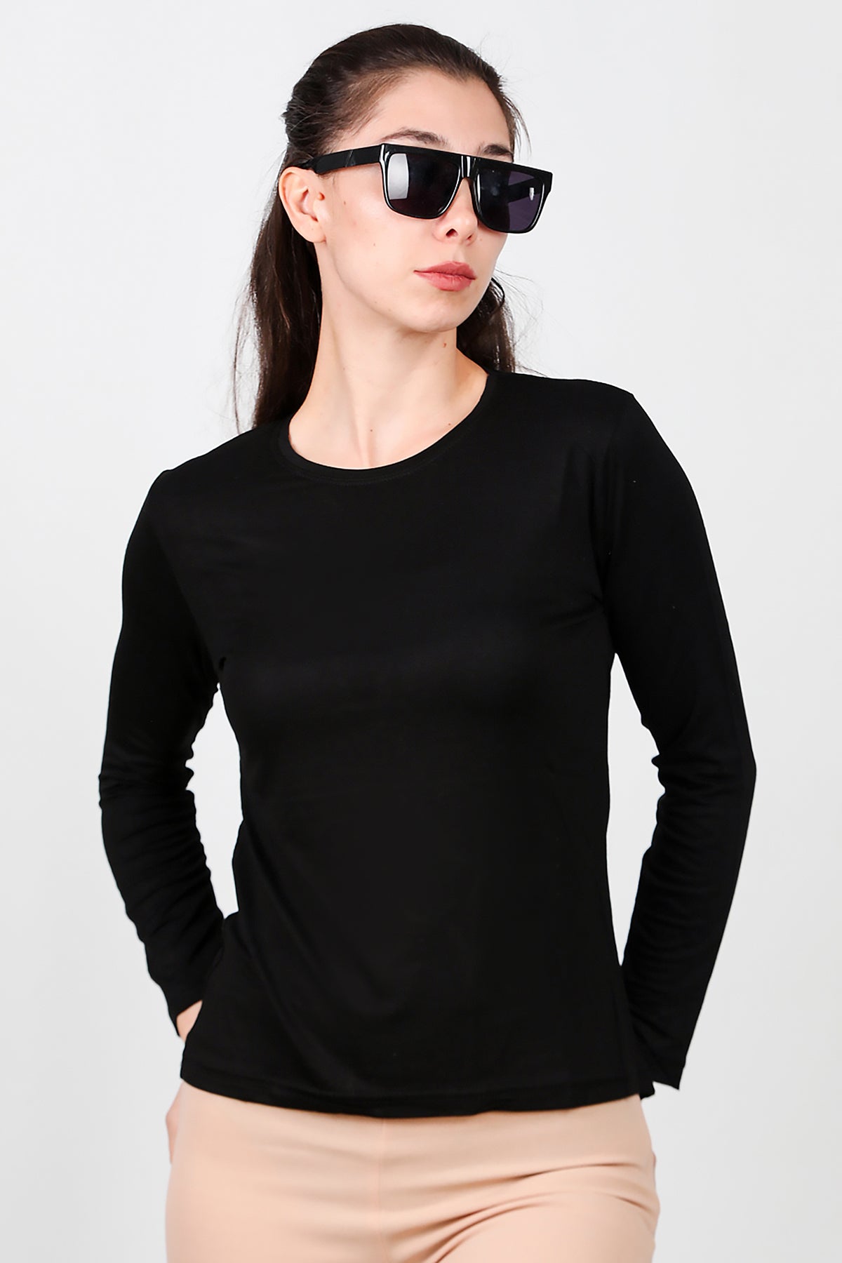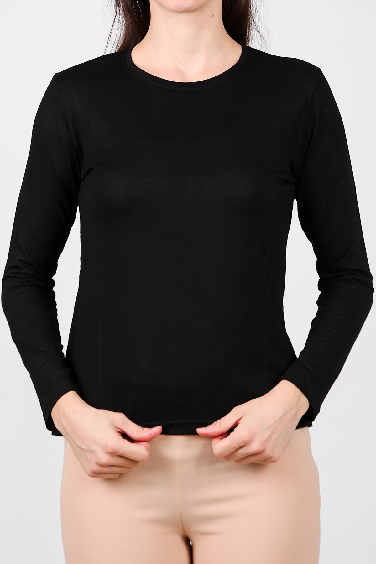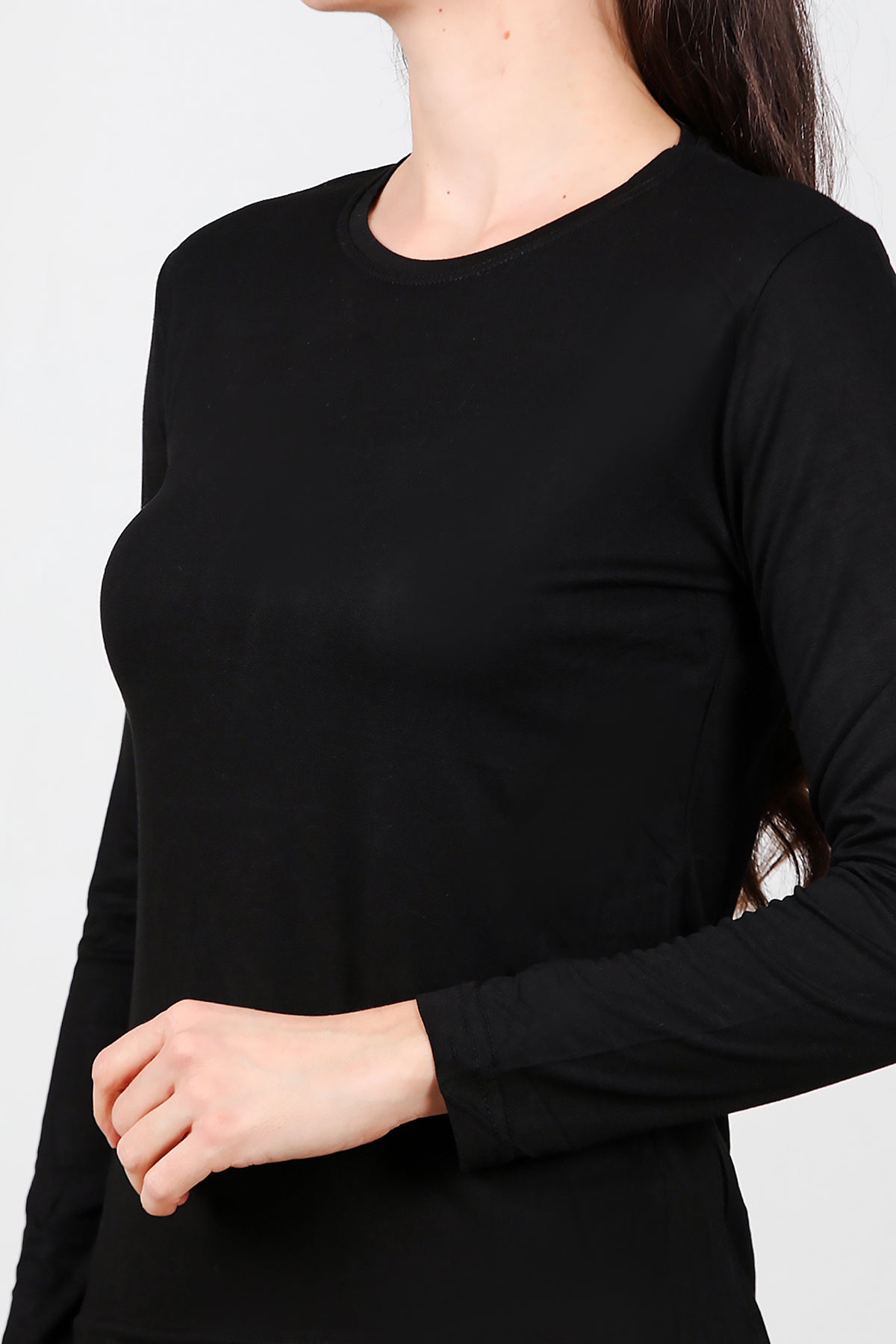 Kadın Bisiklet Yaka Uzun Kol Penye Bluz Siyah