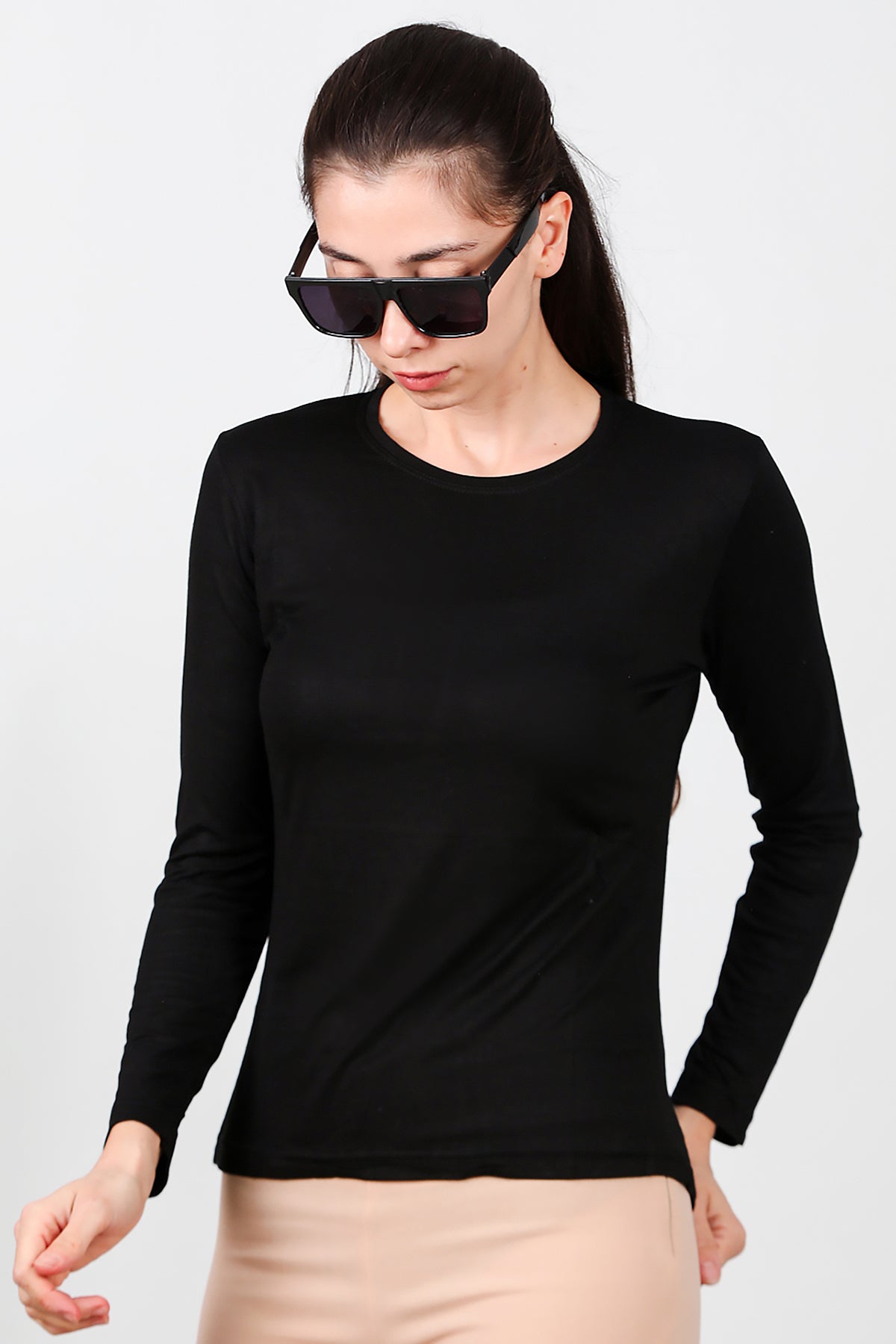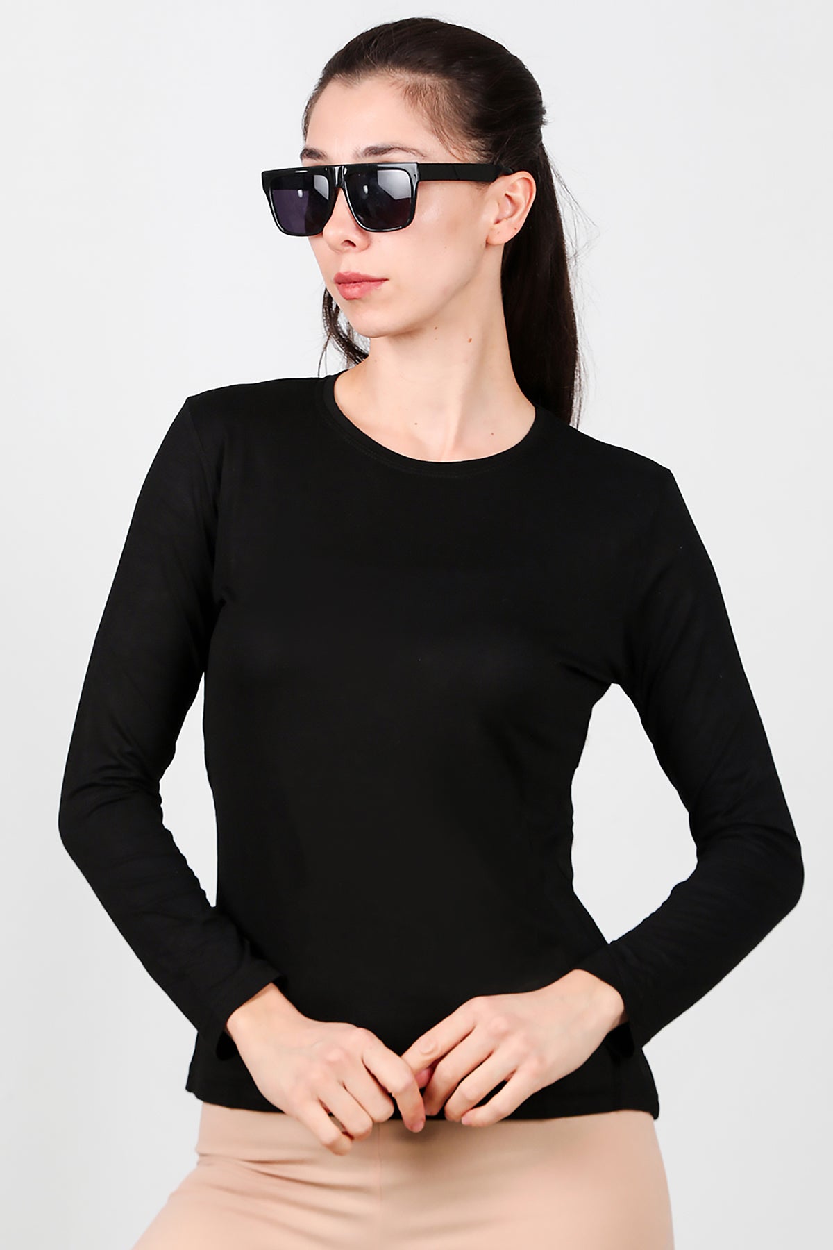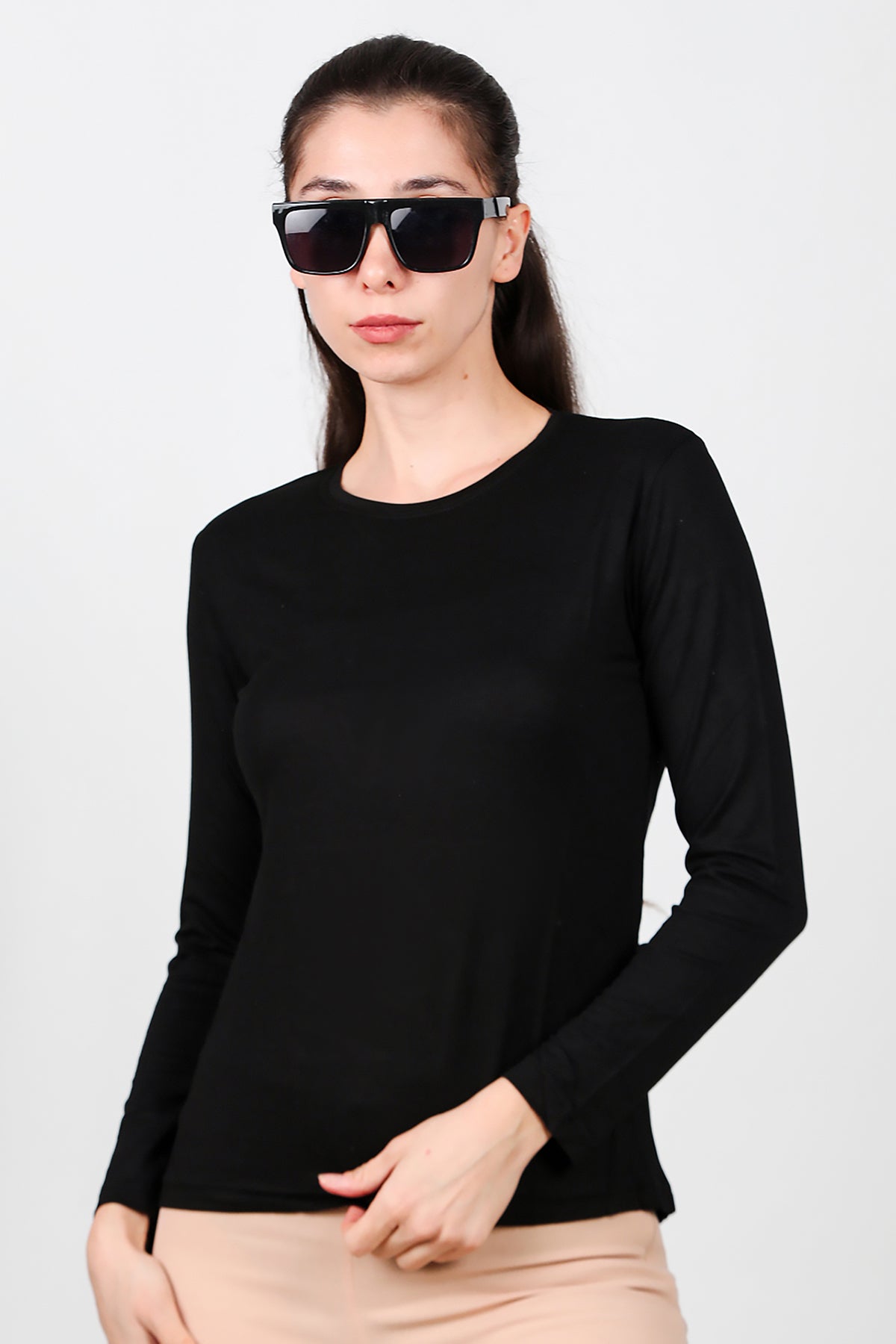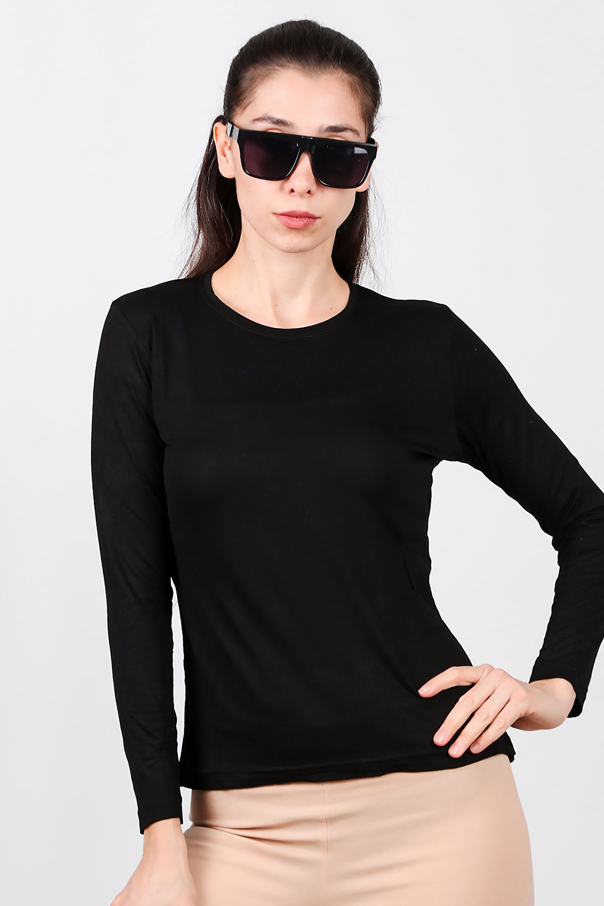 Kadın Bisiklet Yaka Uzun Kol Penye Bluz Siyah