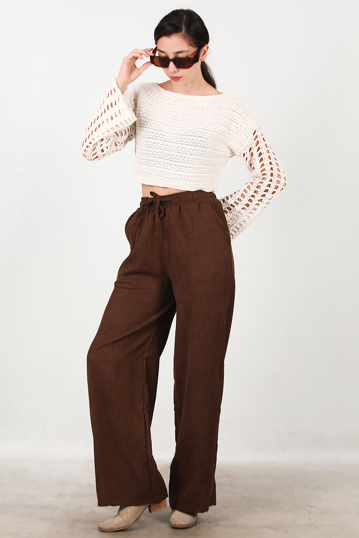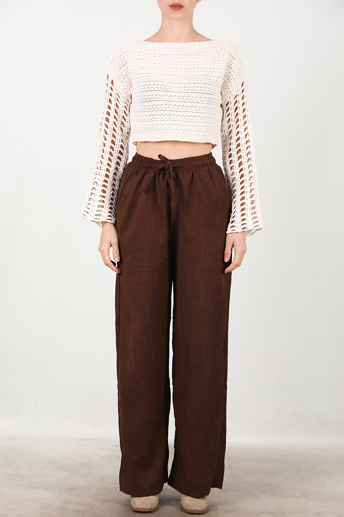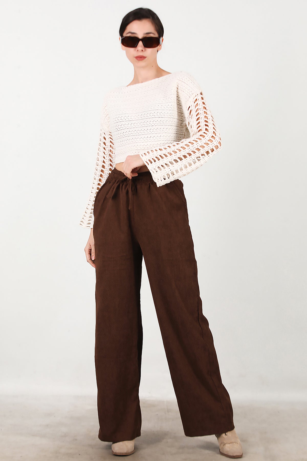Kadın Bol Paça Kadife Pantolon Kahverengi