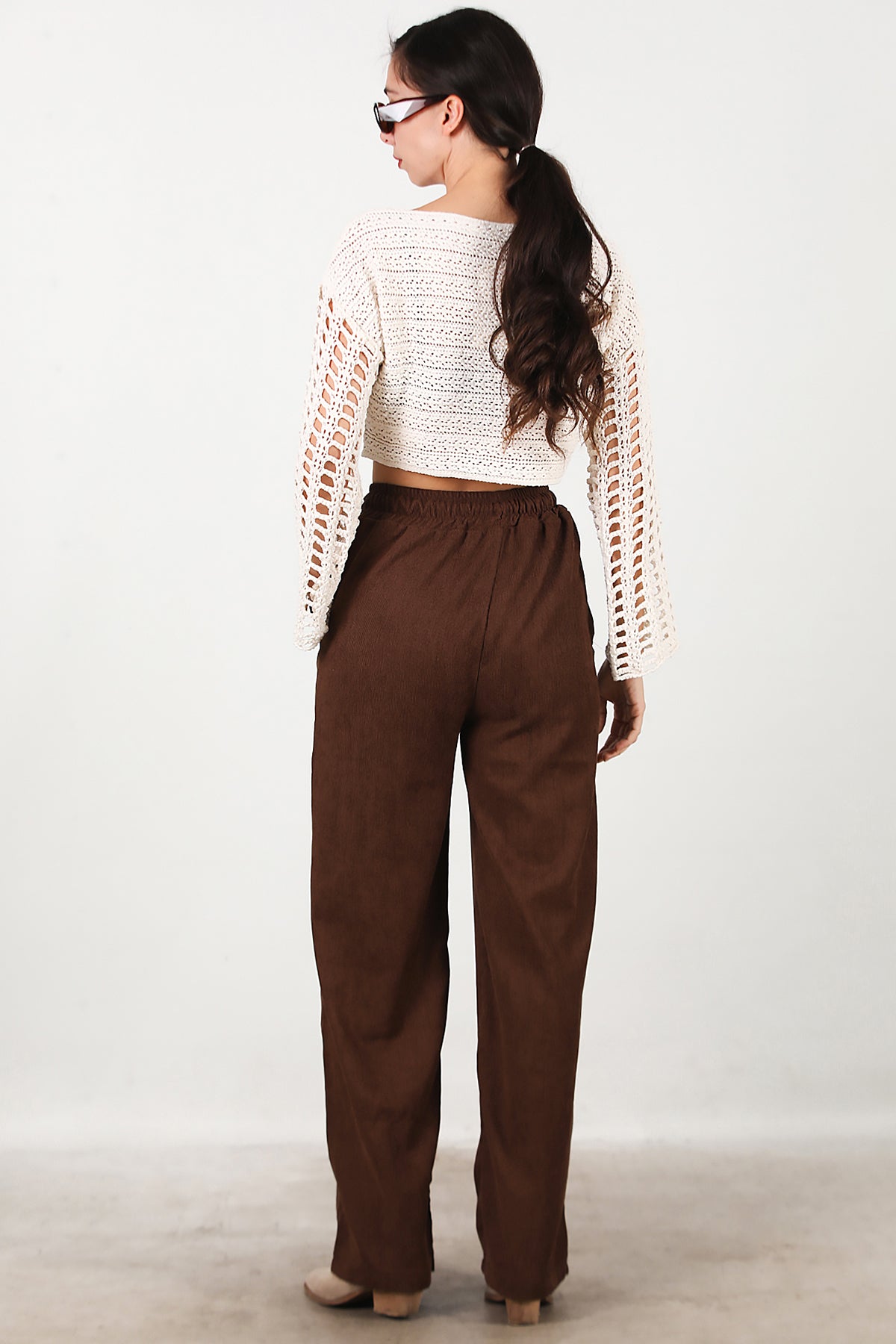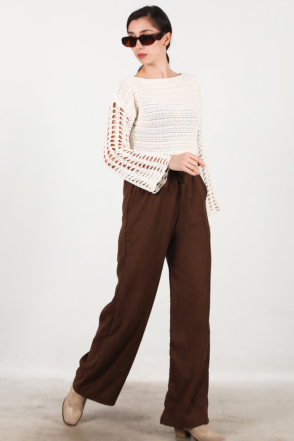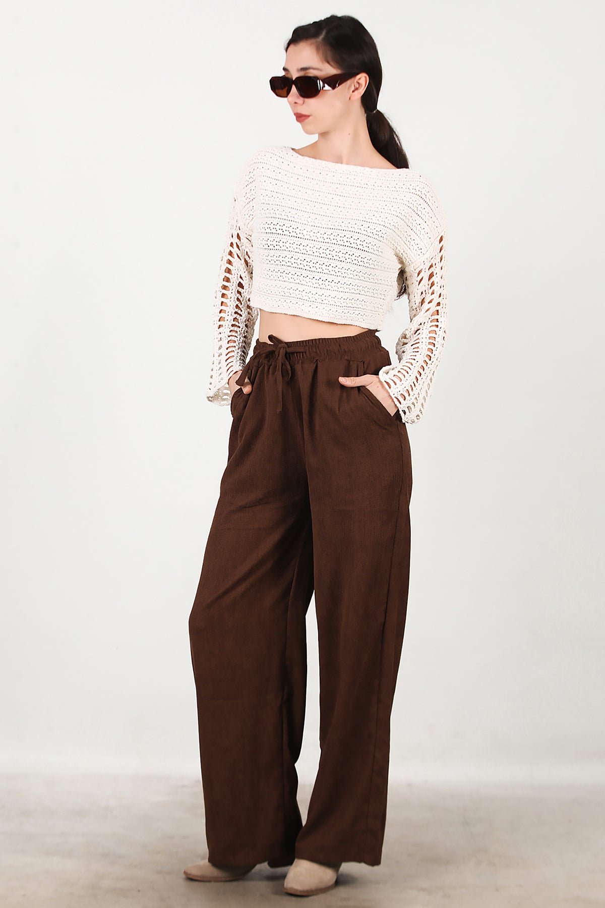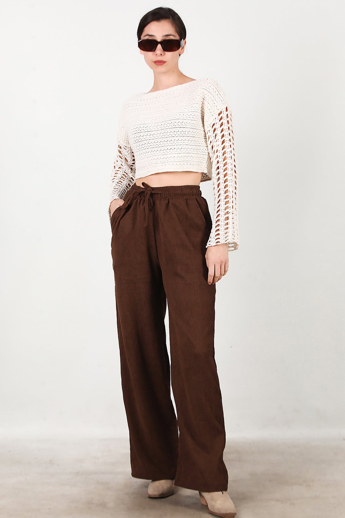 Kadın Bol Paça Kadife Pantolon Kahverengi