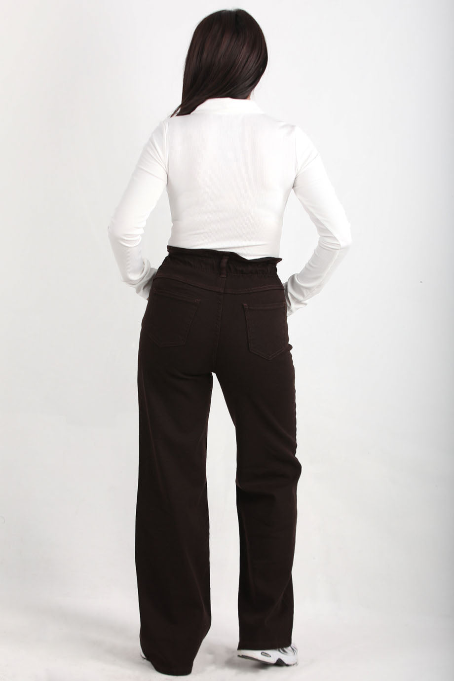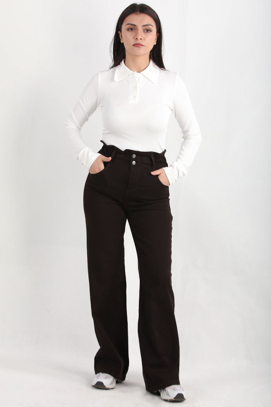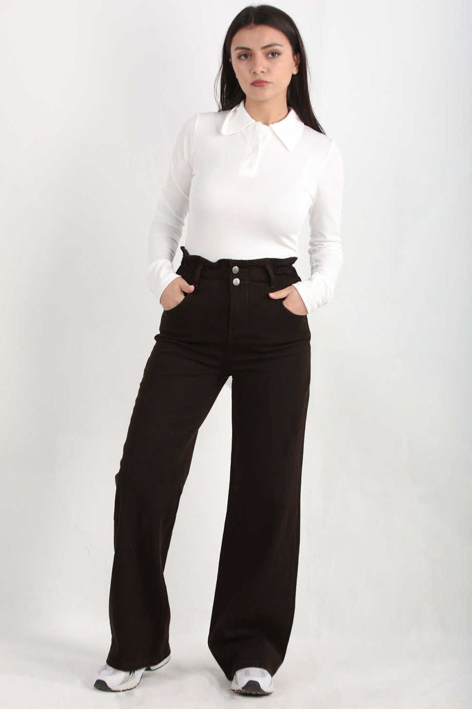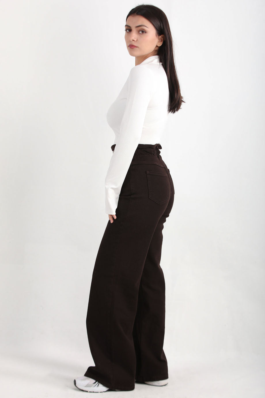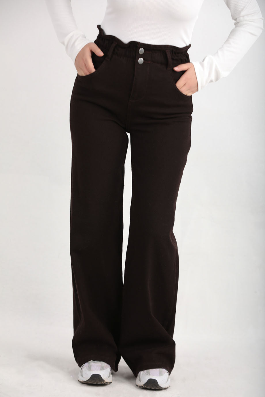 Brownflow Kadın Bol Paça Kot Pantolon Kahverengi