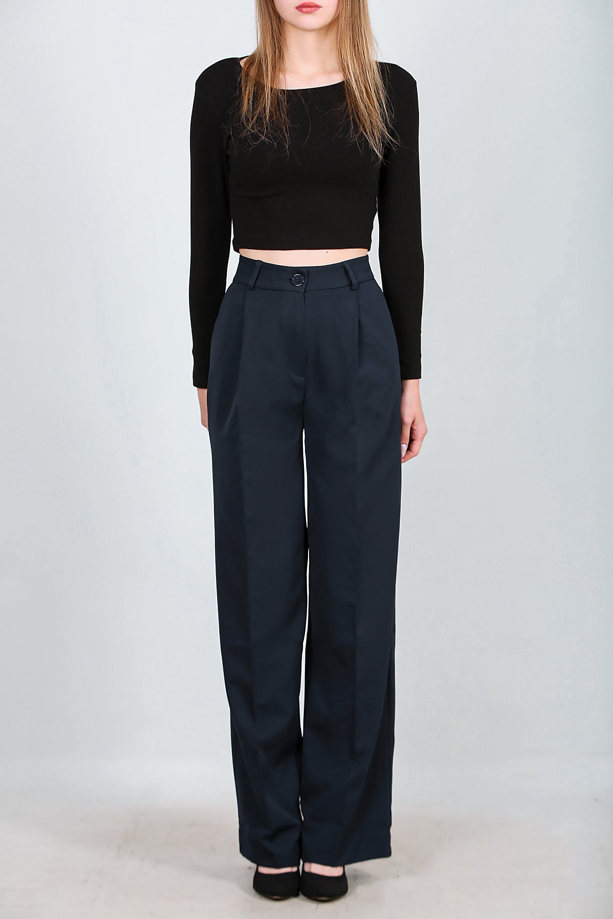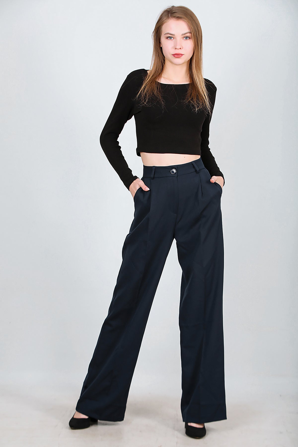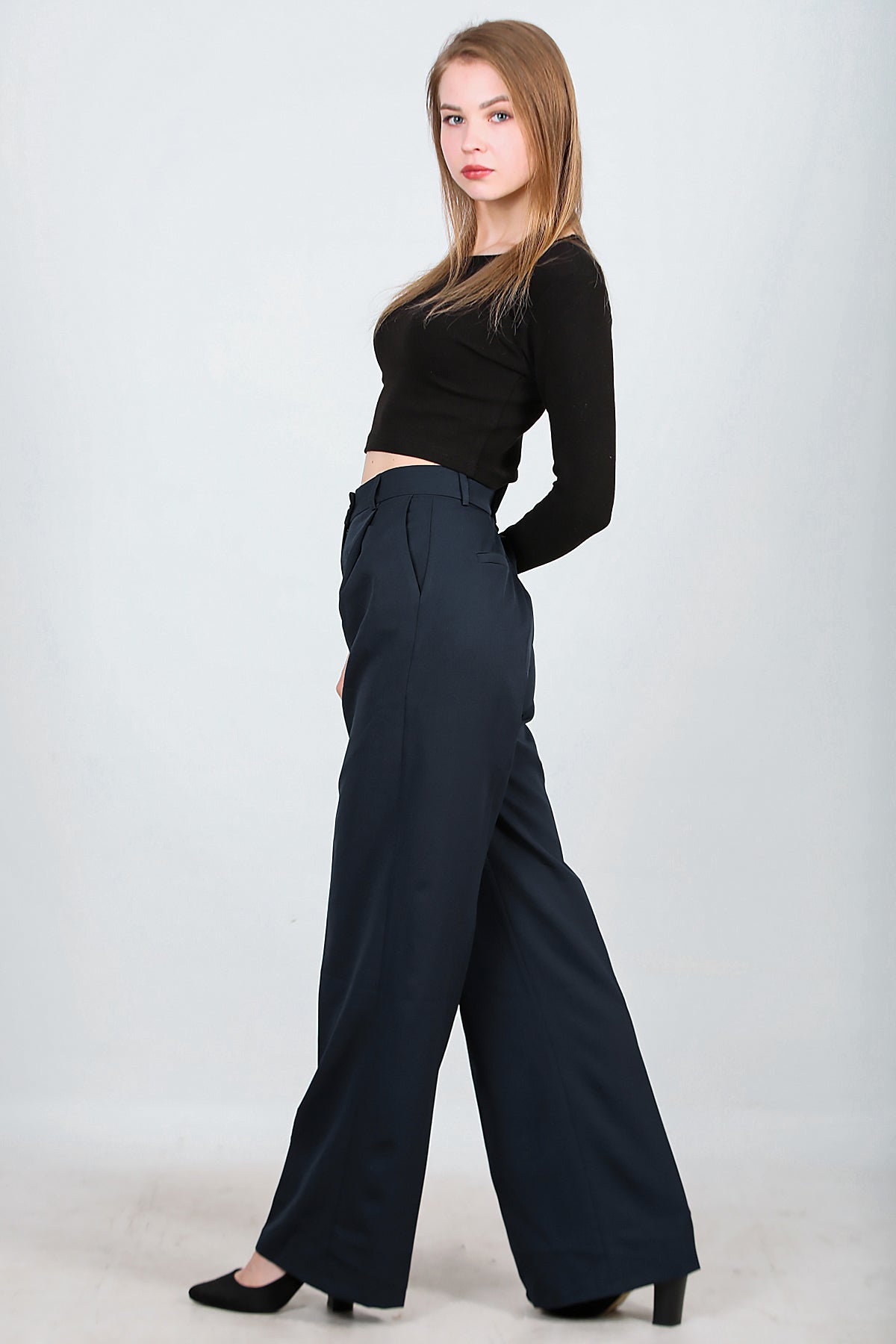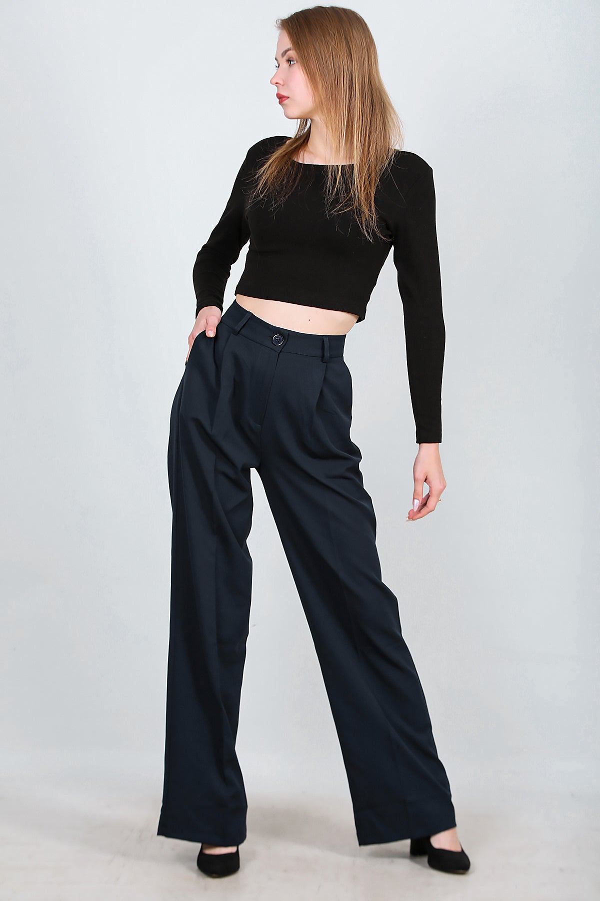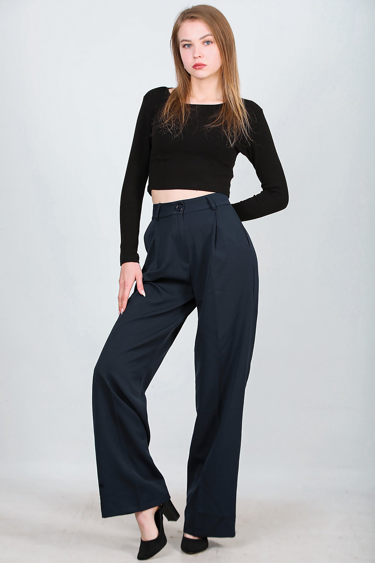 Kadın Bol Paça Kumaş Pantolon Lacivert